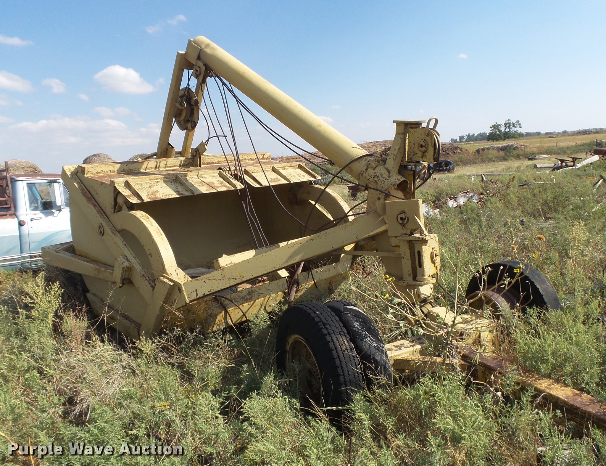 Purple Wave is selling a used Pull Type Scraper in Kansas. This item is a Carry All G scraper with the following: 8' bowl width, Weld-on cutting edge, Cable scraper controls, Pin hitch, 9.00-20 tires, Unknown operating condition, Serial 5591766E