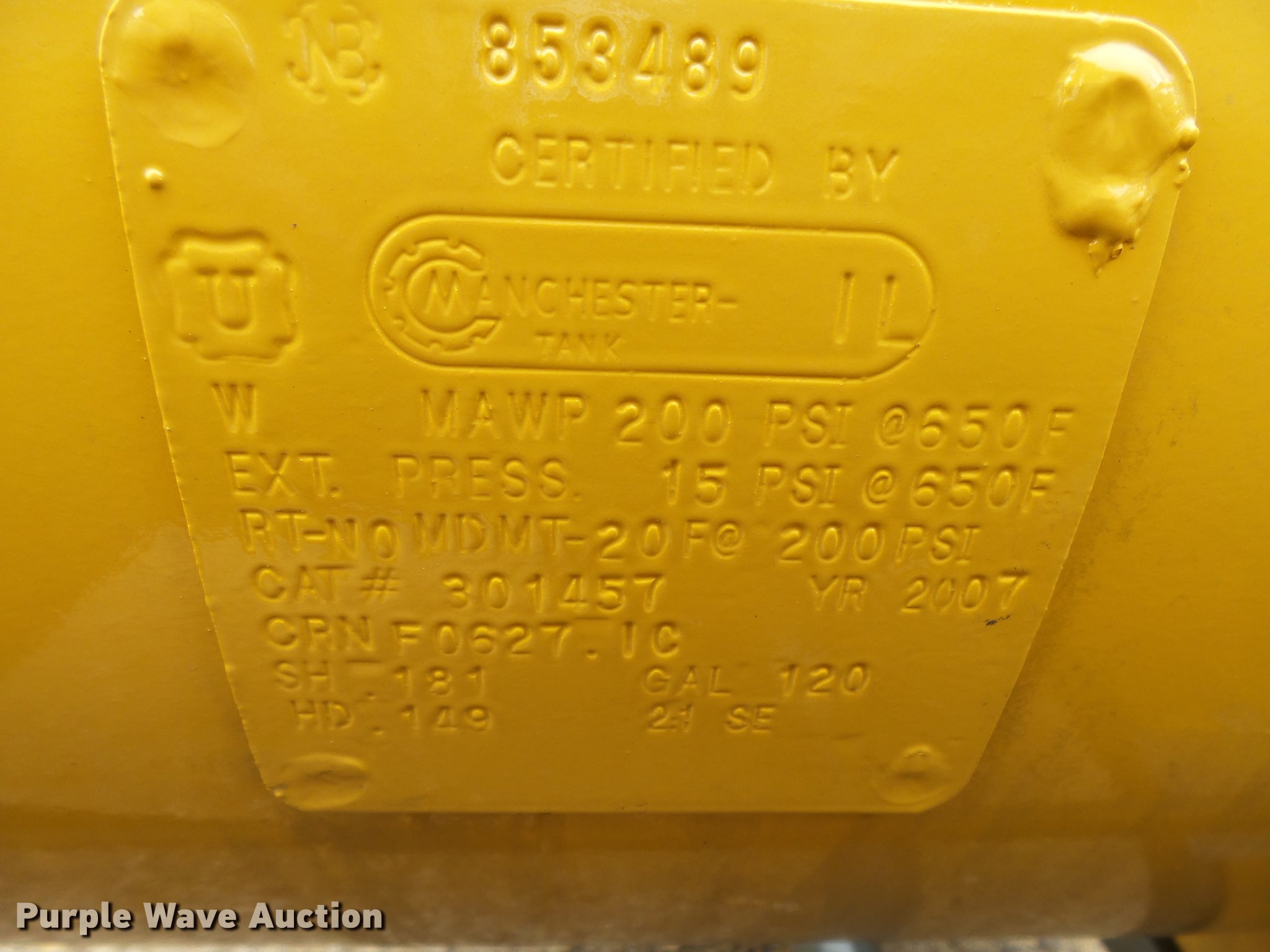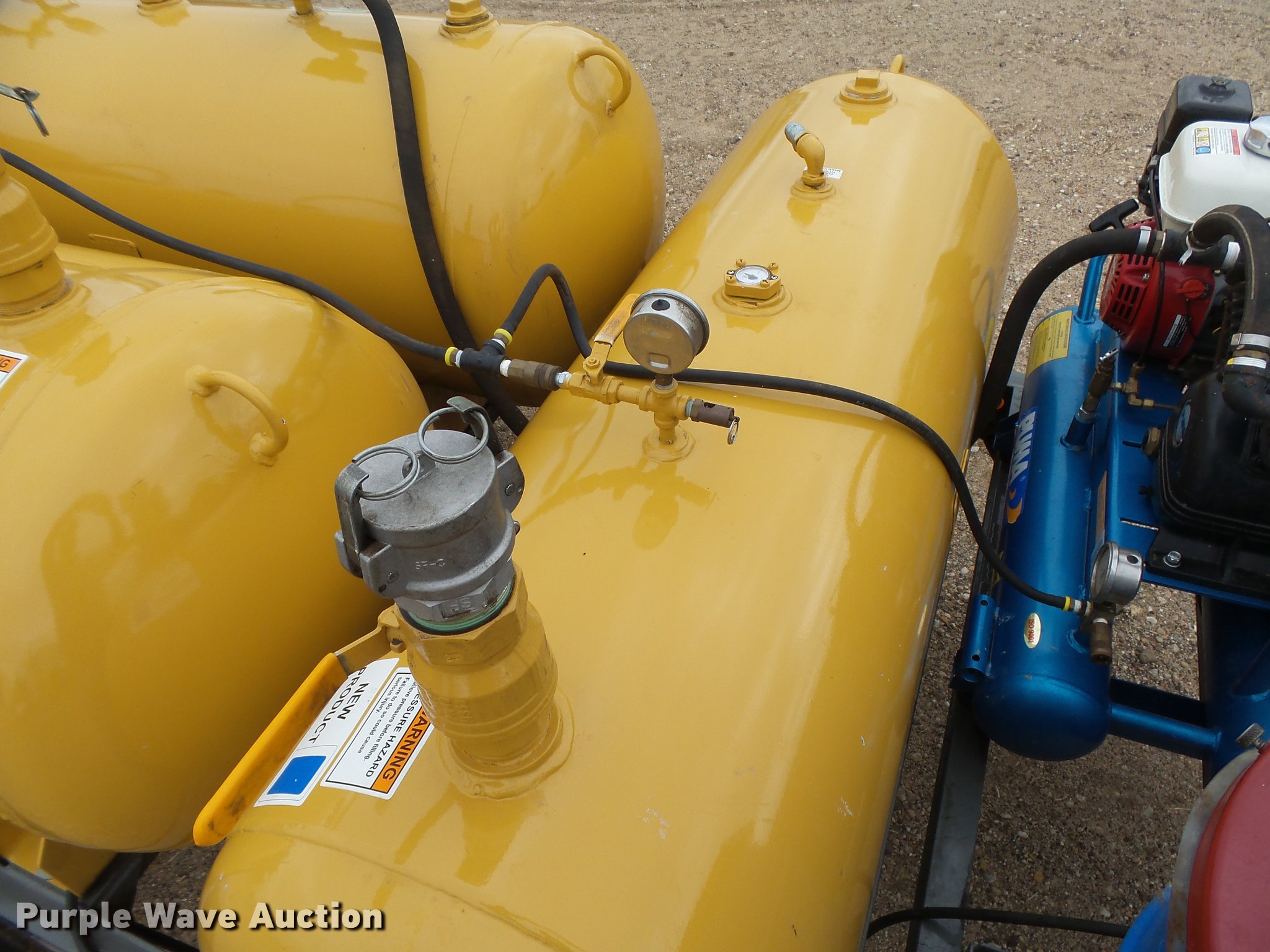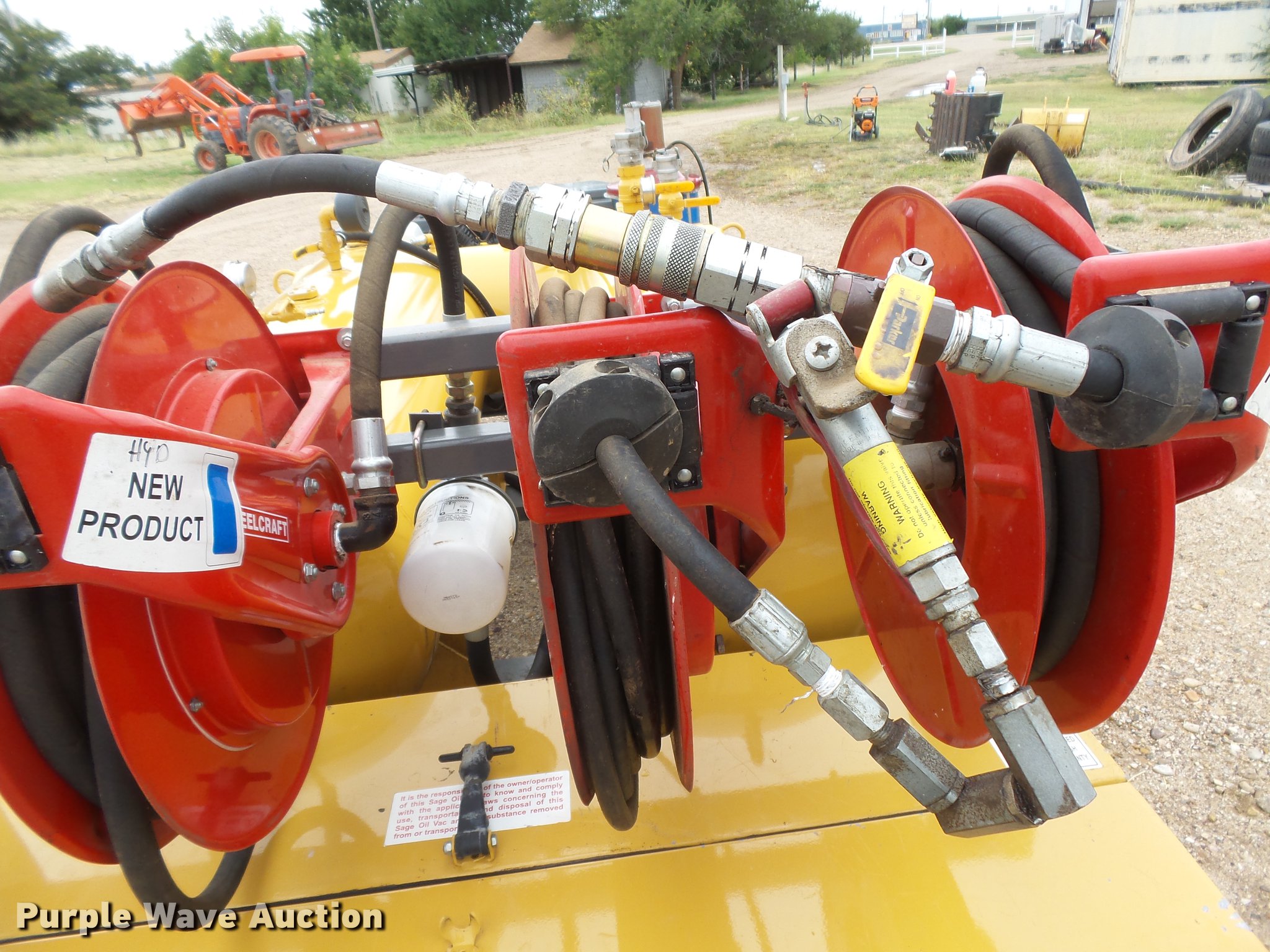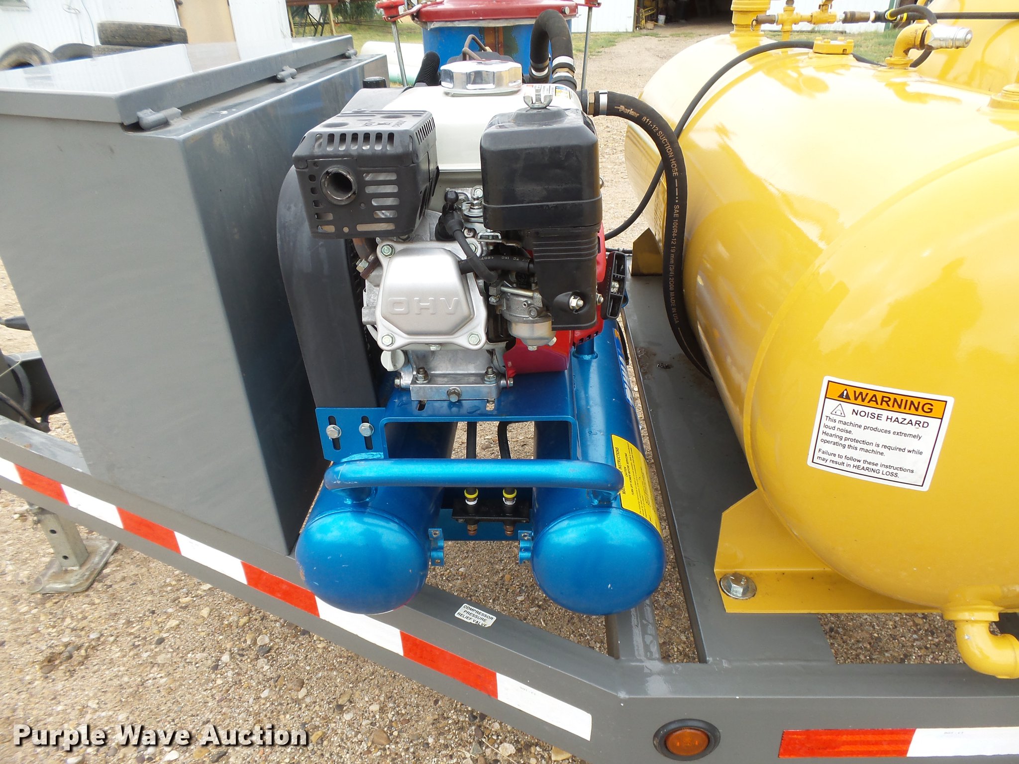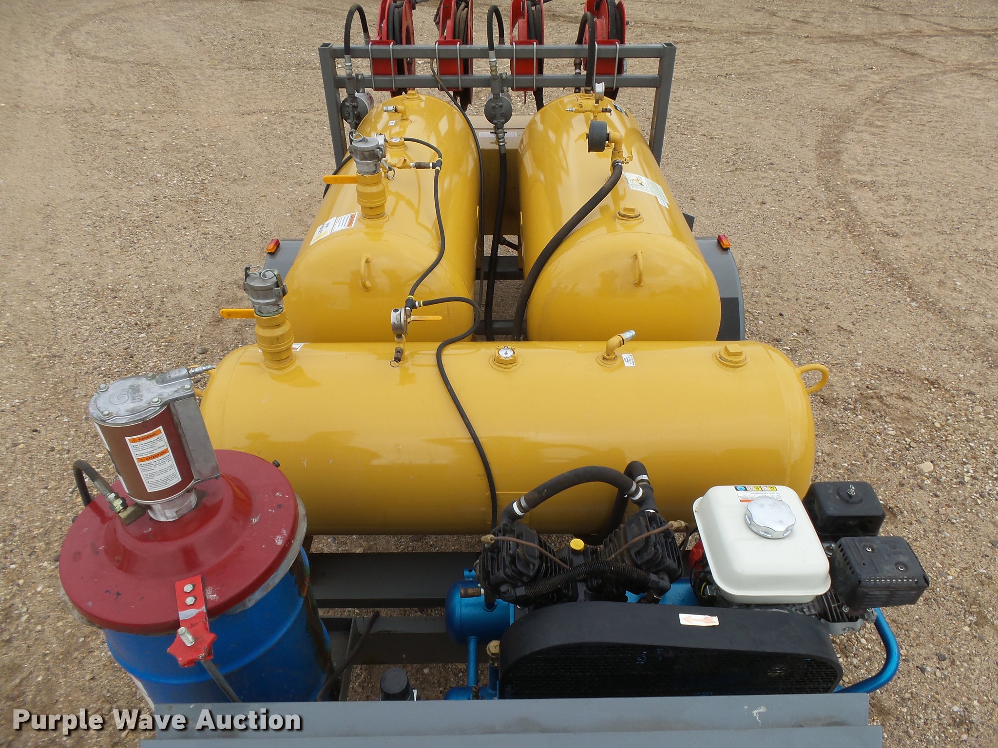 Purple Wave is selling a used Tank Trailer in Oklahoma. This item is a 2008 Sage Oil Vac 10123 tank trailer with the following: 16'L x 5'W, 7'W fender to fender, 120 gallon used oil tank, 120 gallon new oil tank, 80 gallon new oil tank, (4) Reel Craft hose reels, Rear used filter drain storage, 120 lbs barrel of Chevron grease, Alemite air pump dispenser, Puma air compressor, Honda GX160 single cylinder gas engine, Storage box, 2 5/16" ball hitch, Spring suspension, Electric brakes, ST225/75D15 tires, GVWR 2,485 lbs, Unit# T-25