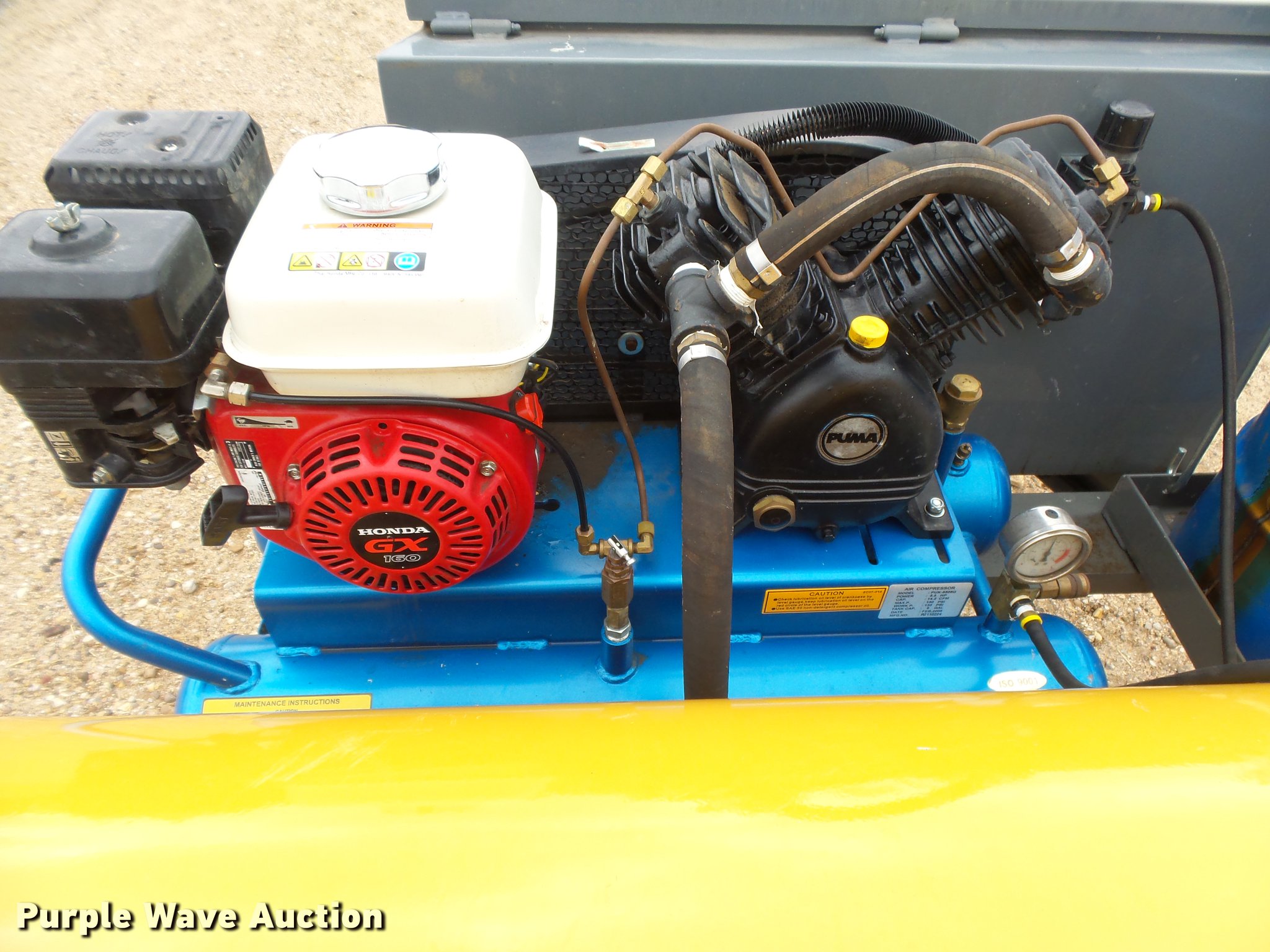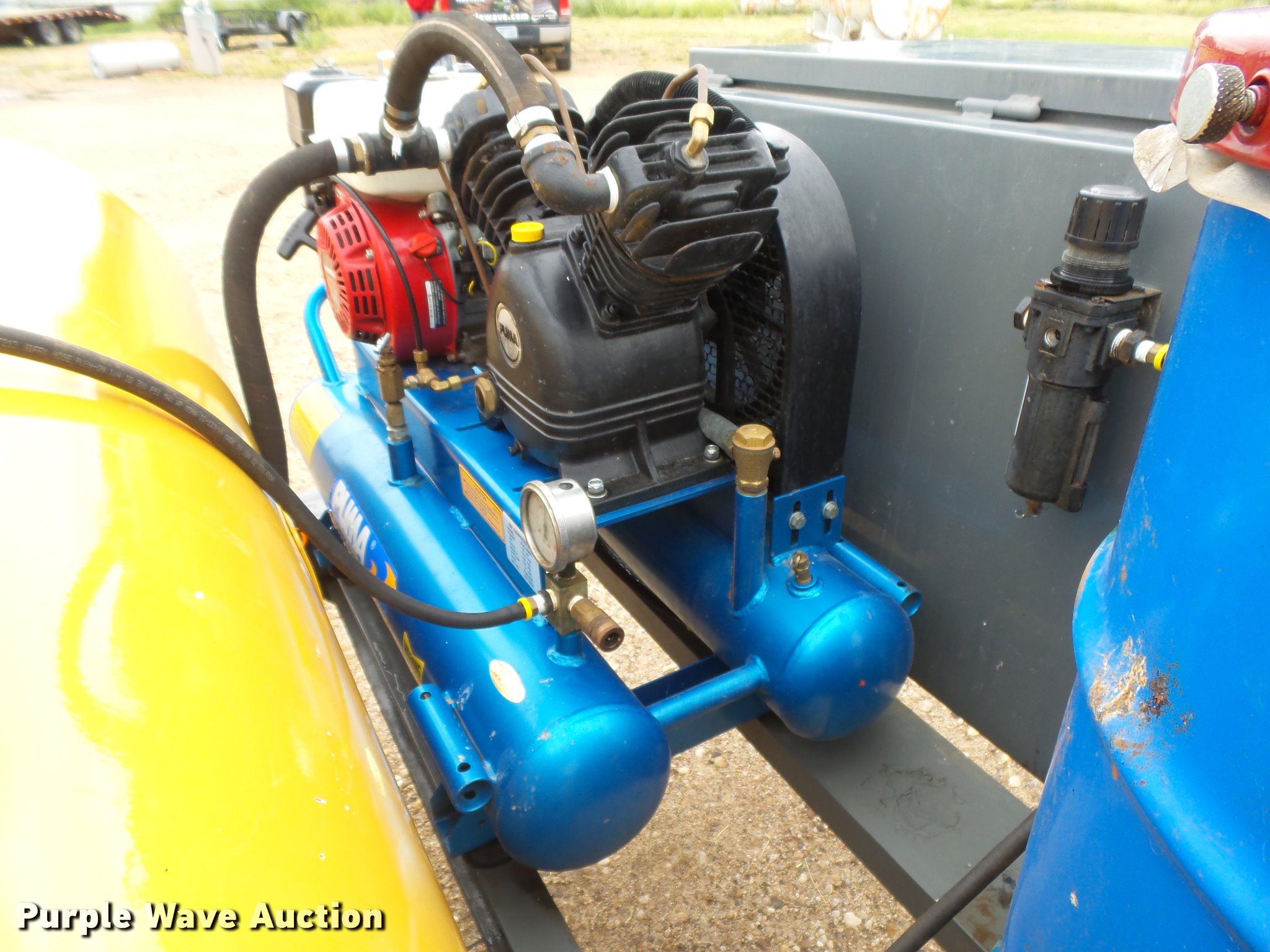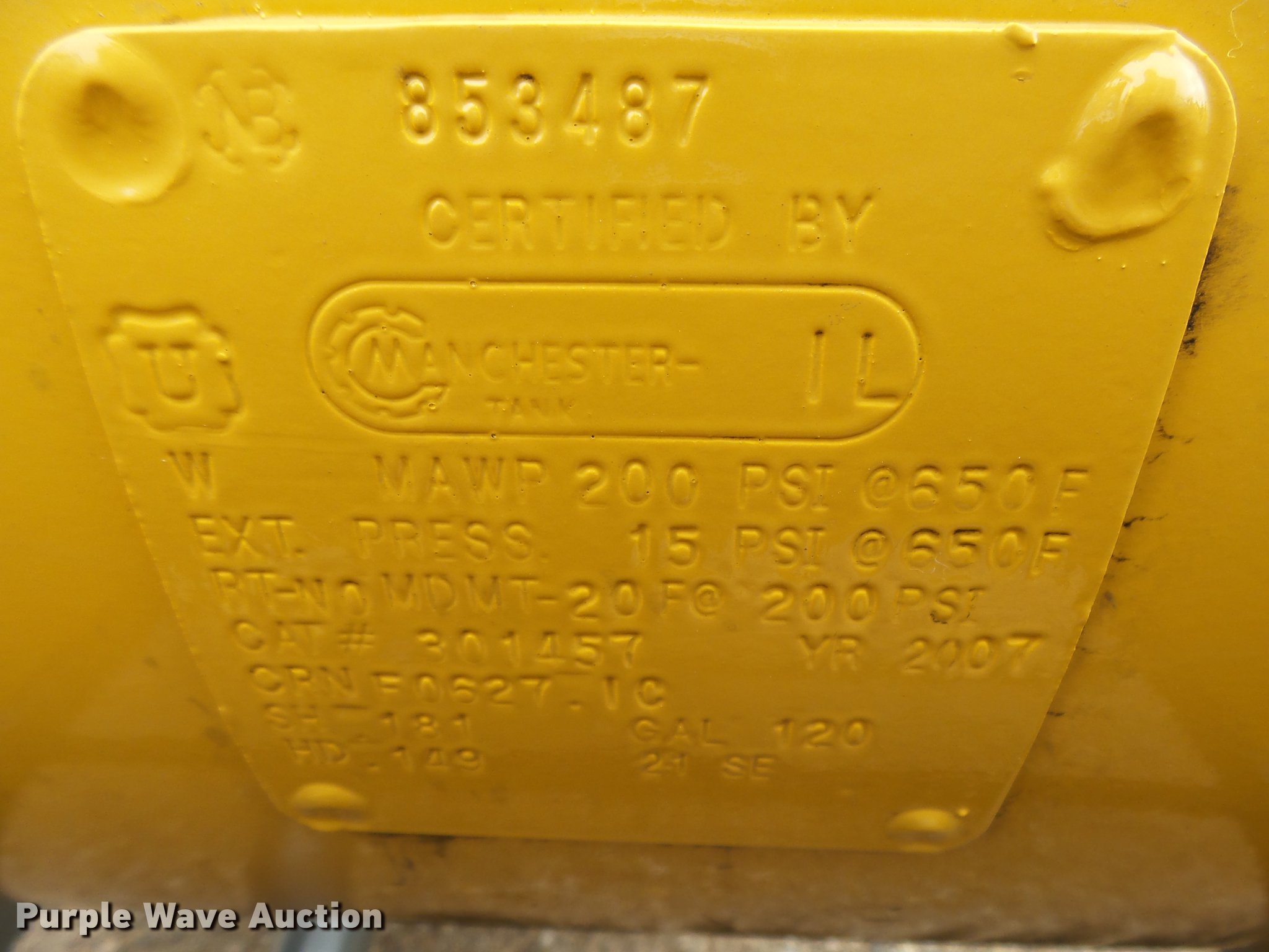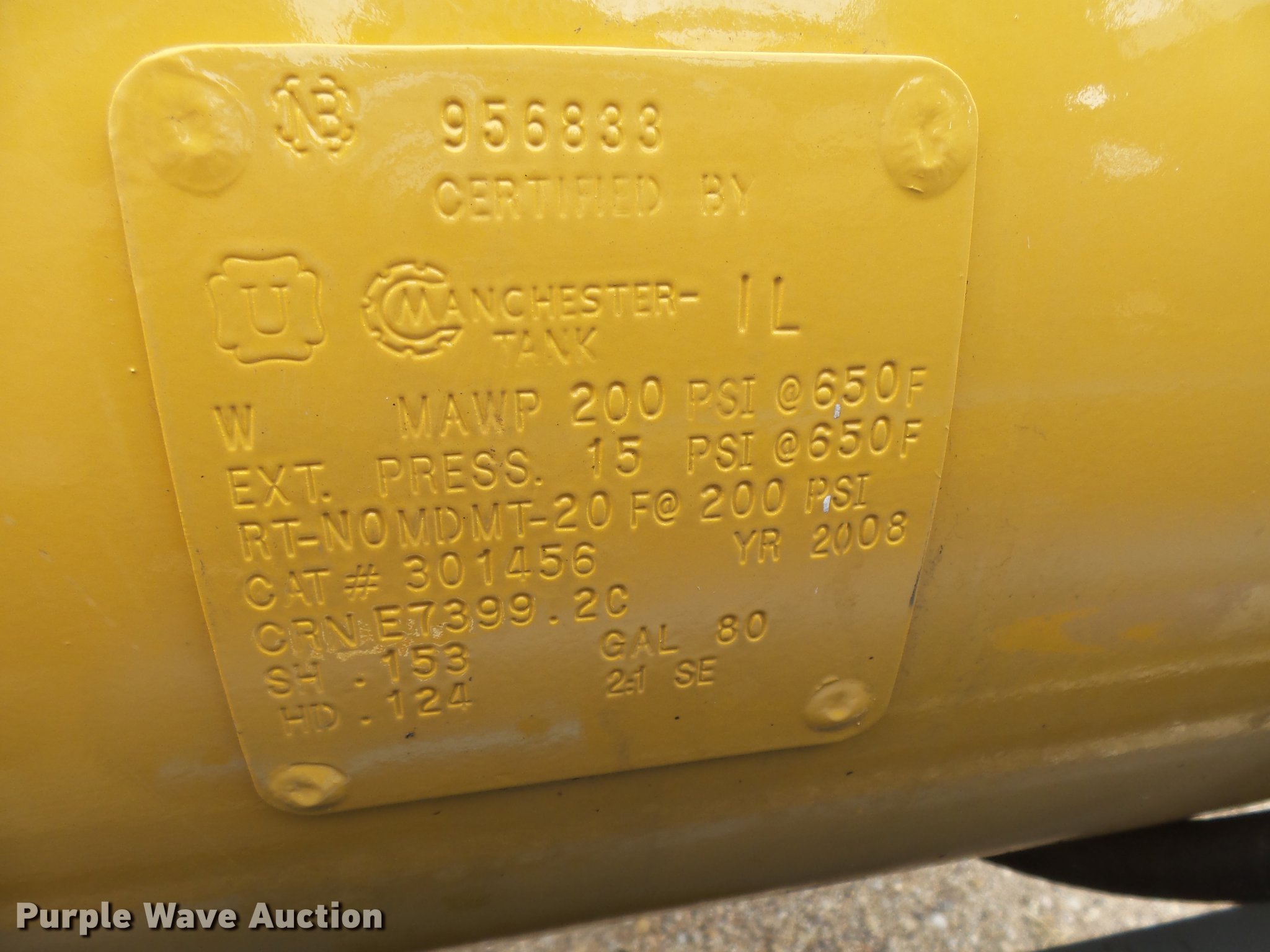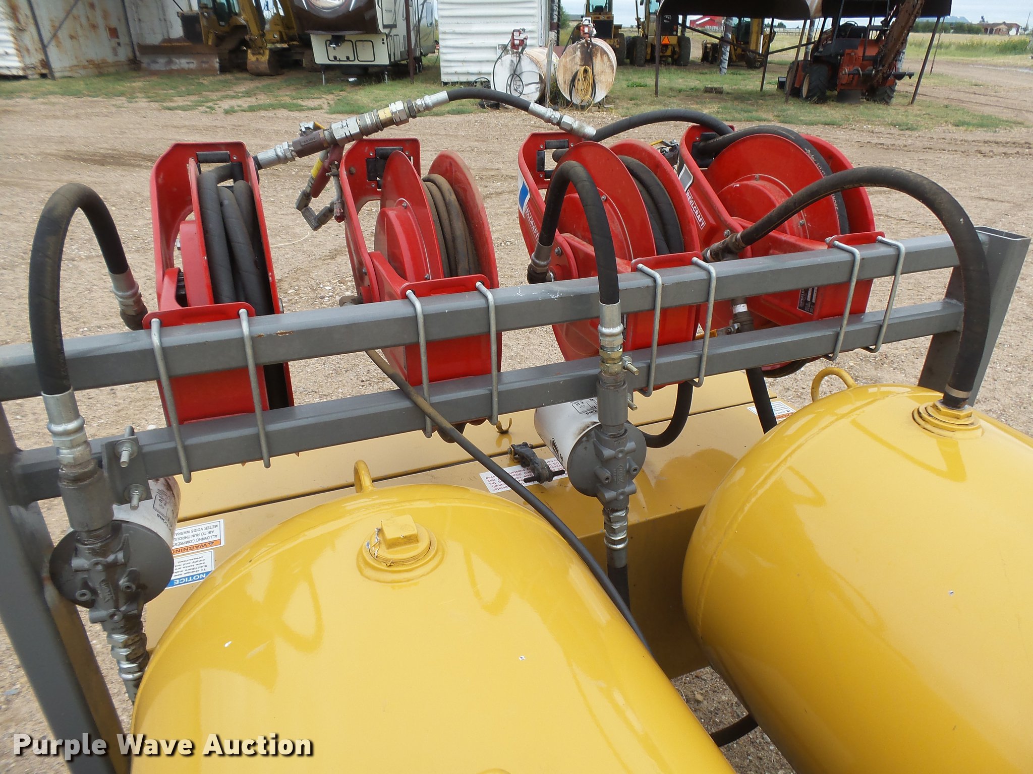 Purple Wave is selling a used Tank Trailer in Oklahoma. This item is a 2008 Sage Oil Vac 10123 tank trailer with the following: 16'L x 5'W, 7'W fender to fender, 120 gallon used oil tank, 120 gallon new oil tank, 80 gallon new oil tank, (4) Reel Craft hose reels, Rear used filter drain storage, 120 lbs barrel of Chevron grease, Alemite air pump dispenser, Puma air compressor, Honda GX160 single cylinder gas engine, Storage box, 2 5/16" ball hitch, Spring suspension, Electric brakes, ST225/75D15 tires, GVWR 2,485 lbs, Unit# T-25