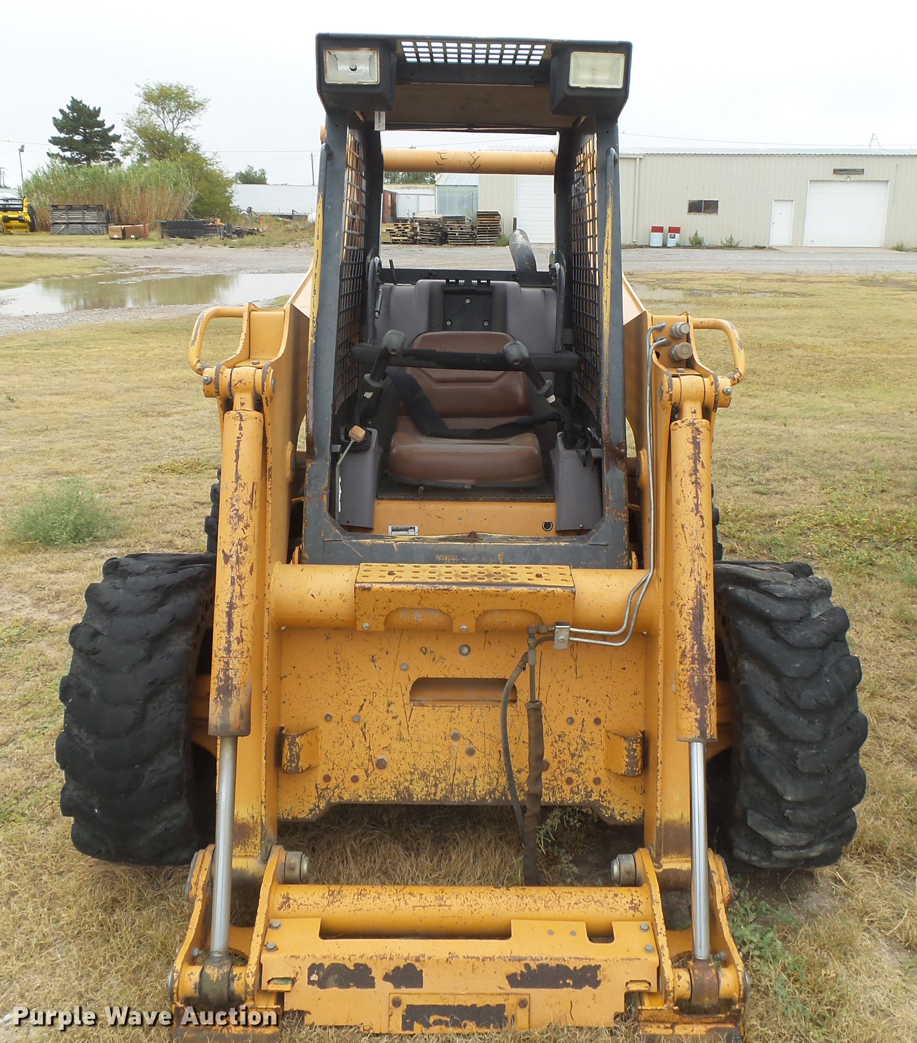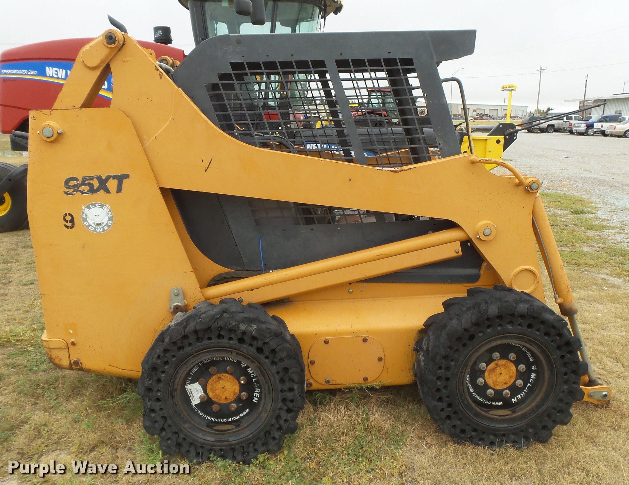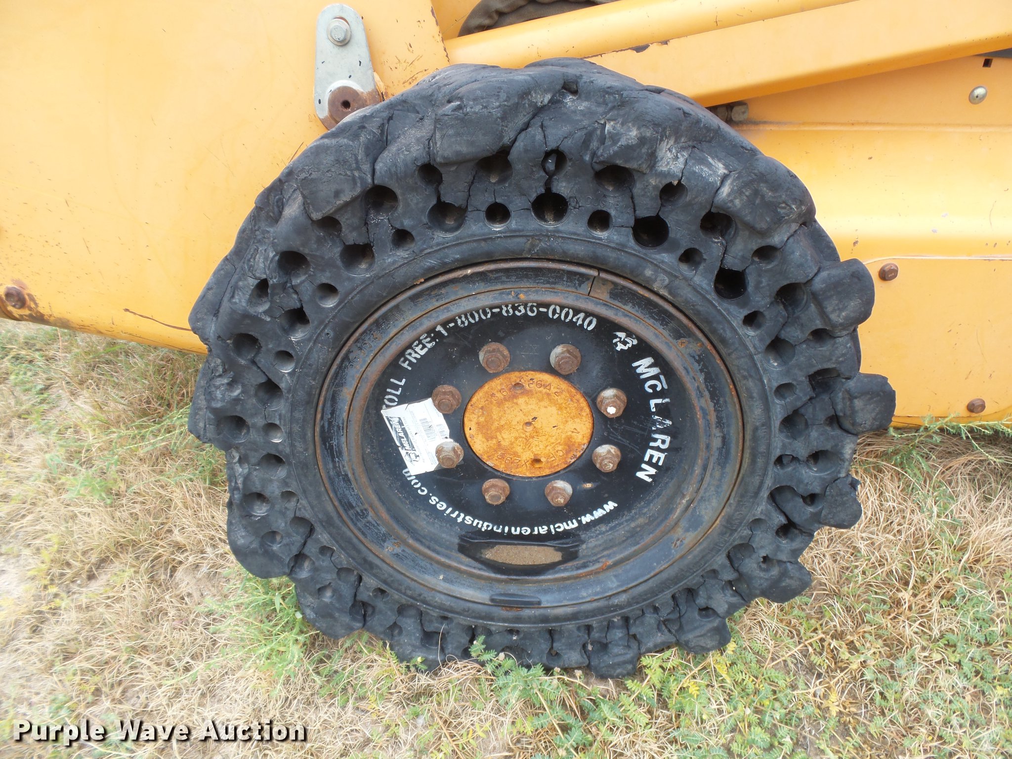 Purple Wave is selling a used Skid Steer Loader in Kansas. This item is a 2003 Case 95XT skid steer with the following: 3,557 hours on meter, four cylinder turbo diesel engine, Hydrostatic transmission, Open station/canopy, Joystick controls, Spring suspension seat, Front work lights, Backup alarm, Hydraulic quick coupler, Auxiliary hydraulics, 33 x 12-16 solid tires, Non-operational unit, Possible timing issue, Front left tire spins on wheel, Wheel welded, Serial JAF0363427