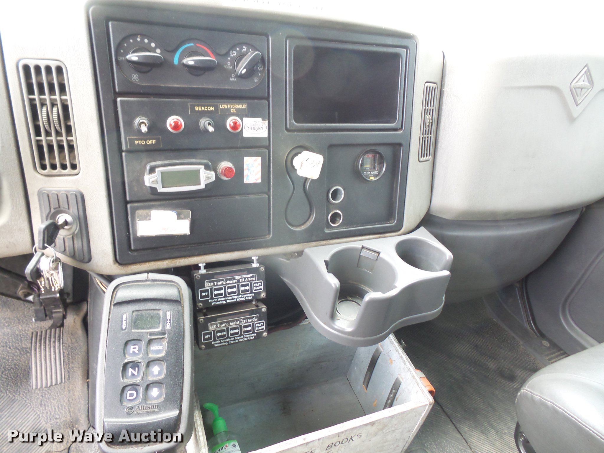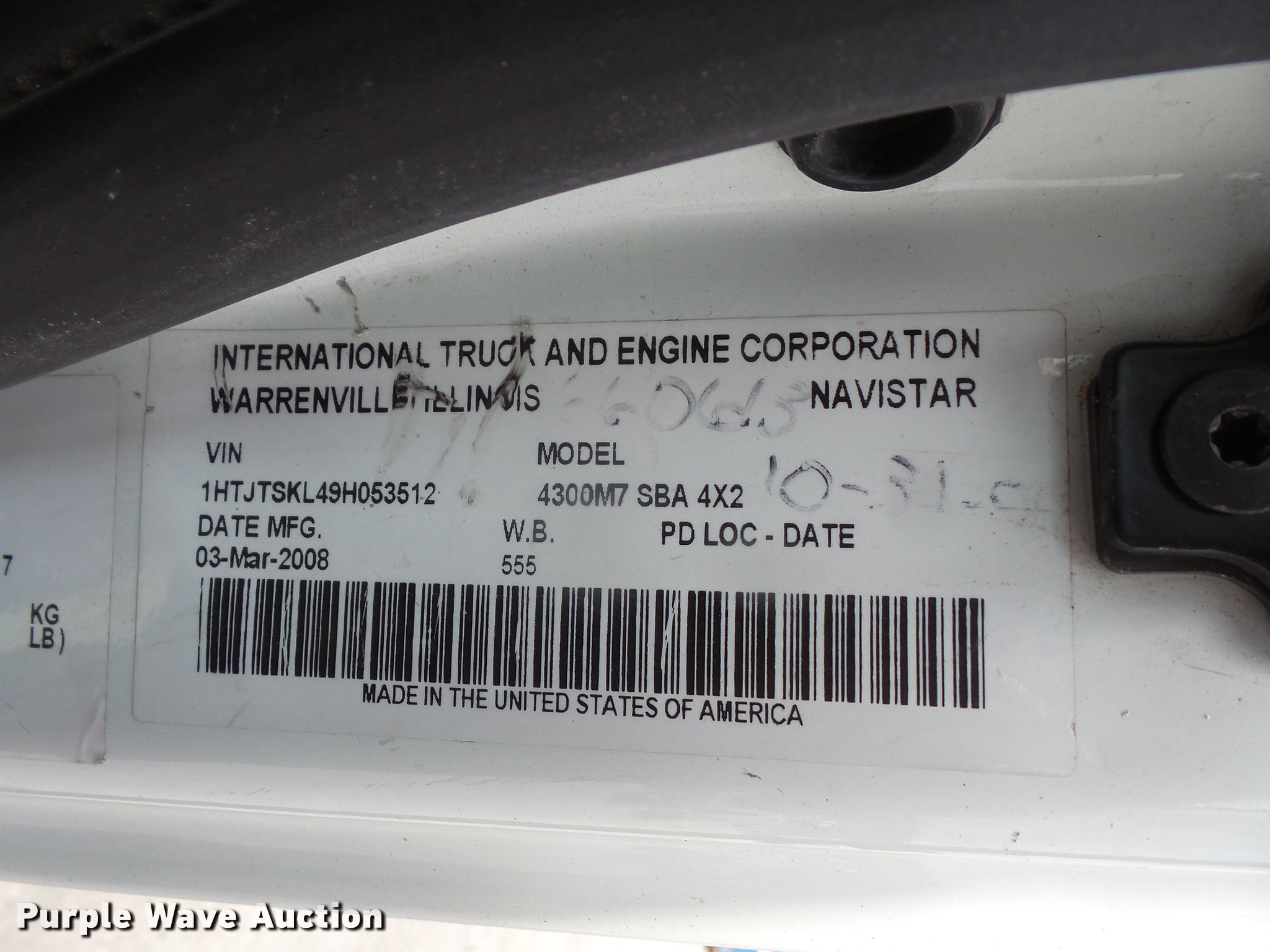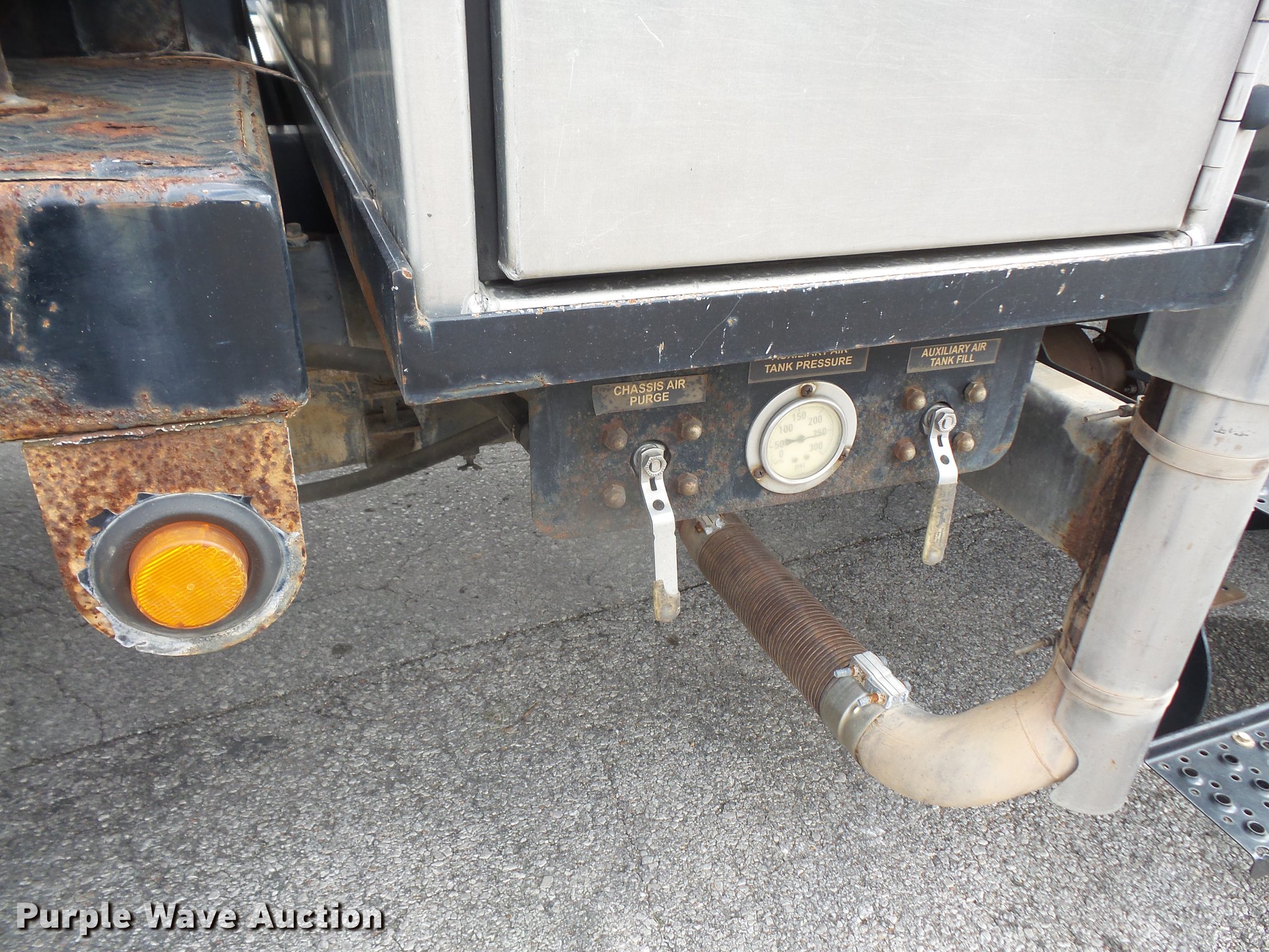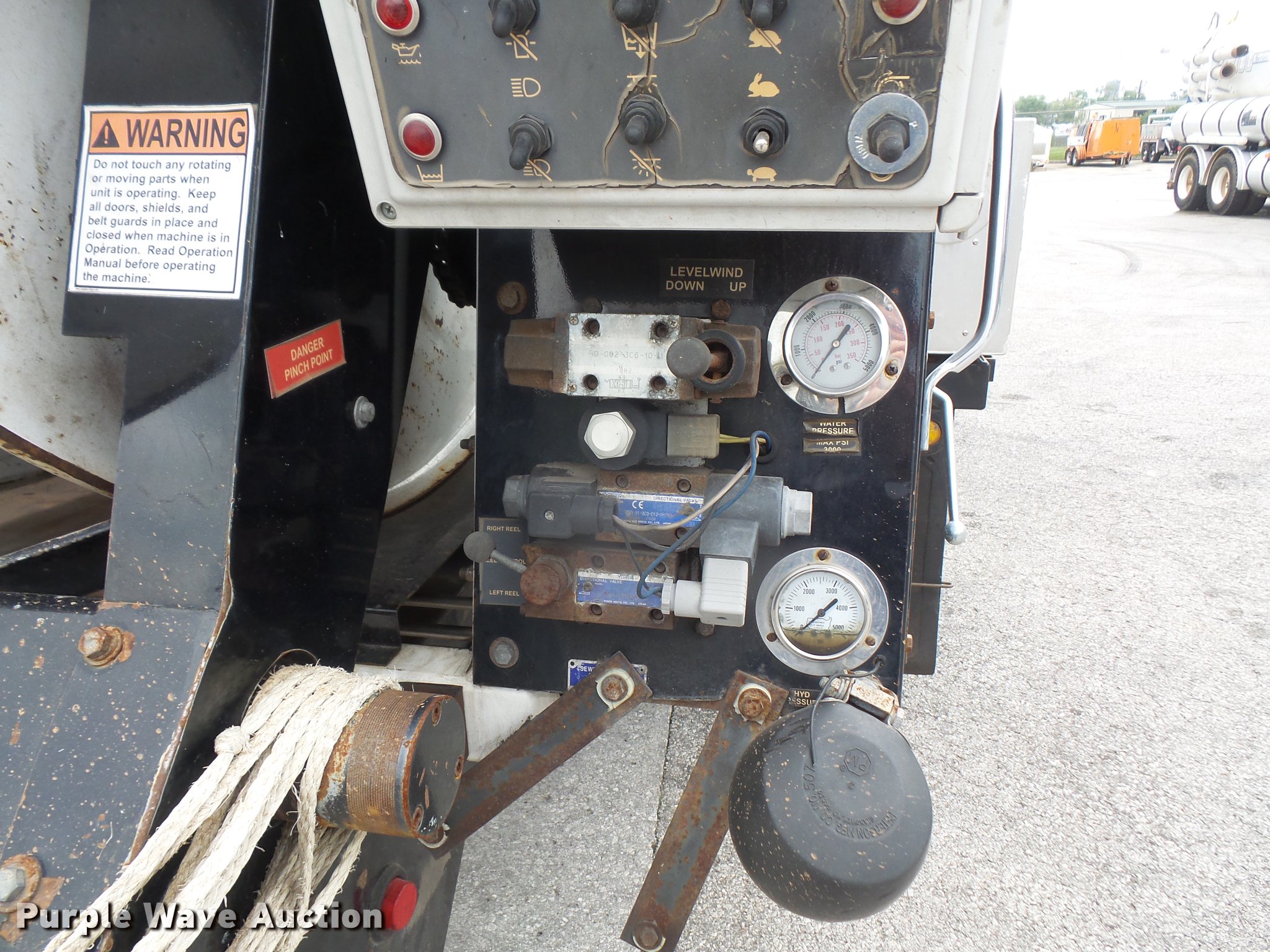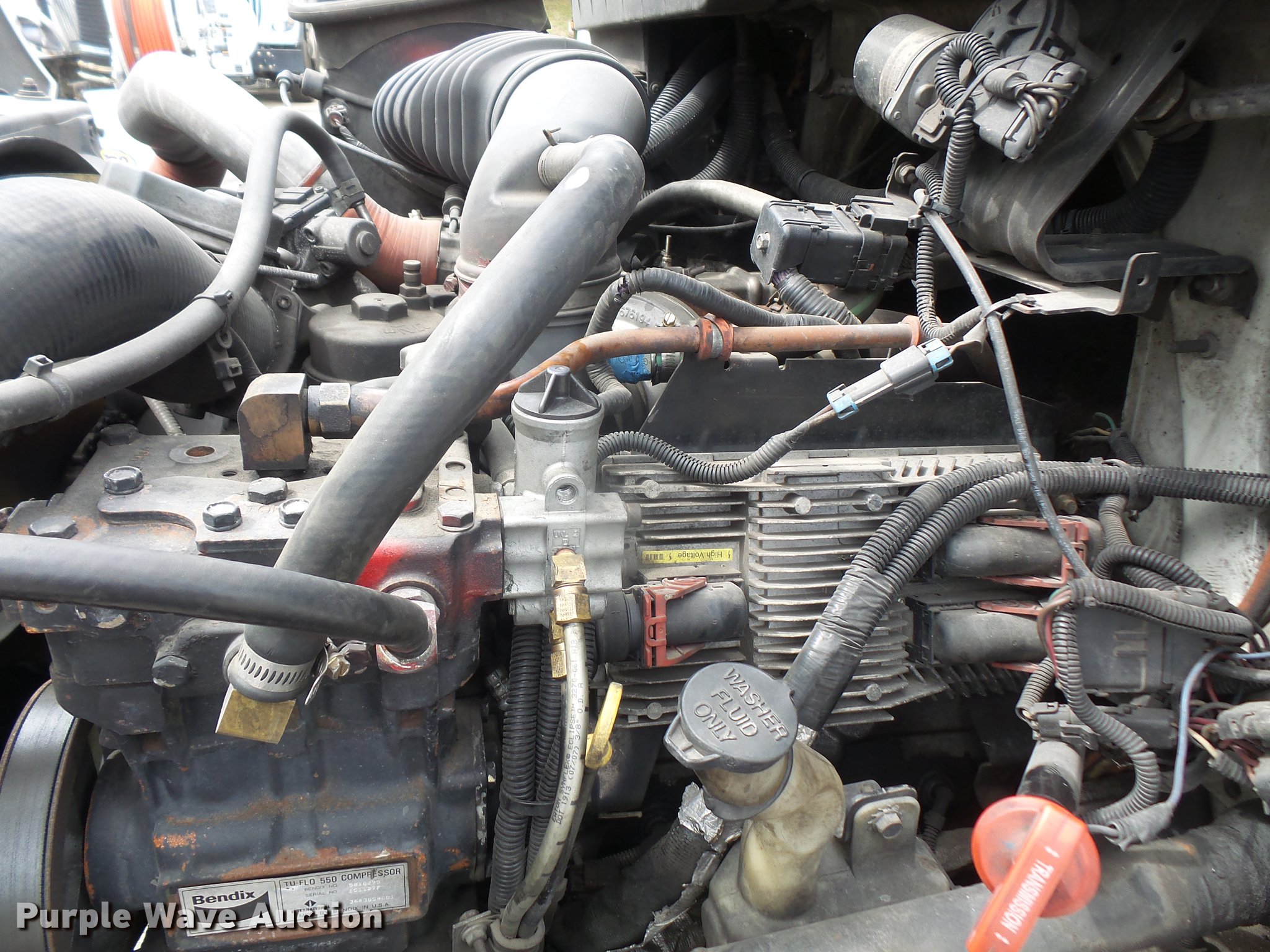 Purple Wave is selling a used Vacuum Truck in Kansas. This item is a 2009 International DuraStar 4300 jetter truck with the following: 129,432 miles on odometer, 13,749 hours on meter, International MaxxForce 7 6.4L V8 turbo diesel engine, Allison automatic transmission, Single axle, AC and heat, air suspension seat, PTO, Beacon light, 10'7"L bed, Model 747-FR2000TV truck jet, (2) hose reels, Smart counter, Hydraulic hose reel, 700 gallon water capacity, (2) poly tanks, 350 gallon capacity,, Toolbox, Single fuel tank, Single exhaust stack, Spring suspension, Air brakes, 255/70R22.5 tires, GVWR 25,500 lbs, Engine warning indicator on