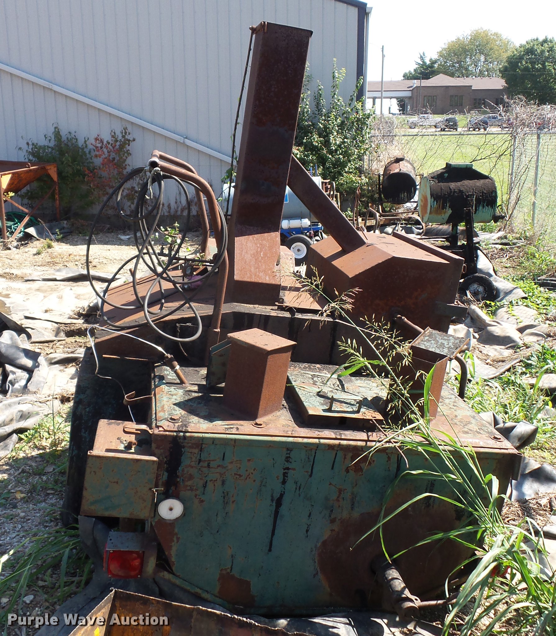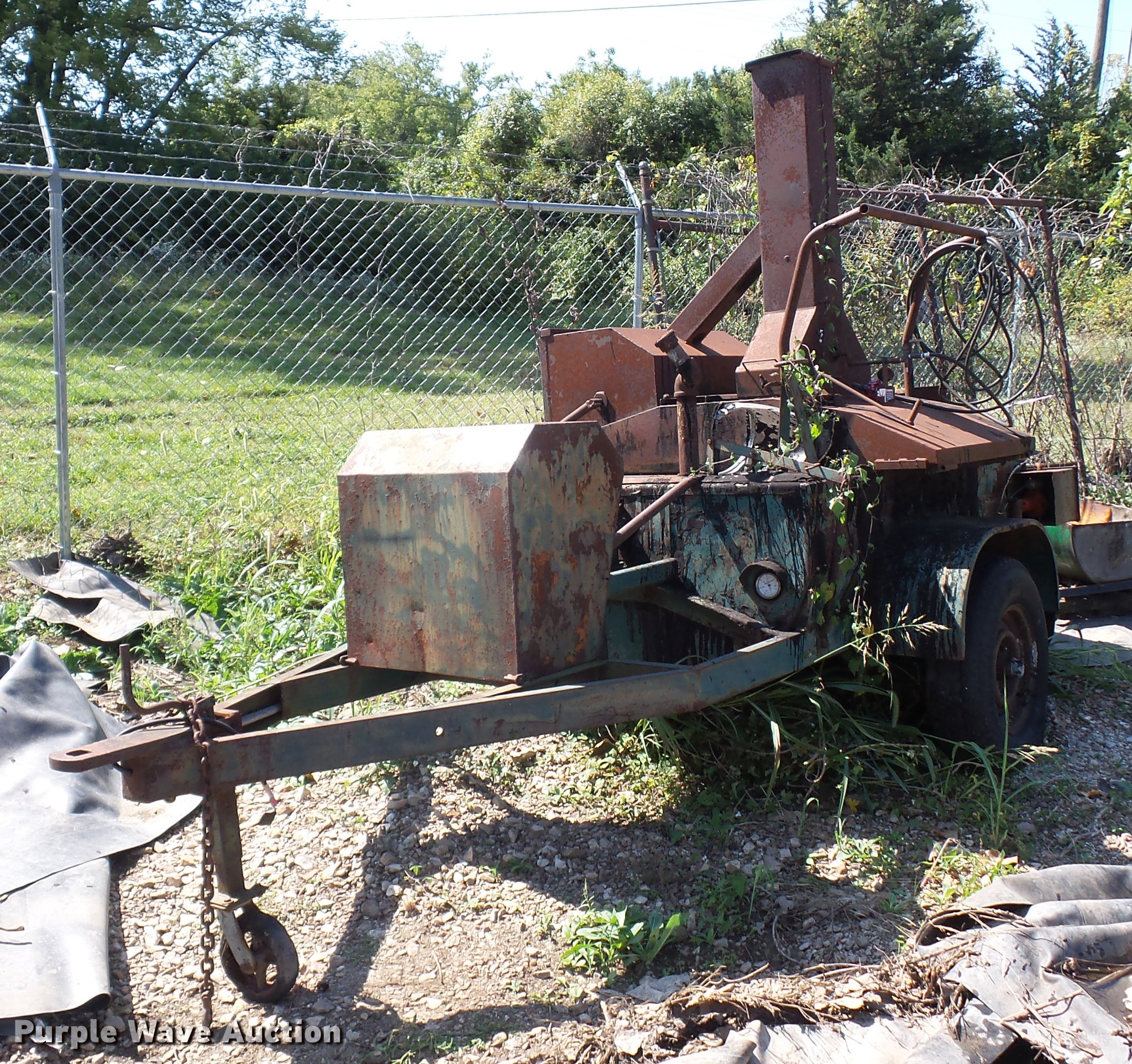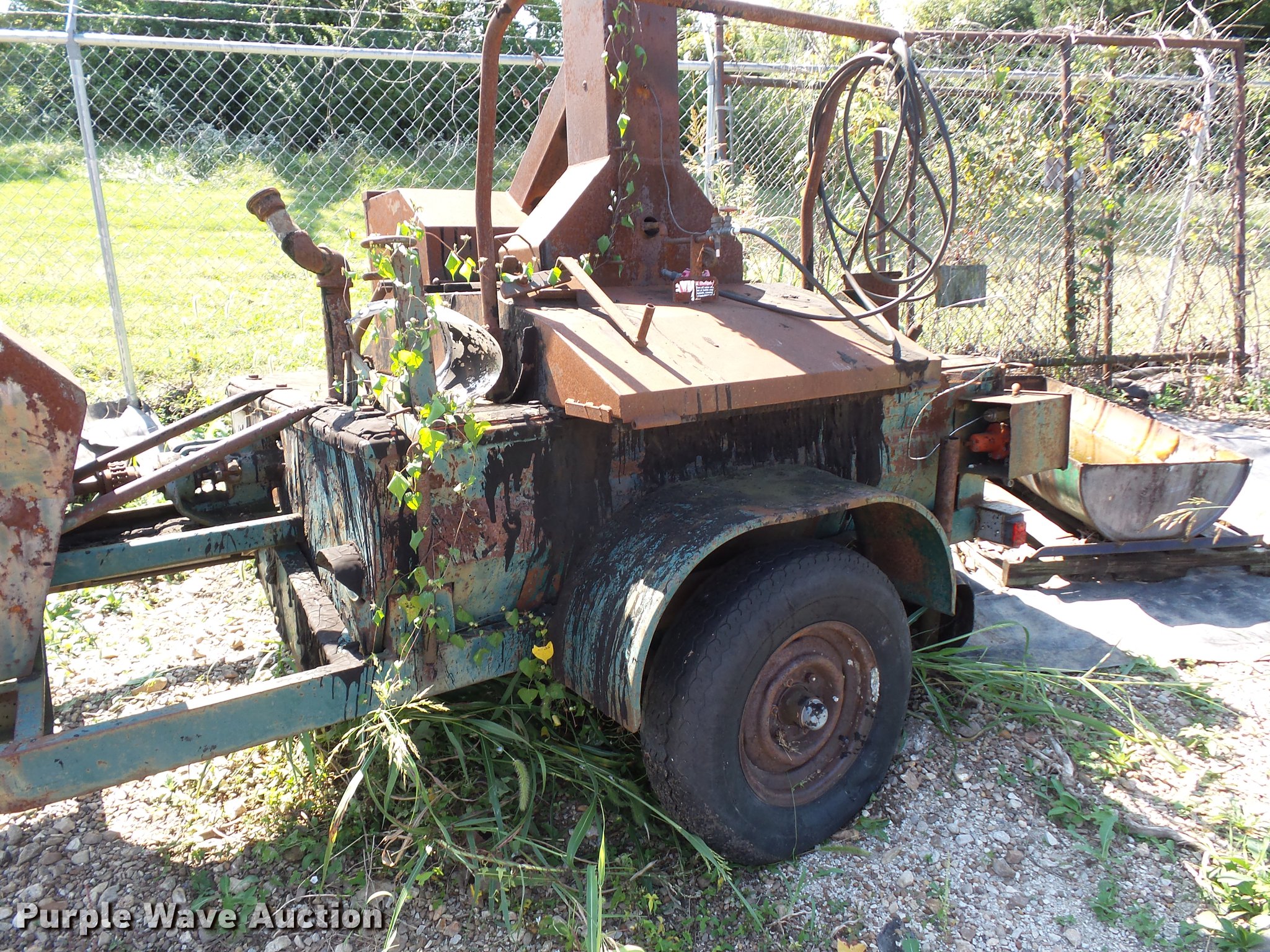 Purple Wave is selling a used Pot Hole Patcher in Missouri. This item is a Garlock tar pot kettle with the following: 115 gallon capacity, Gas engine, Pintle hitch, Manual jack, No wheel or tire on one side, Unknown operating condition
