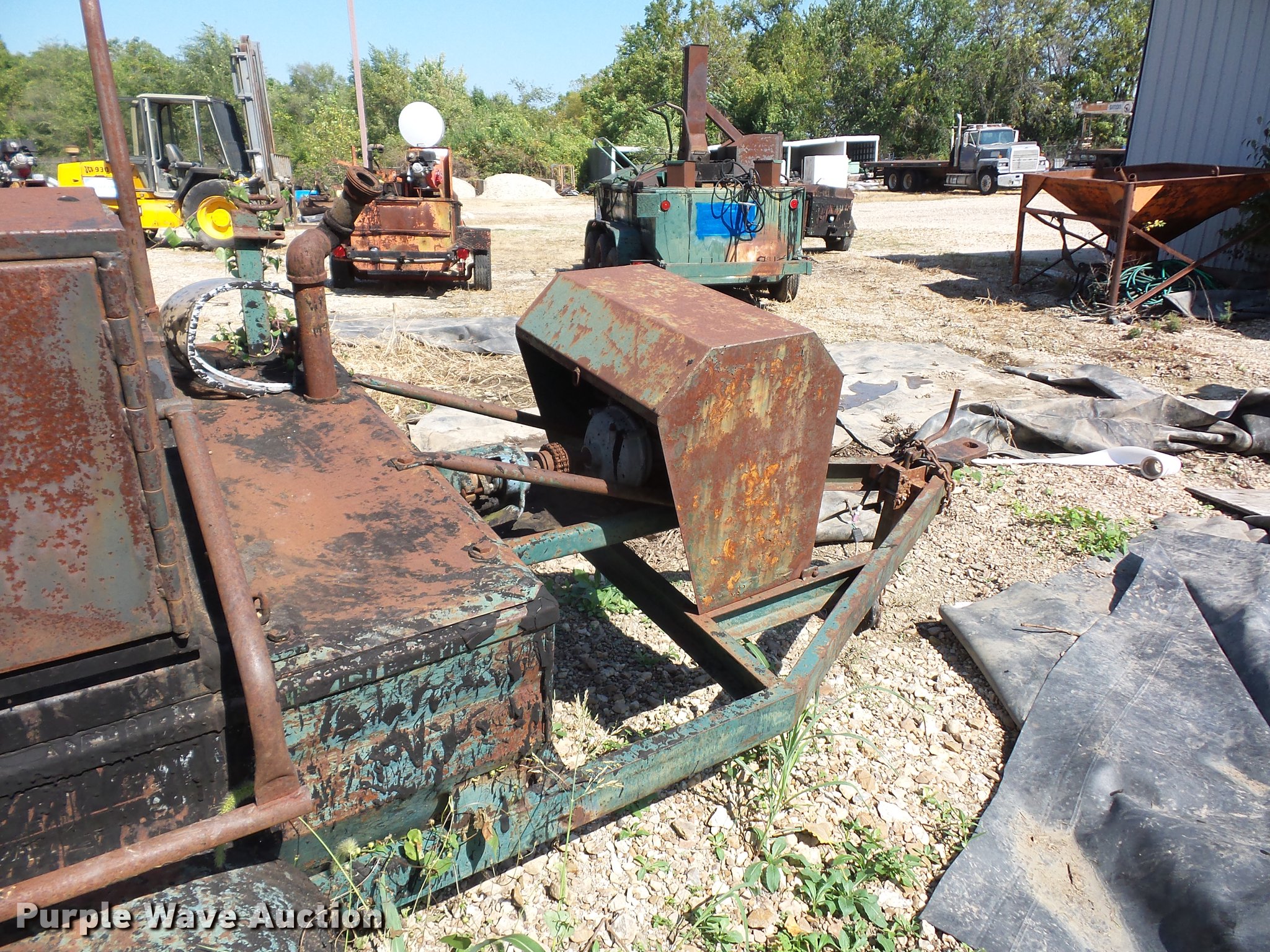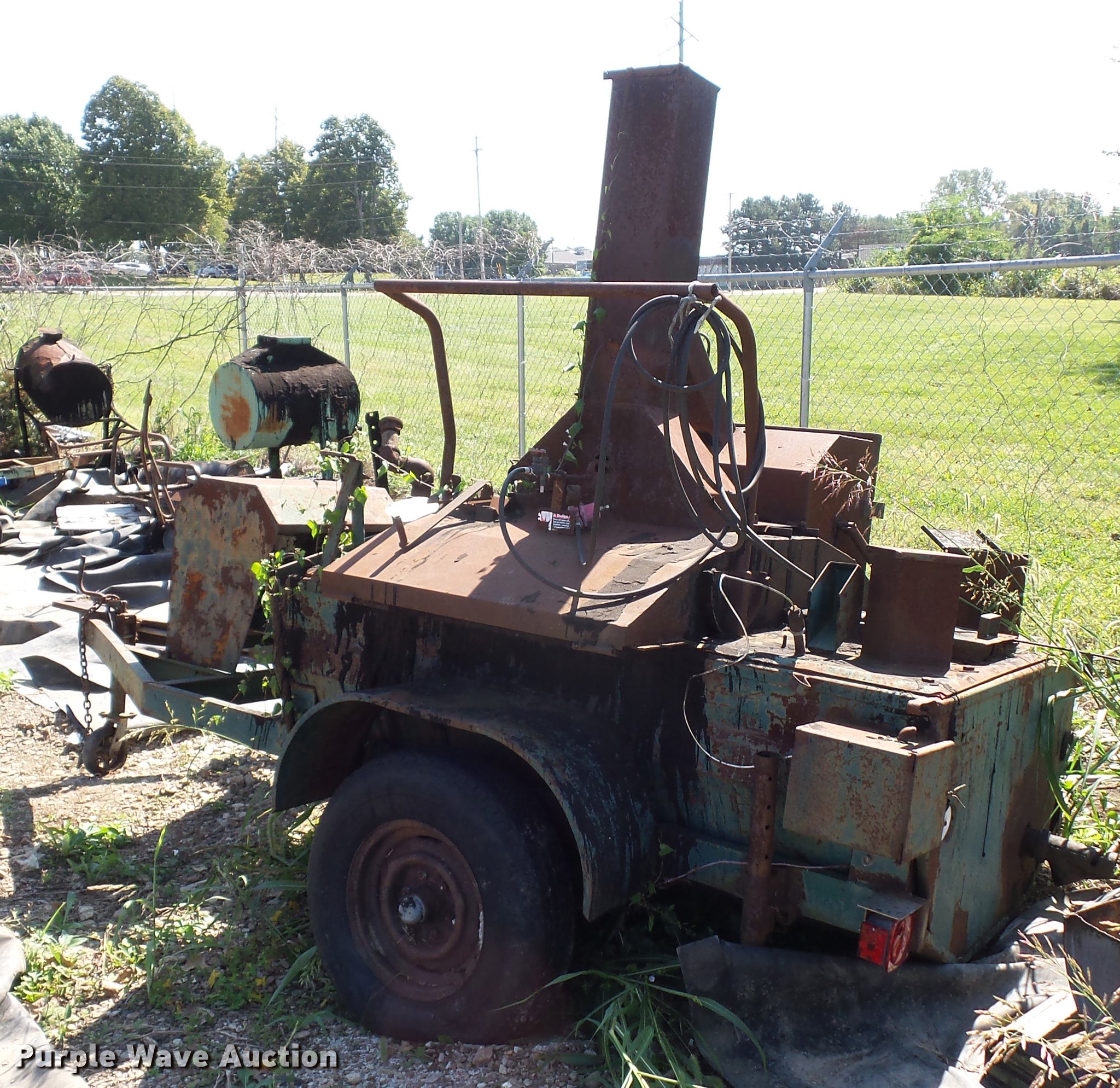 Garlock tar pot kettle. 115 gallon capacity, Gas engine, Pintle hitch, Manual jack, No wheel or tire on one side, Unknown operating condition. Transfer of ownership documentation will be a bill of sale. PJM Leasing. 144 W Markey Rd. Belton, MO 64012