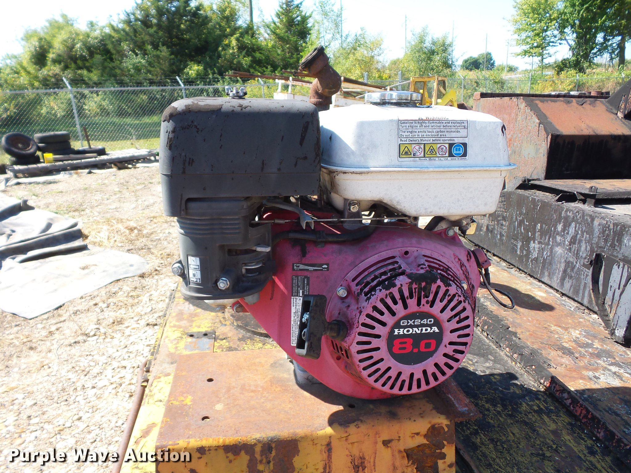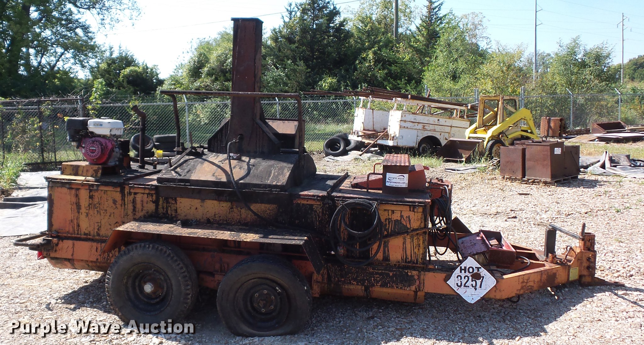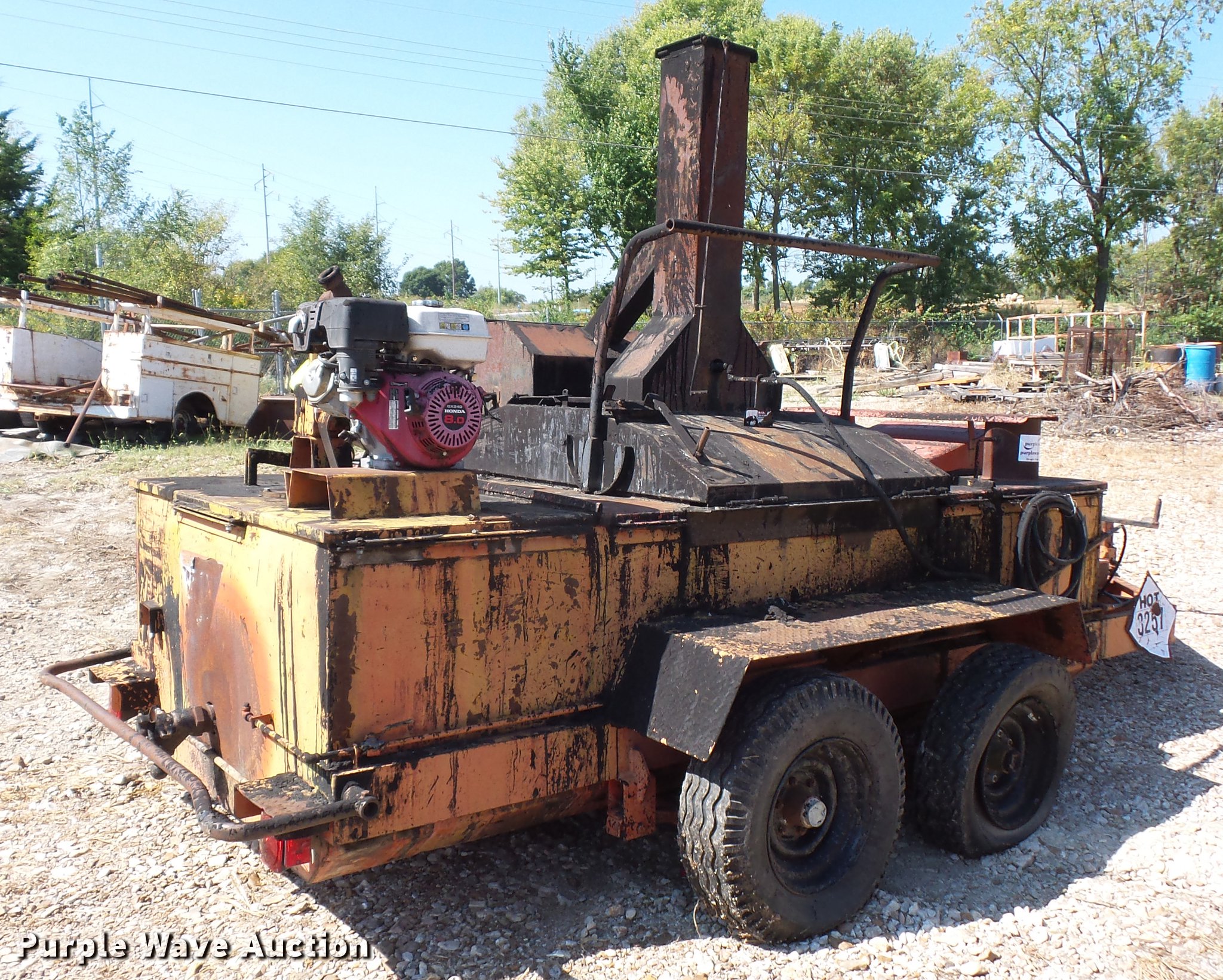 Purple Wave is selling a used Pot Hole Patcher in Missouri. This item is a Cleasby tar pot kettle with the following: 412 gallon capacity, Honda 8 HP gas engine, Pintle hitch, Tandem axle, 8-14.5 tires, Low tires, Unknown operating condition