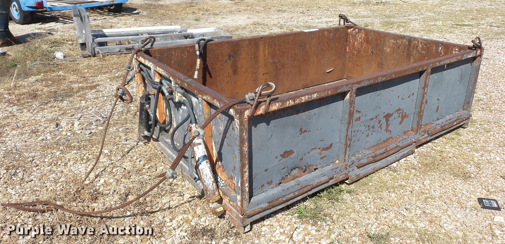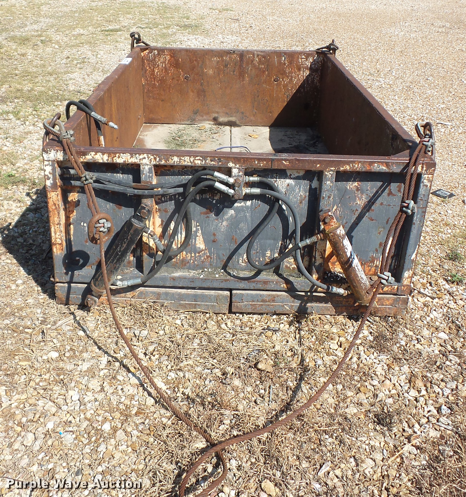 Dump box. 8' x 5' x 2', Hydraulic operation. PJM Leasing. 144 W Markey Rd. Belton, MO 64012