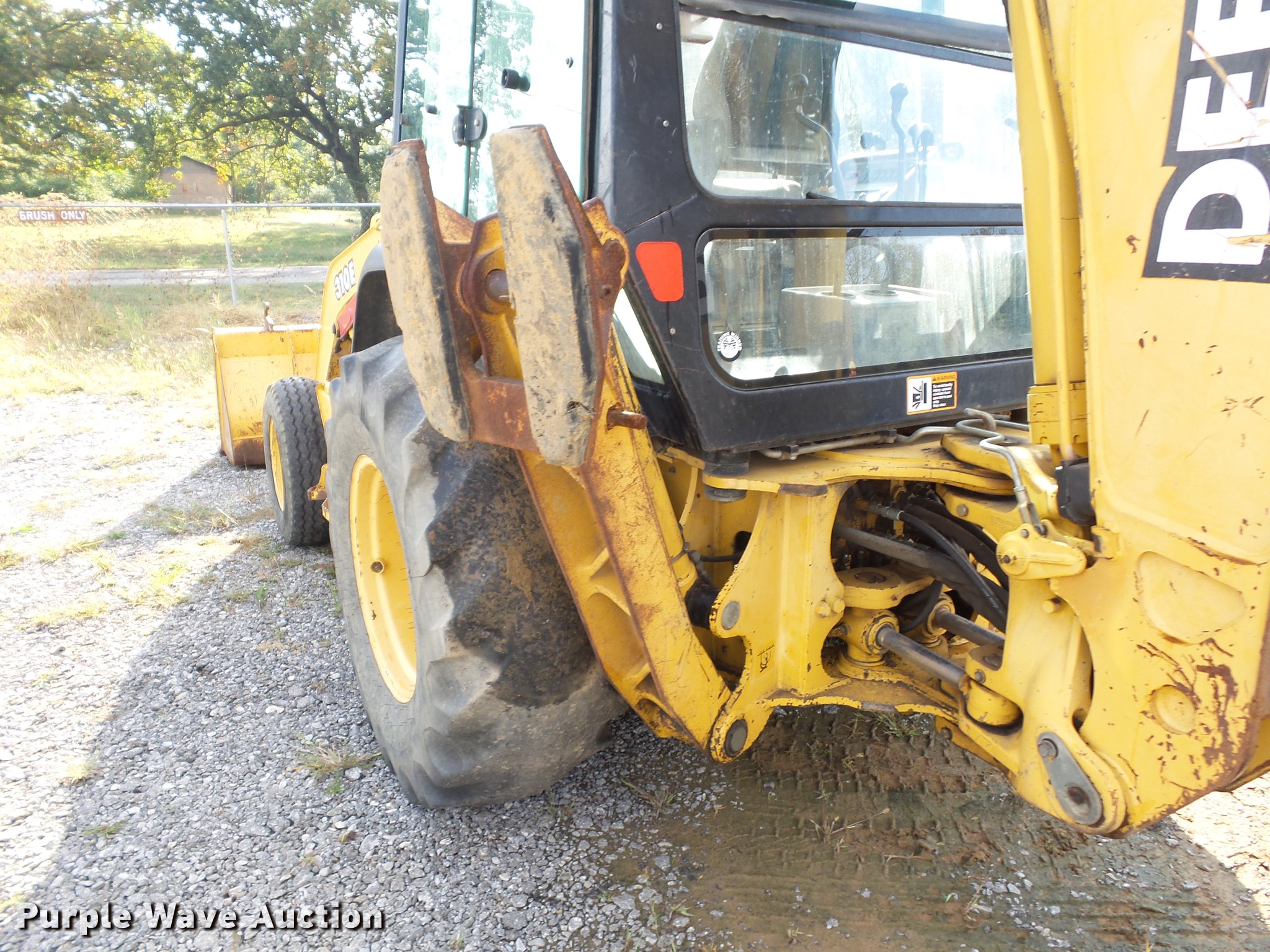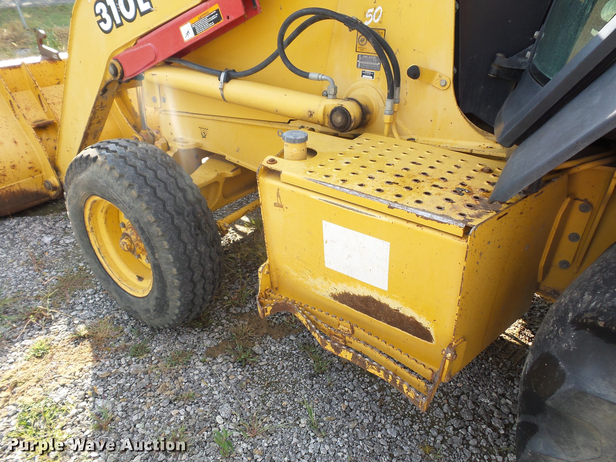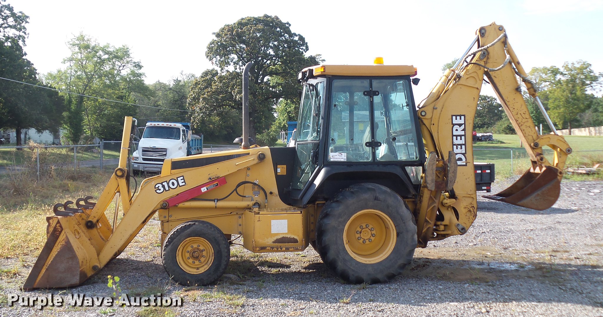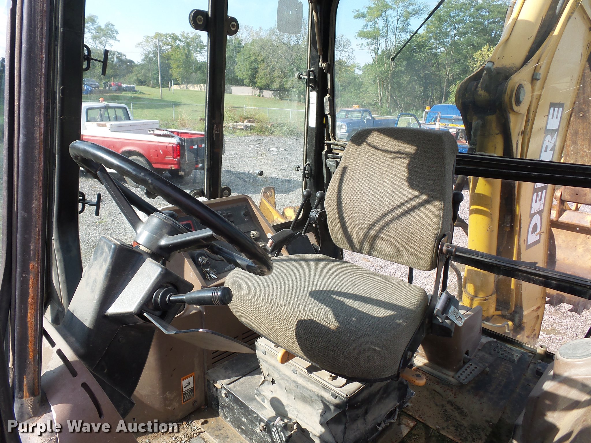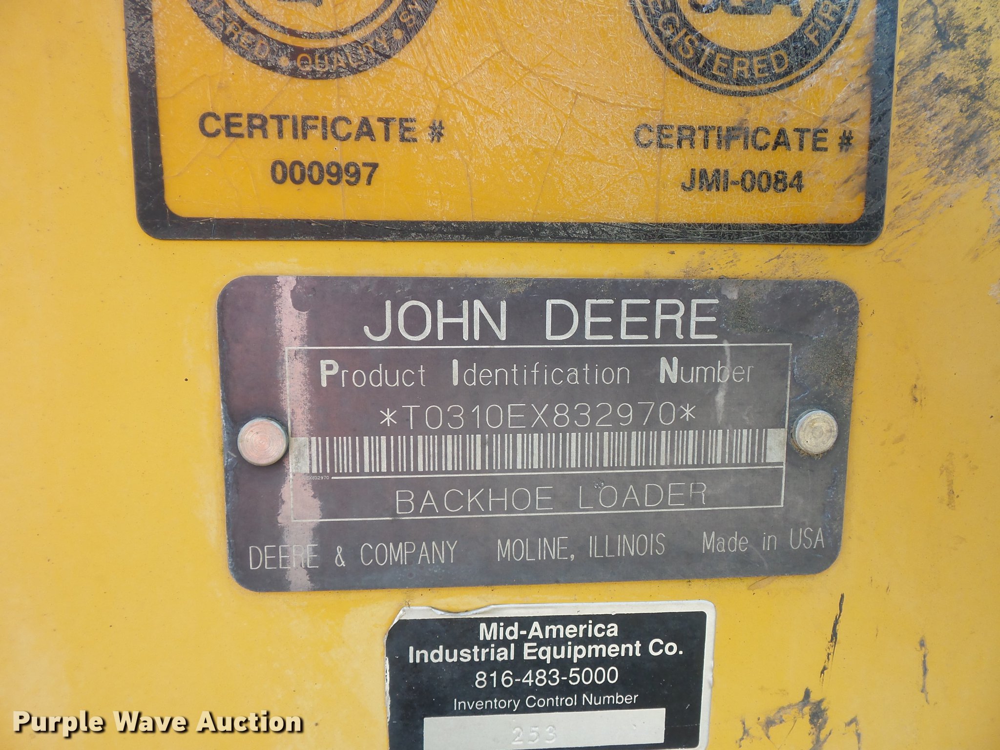 Purple Wave is selling a used Tractor Loader Backhoe in Missouri. This item is a 1997 John Deere 310E backhoe with the following: 3,714 hours on meter, John Deere four cylinder turbo diesel engine, Shuttle shift transmission, 4F-4R gears, EROPS, Heat, Wobble stick backhoe controls, Front and rear work lights, 84"W loader bucket, Joystick loader control, 24"W backhoe bucket, (5) teeth, 11-16 front tires, 19.5-24 rear tires, One tire low, Serial T0310EX832970