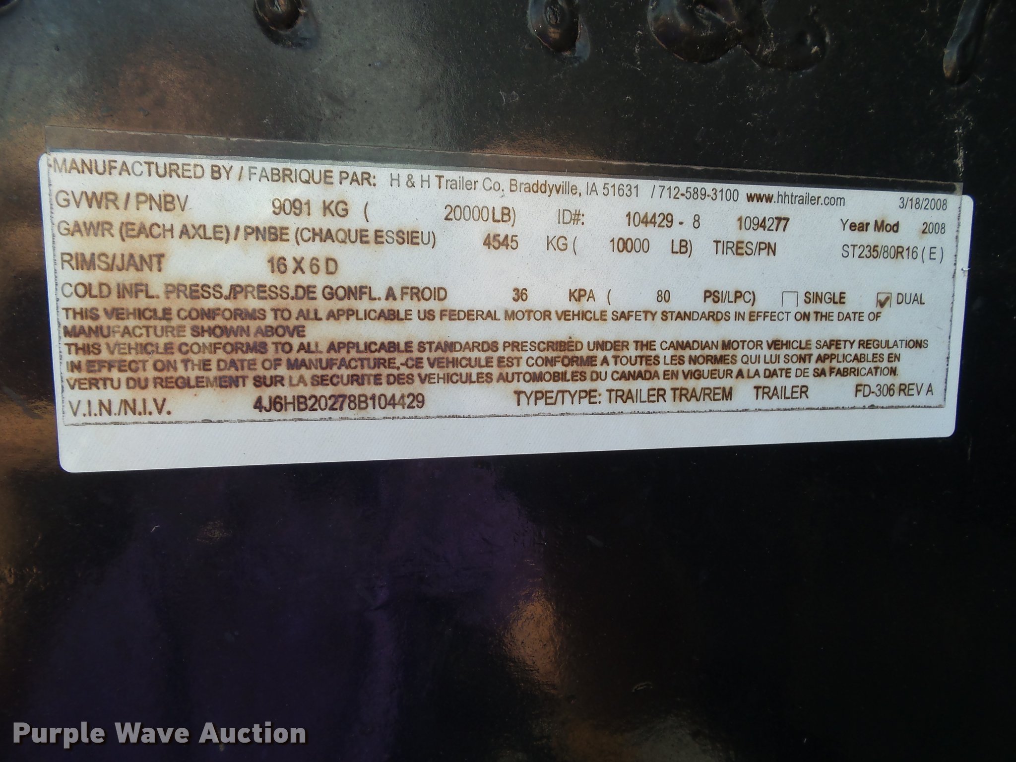 2008 H&H HB202 dump trailer has sold in Des Moines, Iowa for $9790. Item DH9400 sold on October 26th, 2017.