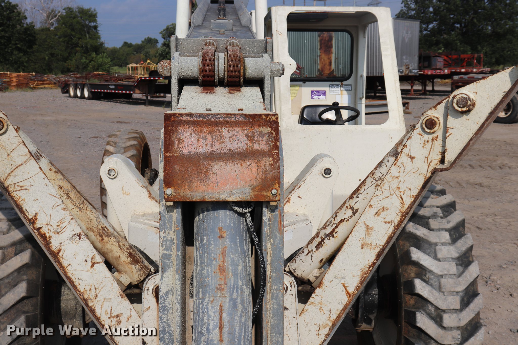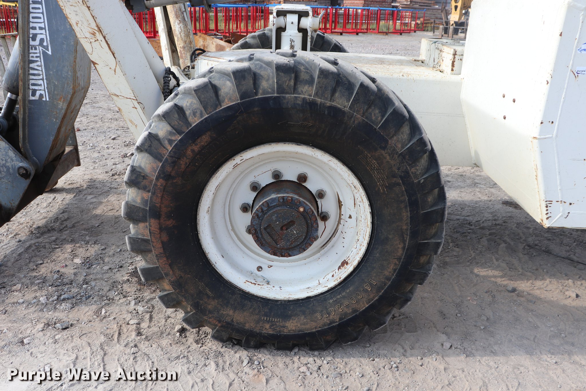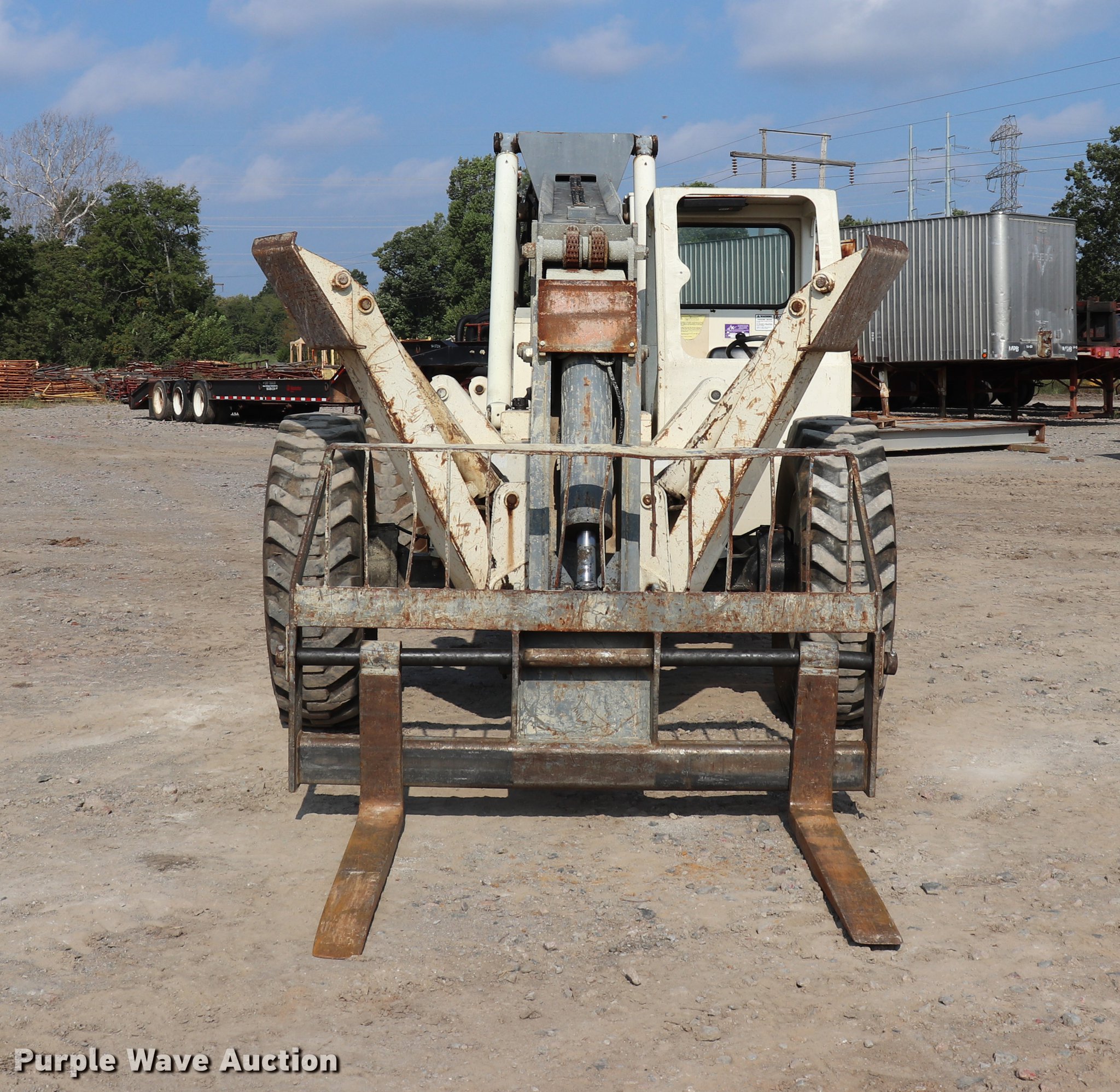 Purple Wave is selling a used Telehandler in Oklahoma. This item is a Terex SS1048 telehandler with the following: 4,796 hours on meter, Four cylinder turbo diesel engine, Shuttle shift transmission, 3F-3R gears, Canopy, Backup alarm, Crab steering, Four wheel steering, 10,000 lbs max lift capacity, 48' max lift height, 30' max reach length, Three boom sections, 48" fork length, Hydraulic leveling, Hydraulic outriggers, 14.00-24TG foam-filled tires, Serial 002676, Unit# 80-31