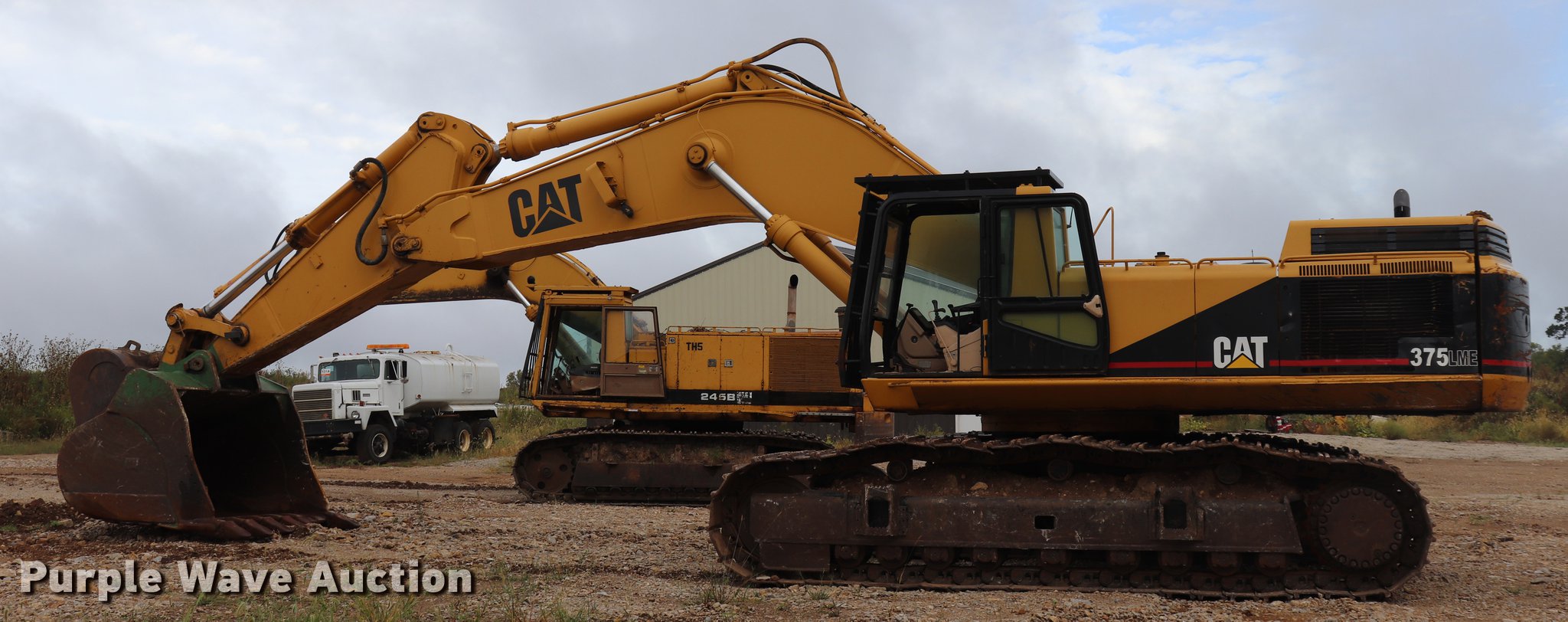 Purple Wave is selling a used Hydraulic Excavator in Kansas. This item is a 2000 Caterpillar 375L excavator with the following: 22,634 hours on meter, Caterpillar six cylinder turbo diesel engine, Hydrostatic transmission, EROPS, AC and heat, AM/FM, Suspension seat, Front work lights, Travel alarm, Standard boom, 93" stick length, 90.5"W bucket, (6) bolt-on teeth, 35"W steel double grouser track pads, Non-operational AC and heat, Glass broken, One tooth missing, Serial 1JM00482