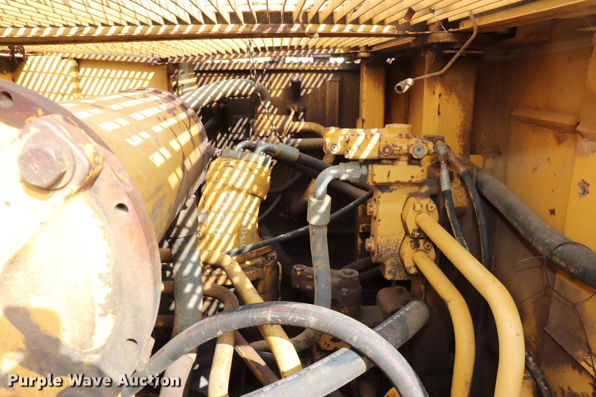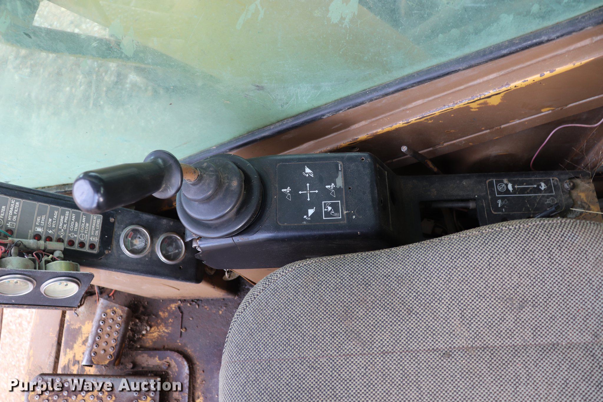 Purple Wave is selling a used Hydraulic Excavator in Kansas. This item is a 1988 Caterpillar 245B excavator with the following: 25,256 hours on meter, Caterpillar six cylinder turbo diesel engine, Hydrostatic transmission, EROPS, AC and heat, Wipers, Front work lights, Standard boom, 114" stick length, 69"W bucket, (5) bolt-on teeth, 30"W steel double grouser track pads, Unknown operating condition of AC and heat, Glass broken, Serial 6MF00028