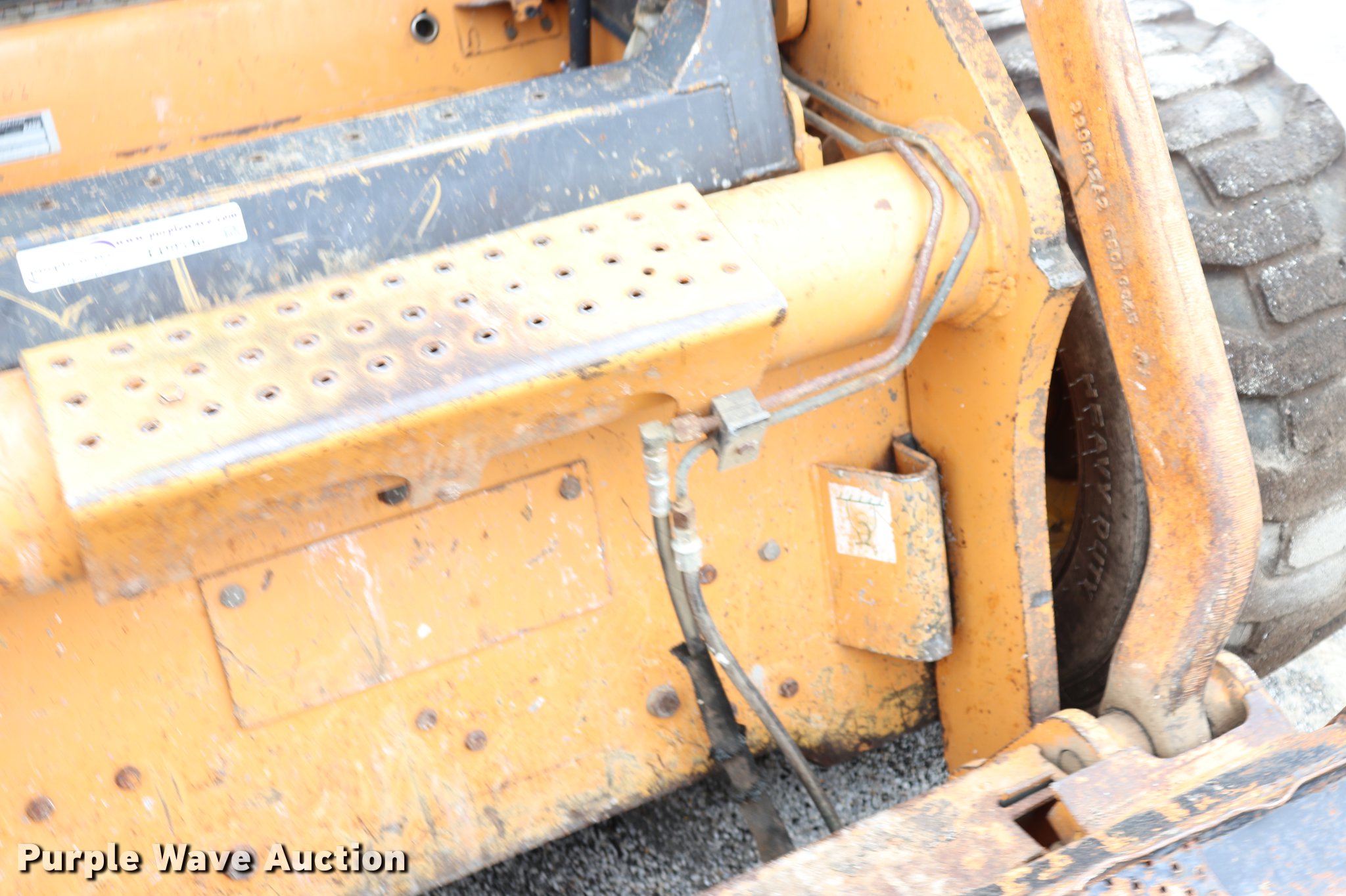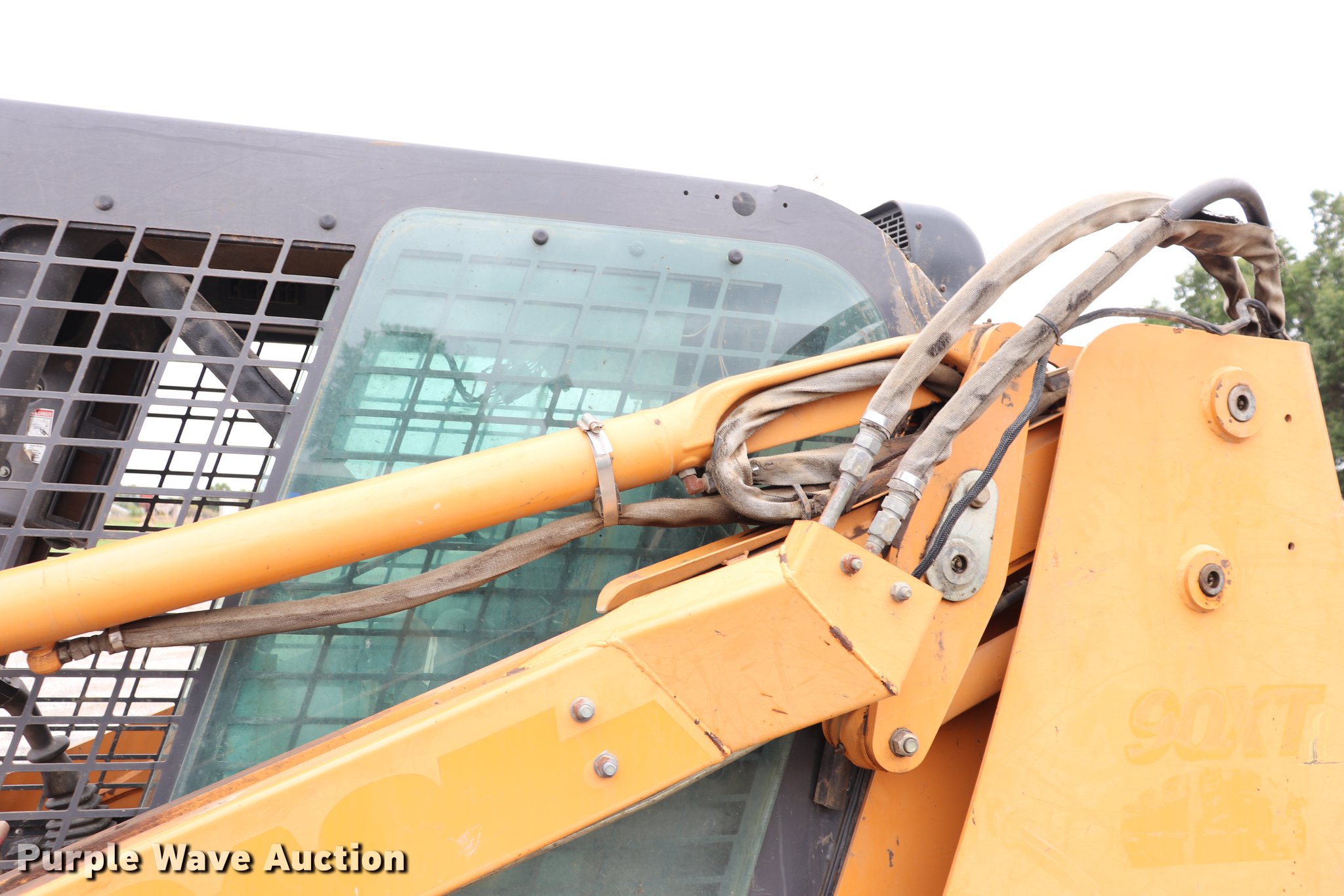 Purple Wave is selling a used Skid Steer Loader in Kansas. This item is a Case 90XT skid steer with the following: 3,301 hours on meter, Four cylinder diesel engine, Hydrostatic transmission, Enclosed cab, Joystick controls, Spring suspension seat, Wipers, 72"W bucket, Manual quick coupler, Auxiliary hydraulics, 12-16.5 tires, Door included, Hydraulic leak, Battery weak, Serial AF0397925