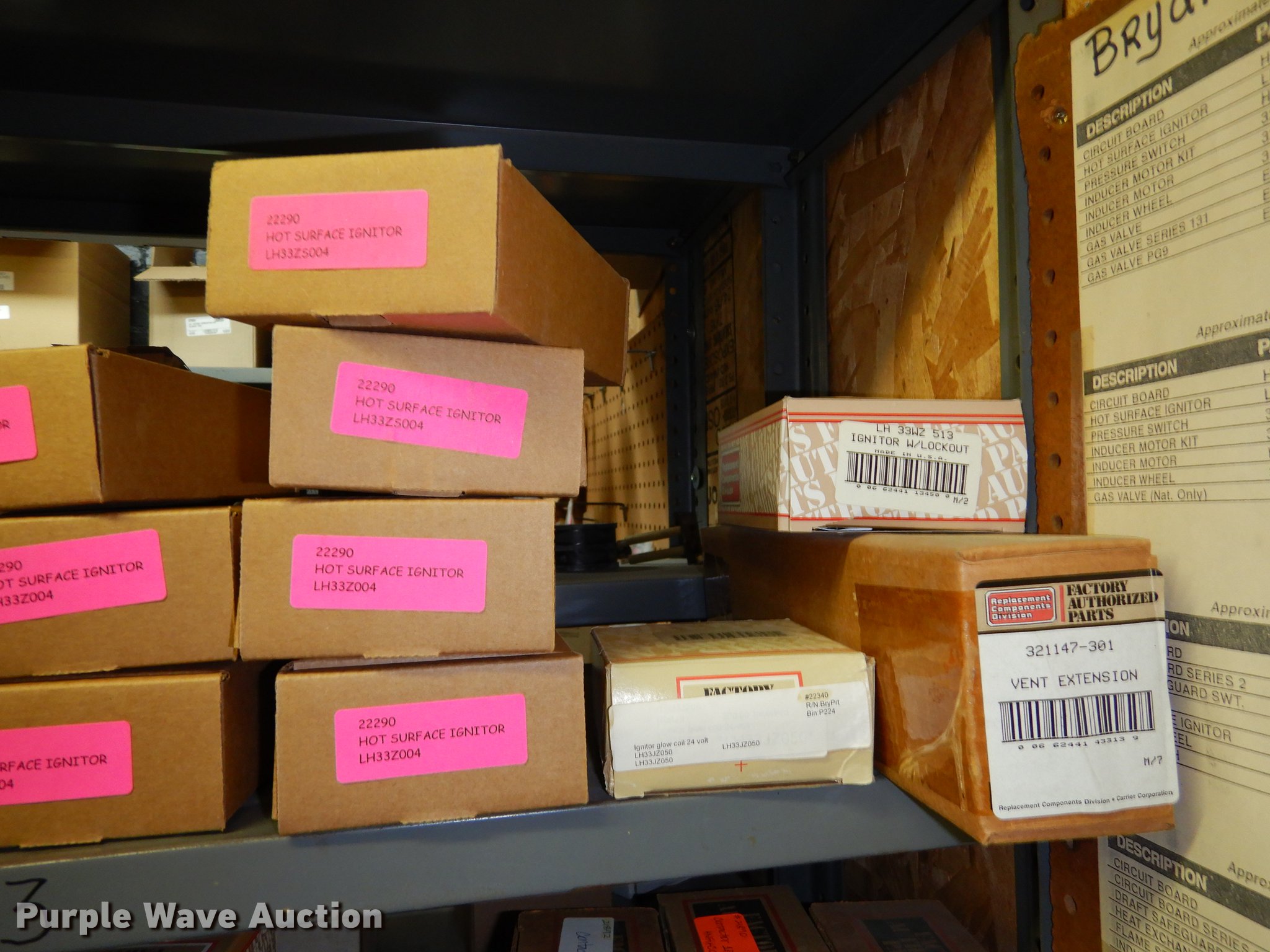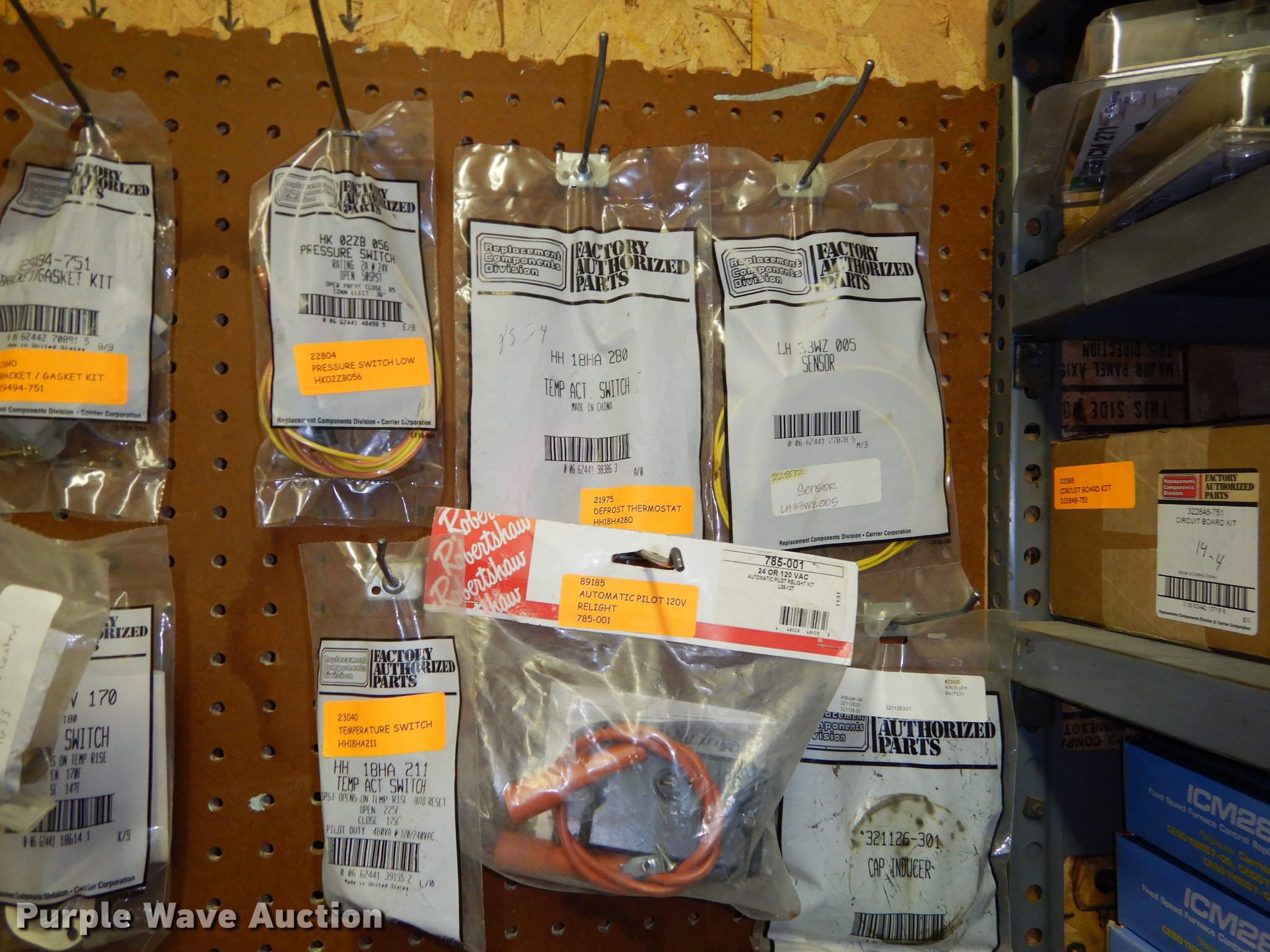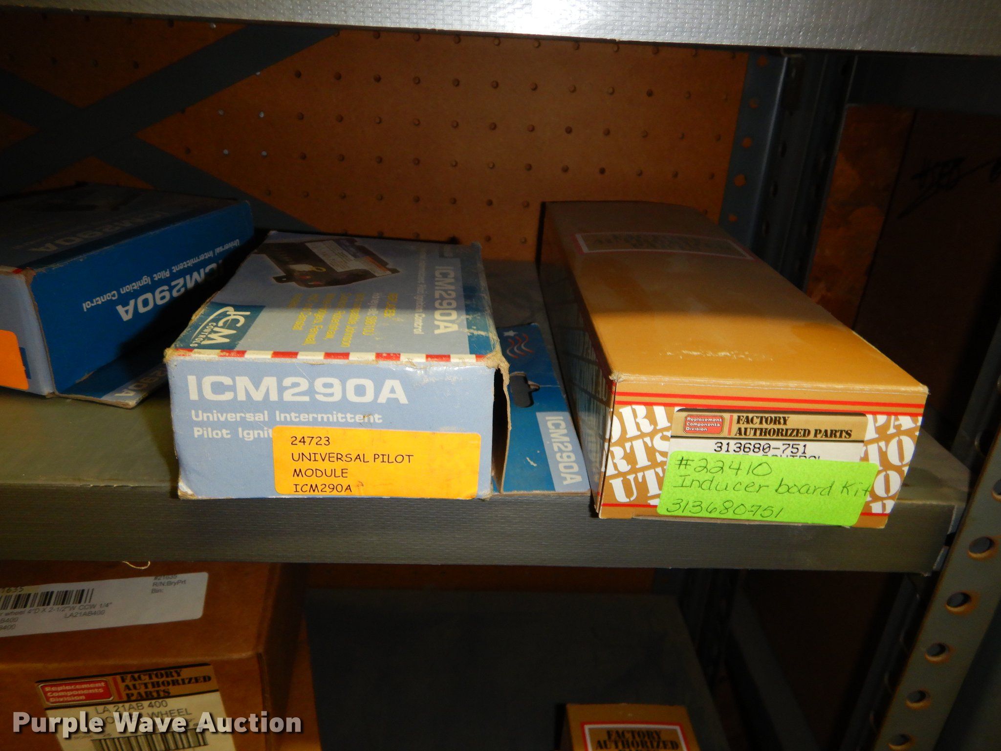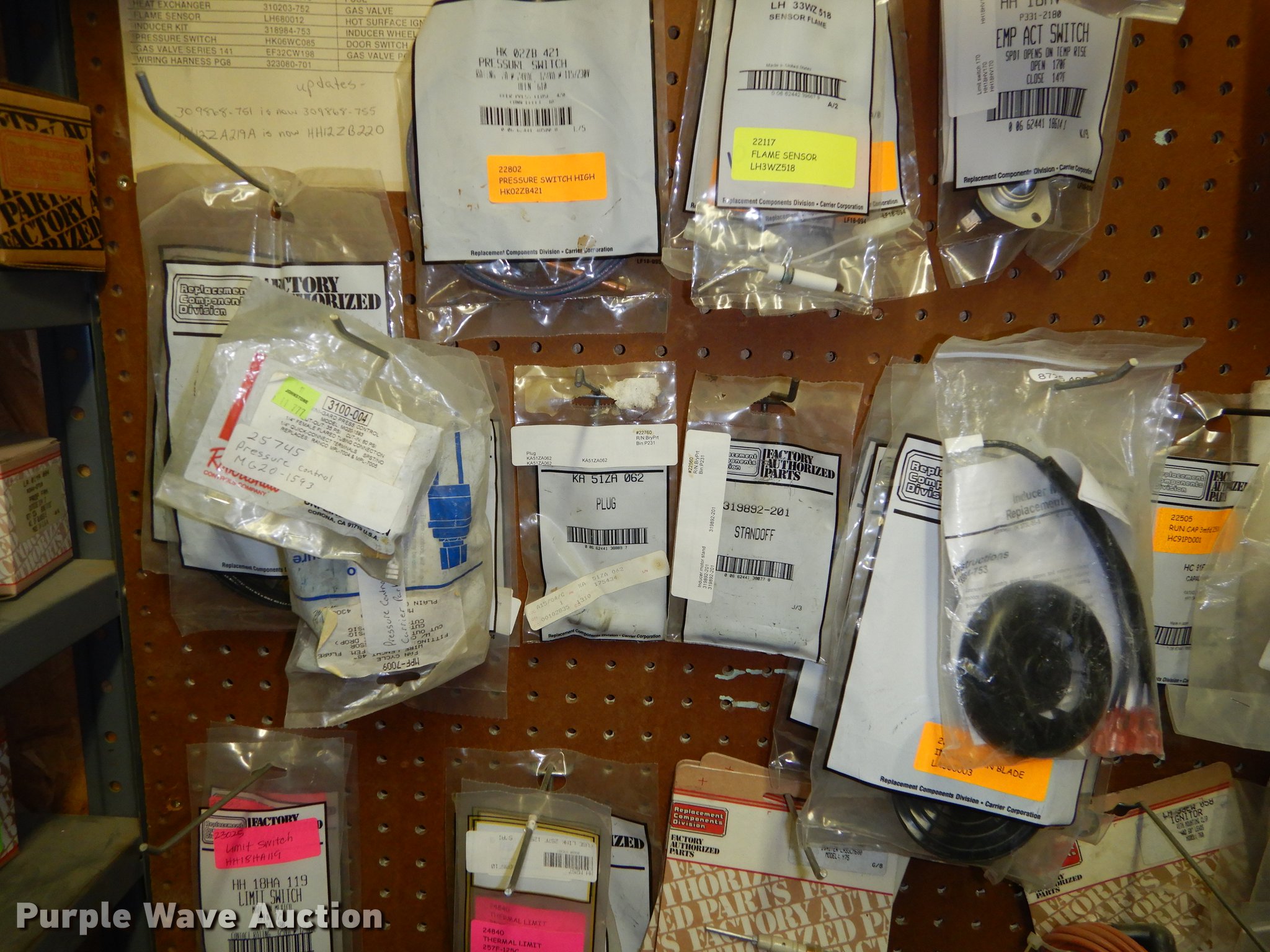Purple Wave is selling a used Building Materials in Kansas. This item is a HVAC supplies with the following: Motors, Circuit boards, Blower wheel, Transformer, Board controls, Ignition control, HVAC service parts, Trane Flame roll out switch, Inducer motor, FAP limit switch, Time guard, Hot surface igniter, Igniter glow coil, Pressure switch, Box air inlet, Thermal limitrs, Fixed speed furnace control modules, Harness wire, Capacitors