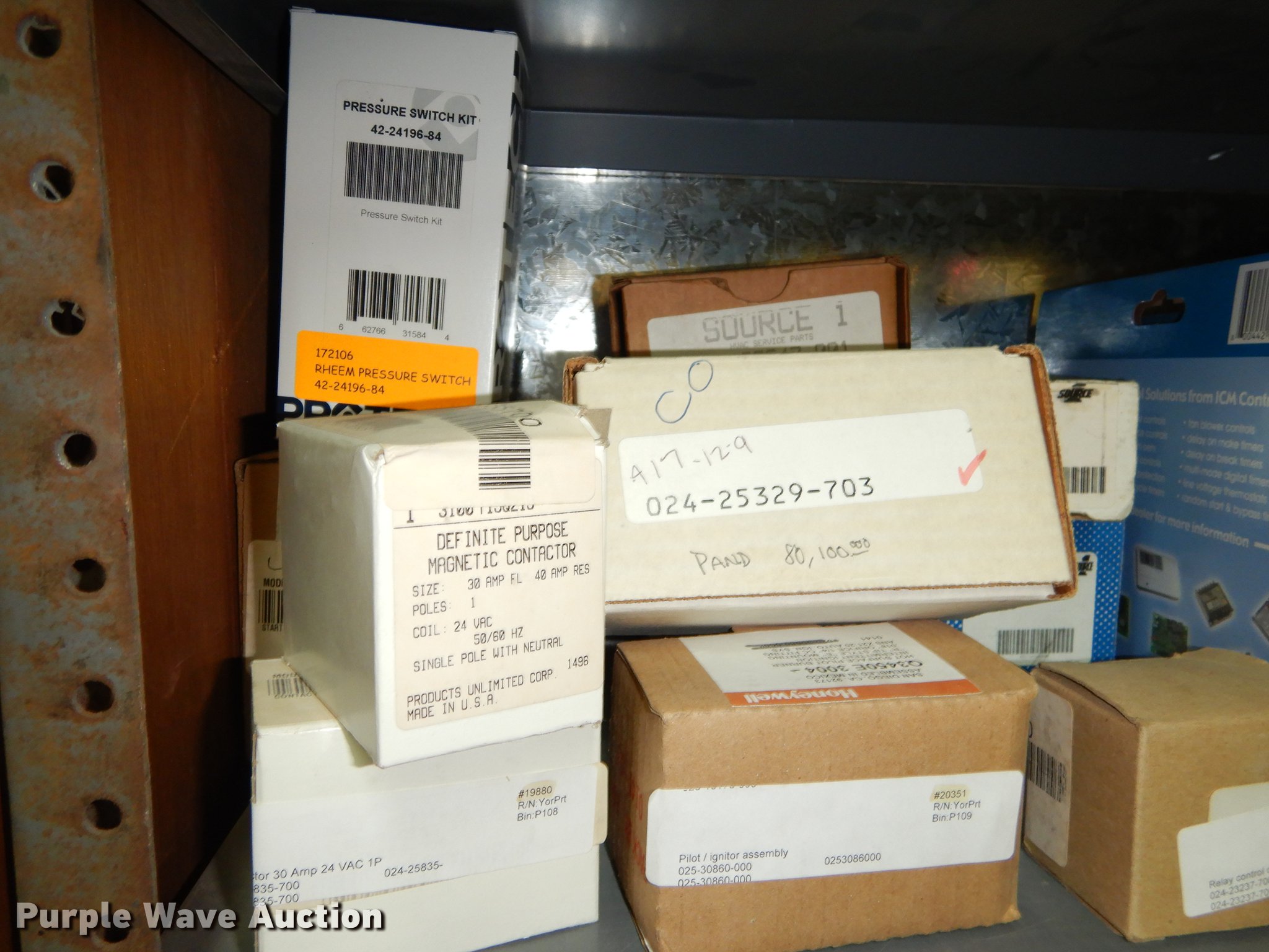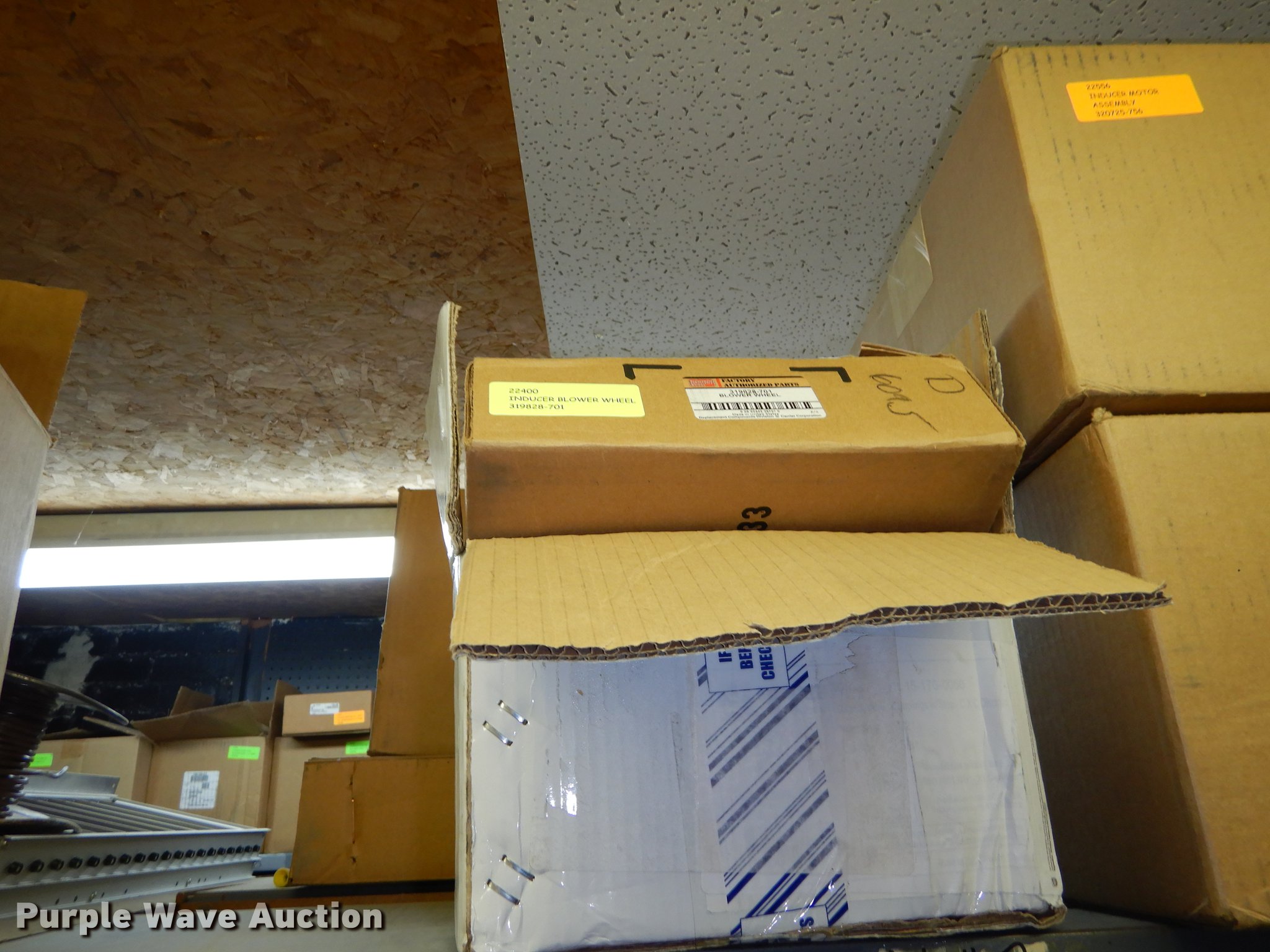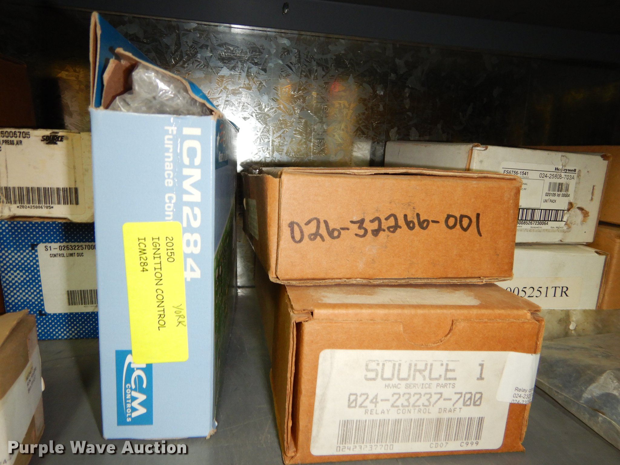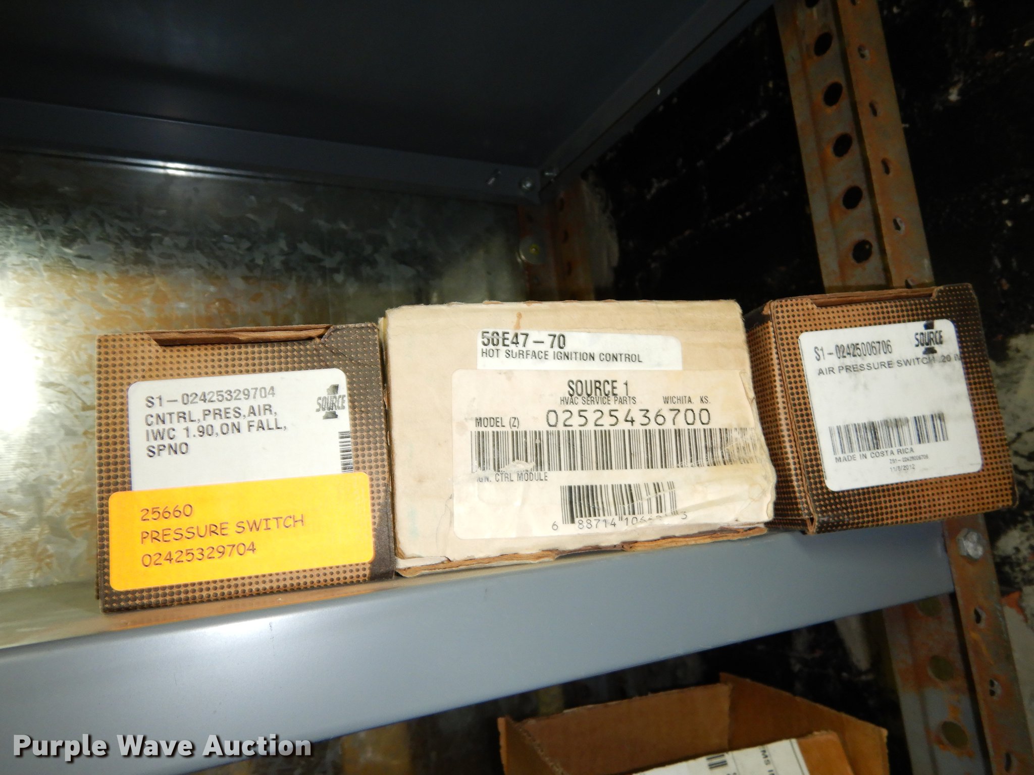 Purple Wave is selling a used Building Materials in Kansas. This item is a HVAC supplies with the following: Motors, Circuit boards, Blower wheel, Transformer, Board controls, Ignition control, HVAC service parts, Trane Flame roll out switch, Inducer motor, FAP limit switch, Time guard, Hot surface igniter, Igniter glow coil, Pressure switch, Box air inlet, Thermal limitrs, Fixed speed furnace control modules, Harness wire, Capacitors
