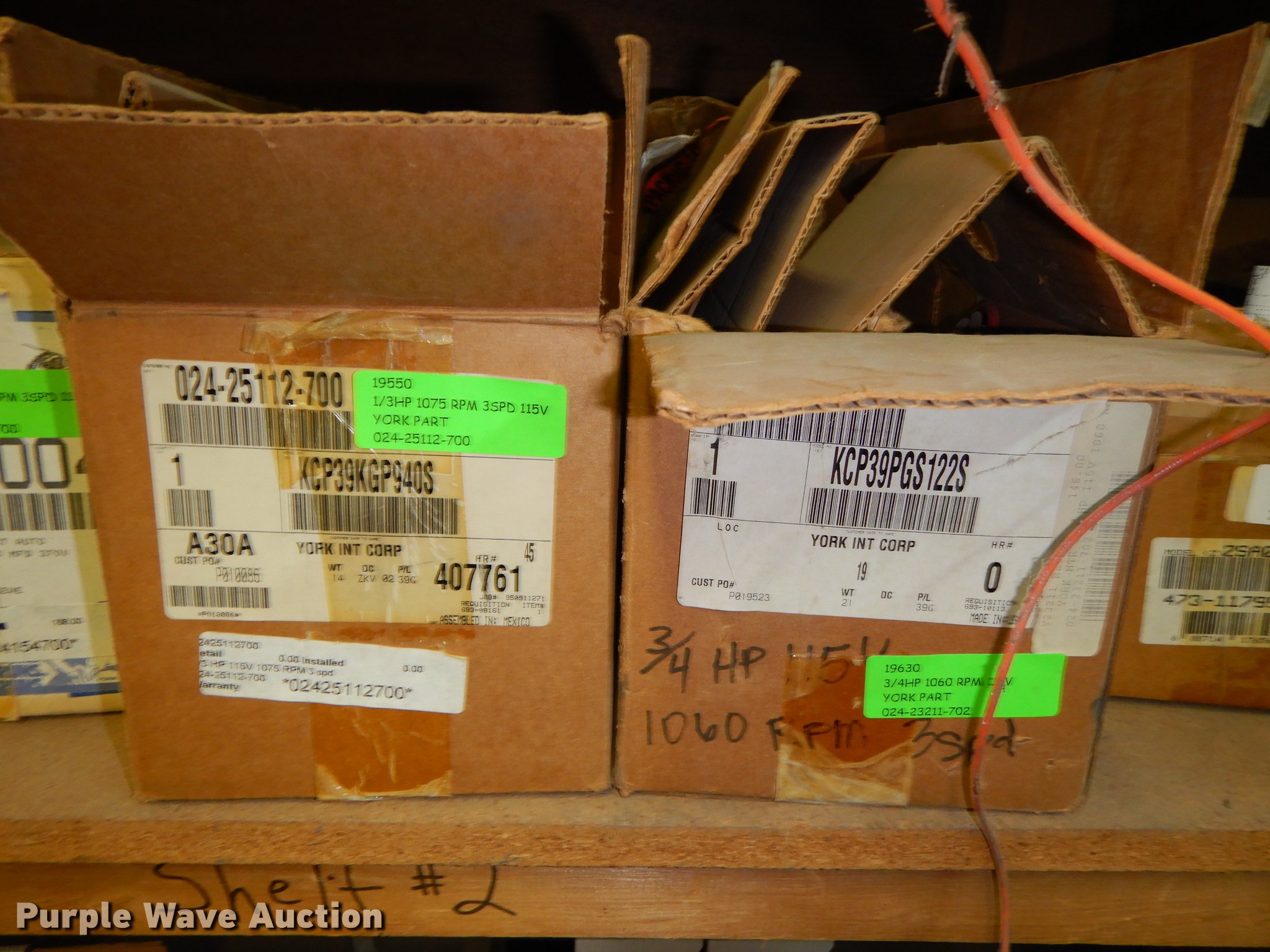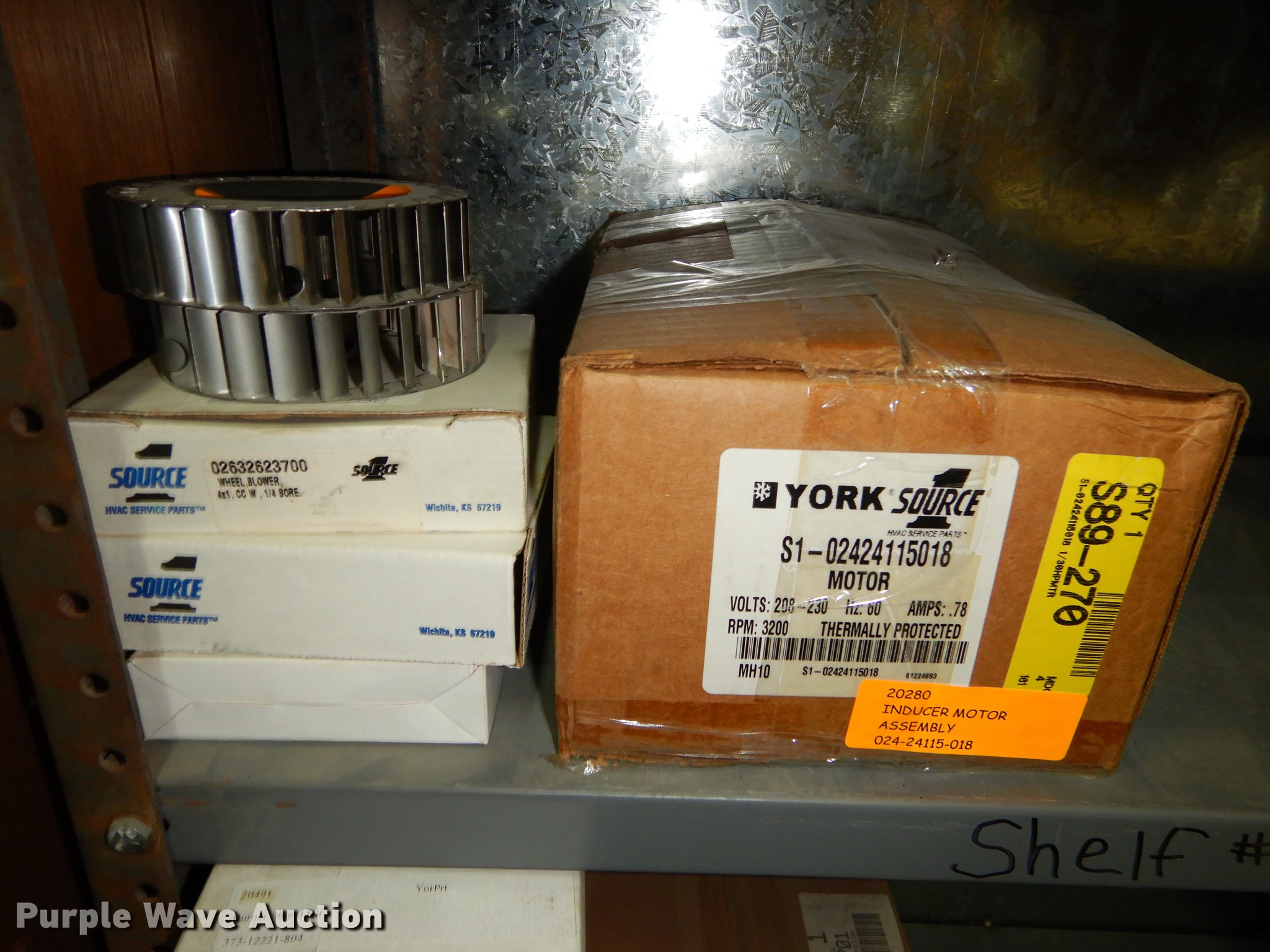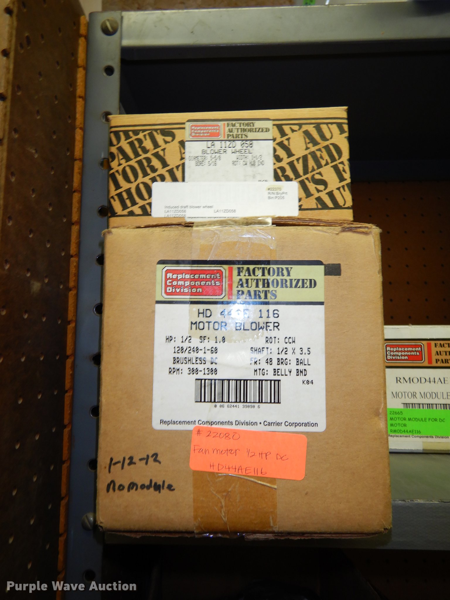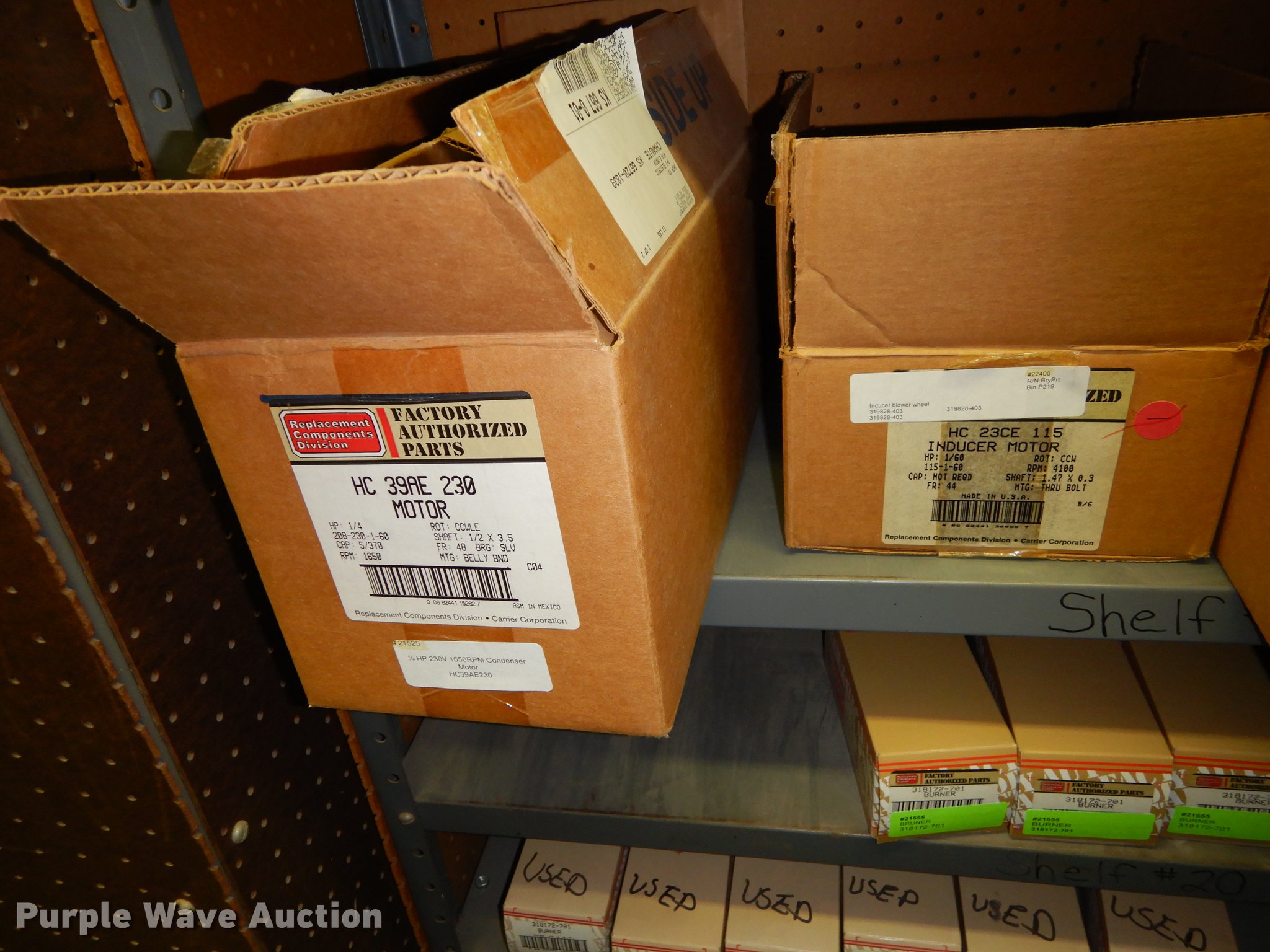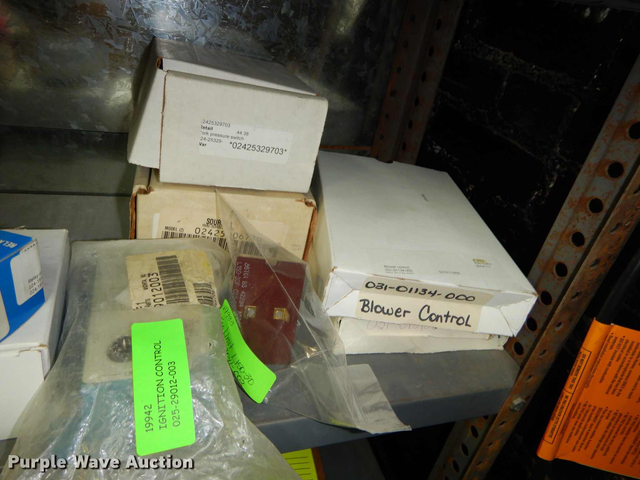 Purple Wave is selling a used Building Materials in Kansas. This item is a HVAC supplies with the following: Motors, Circuit boards, Blower wheel, Transformer, Board controls, Ignition control, HVAC service parts, Trane Flame roll out switch, Inducer motor, FAP limit switch, Time guard, Hot surface igniter, Igniter glow coil, Pressure switch, Box air inlet, Thermal limitrs, Fixed speed furnace control modules, Harness wire, Capacitors