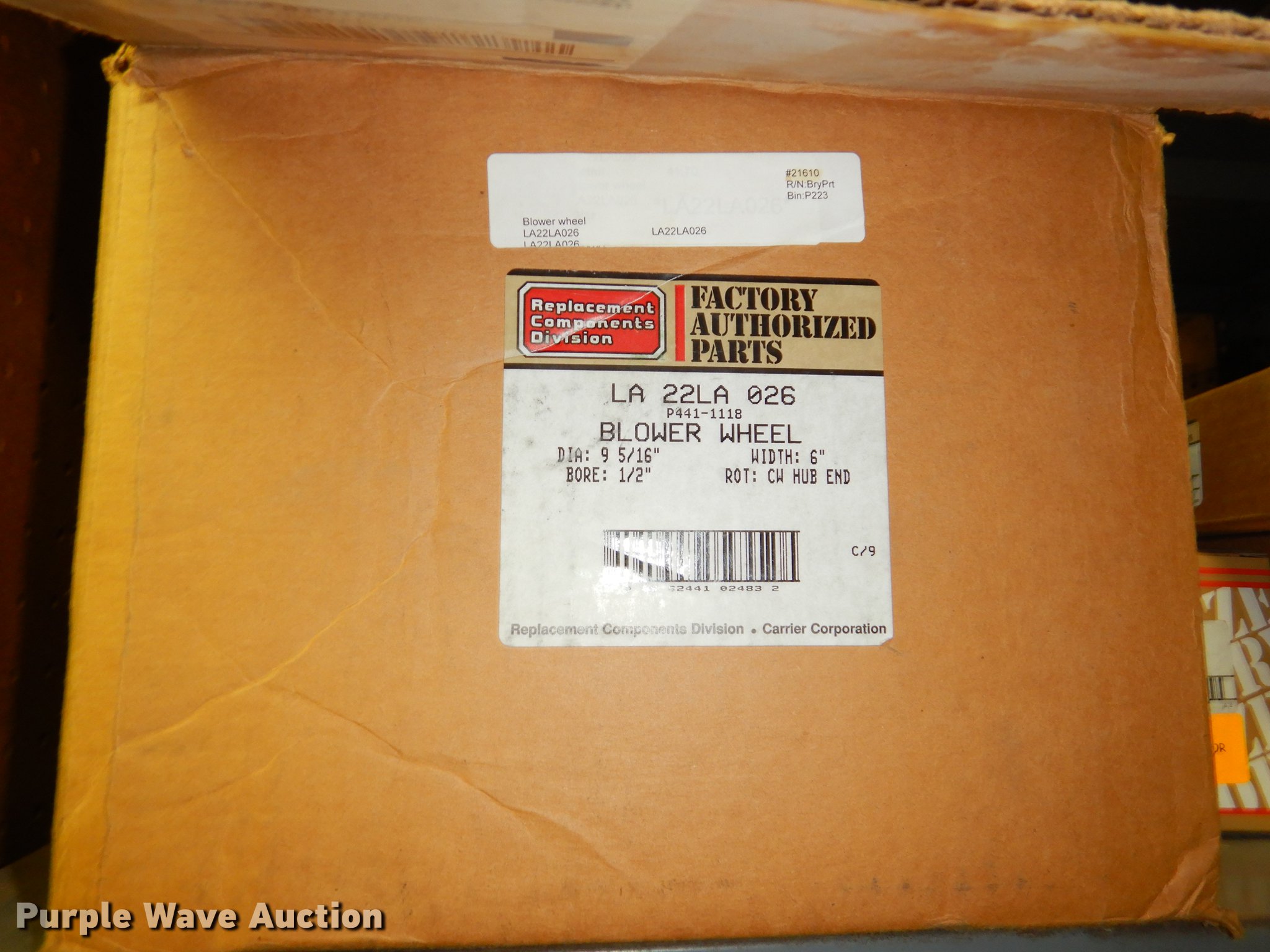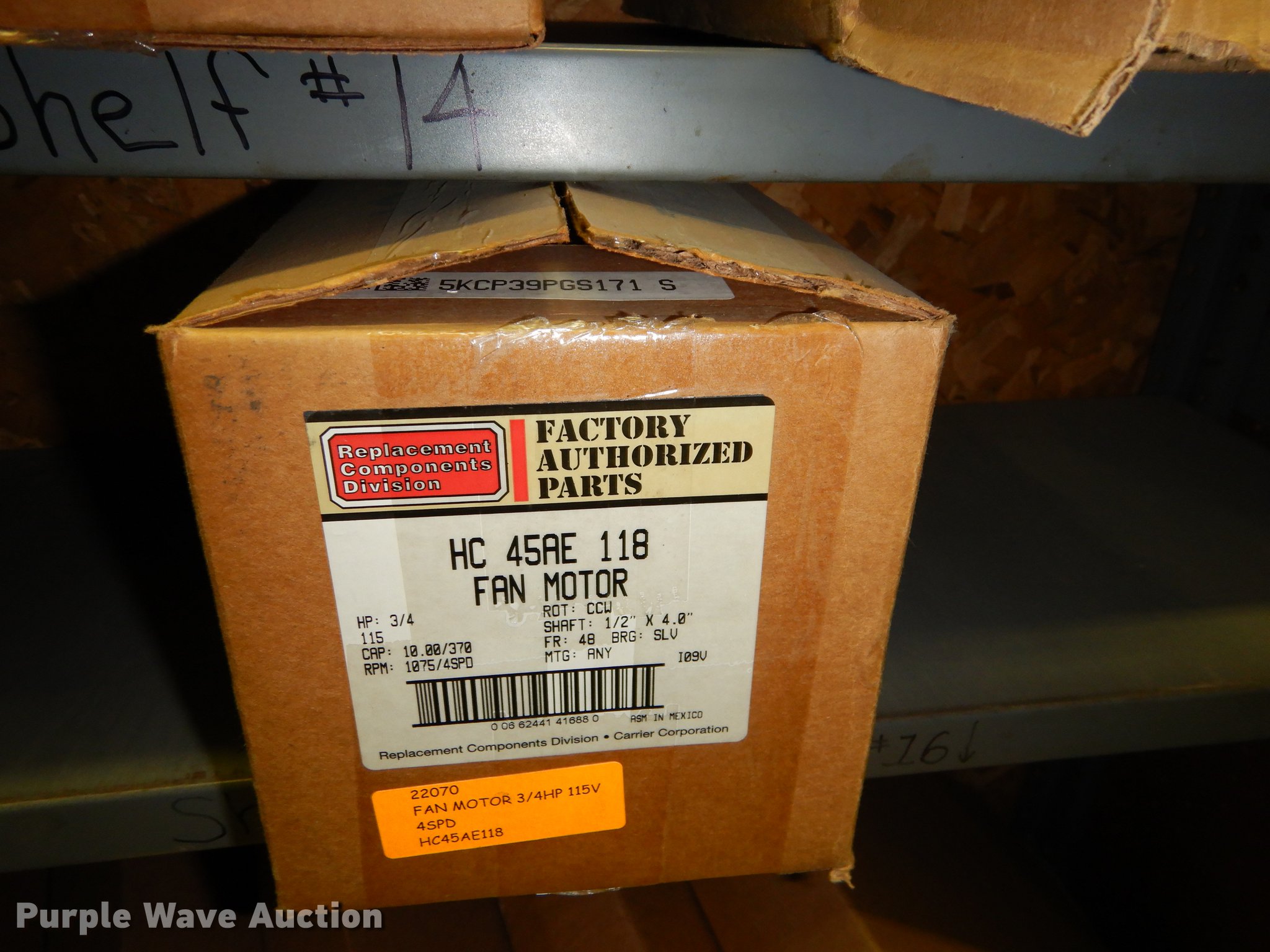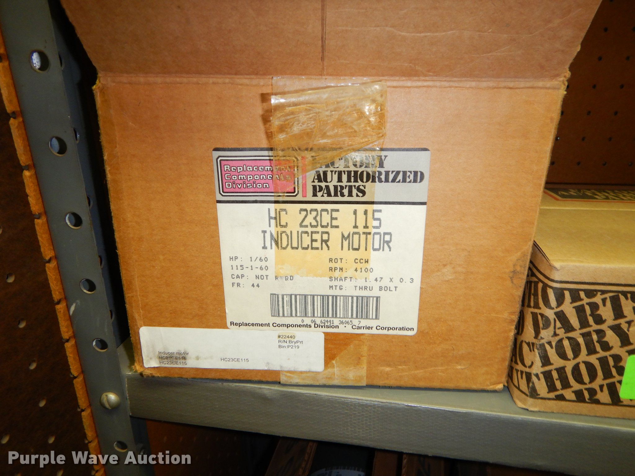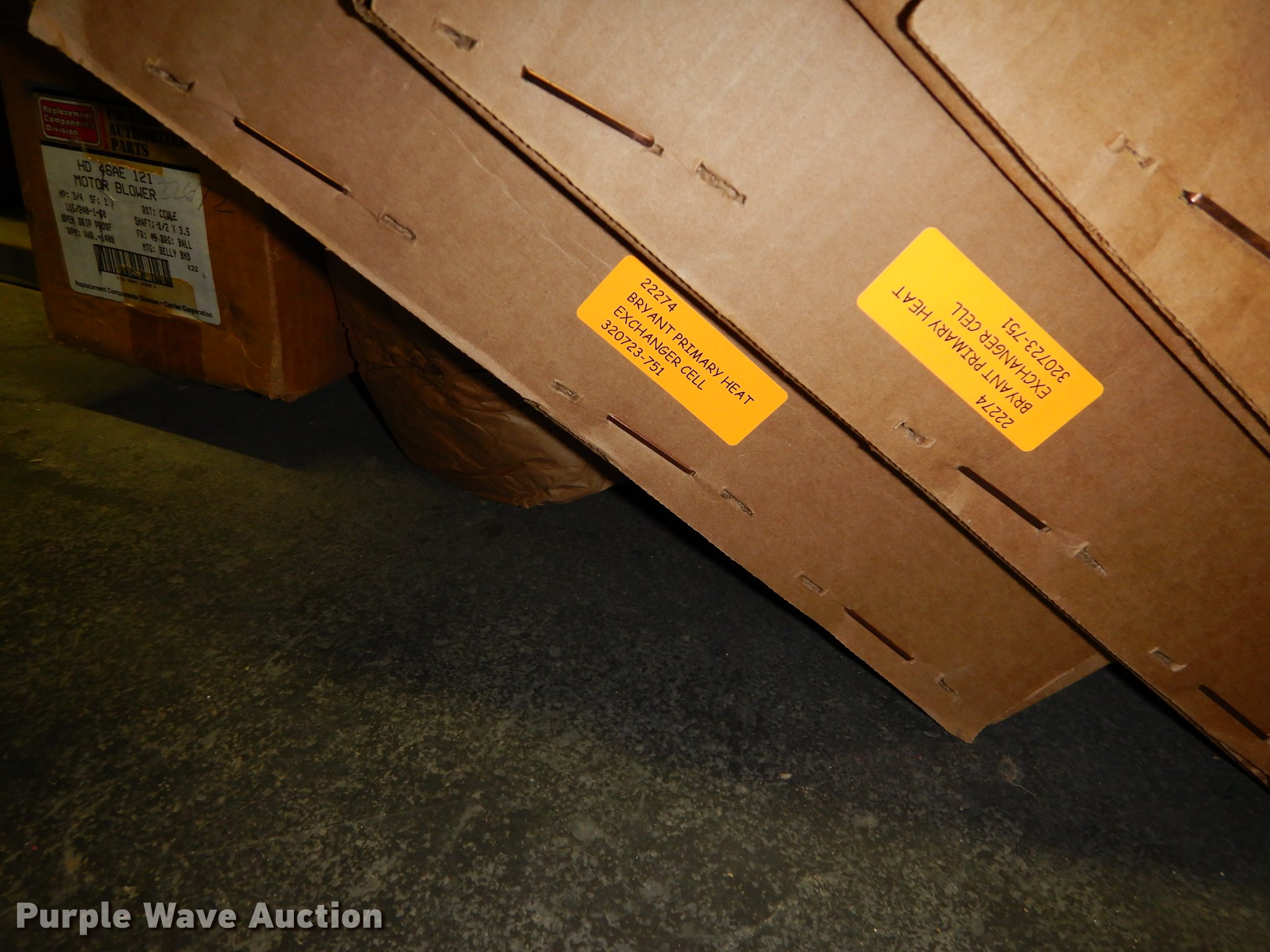 Purple Wave is selling a used Building Materials in Kansas. This item is a HVAC supplies with the following: Motors, Circuit boards, Blower wheel, Transformer, Board controls, Ignition control, HVAC service parts, Trane Flame roll out switch, Inducer motor, FAP limit switch, Time guard, Hot surface igniter, Igniter glow coil, Pressure switch, Box air inlet, Thermal limitrs, Fixed speed furnace control modules, Harness wire, Capacitors
