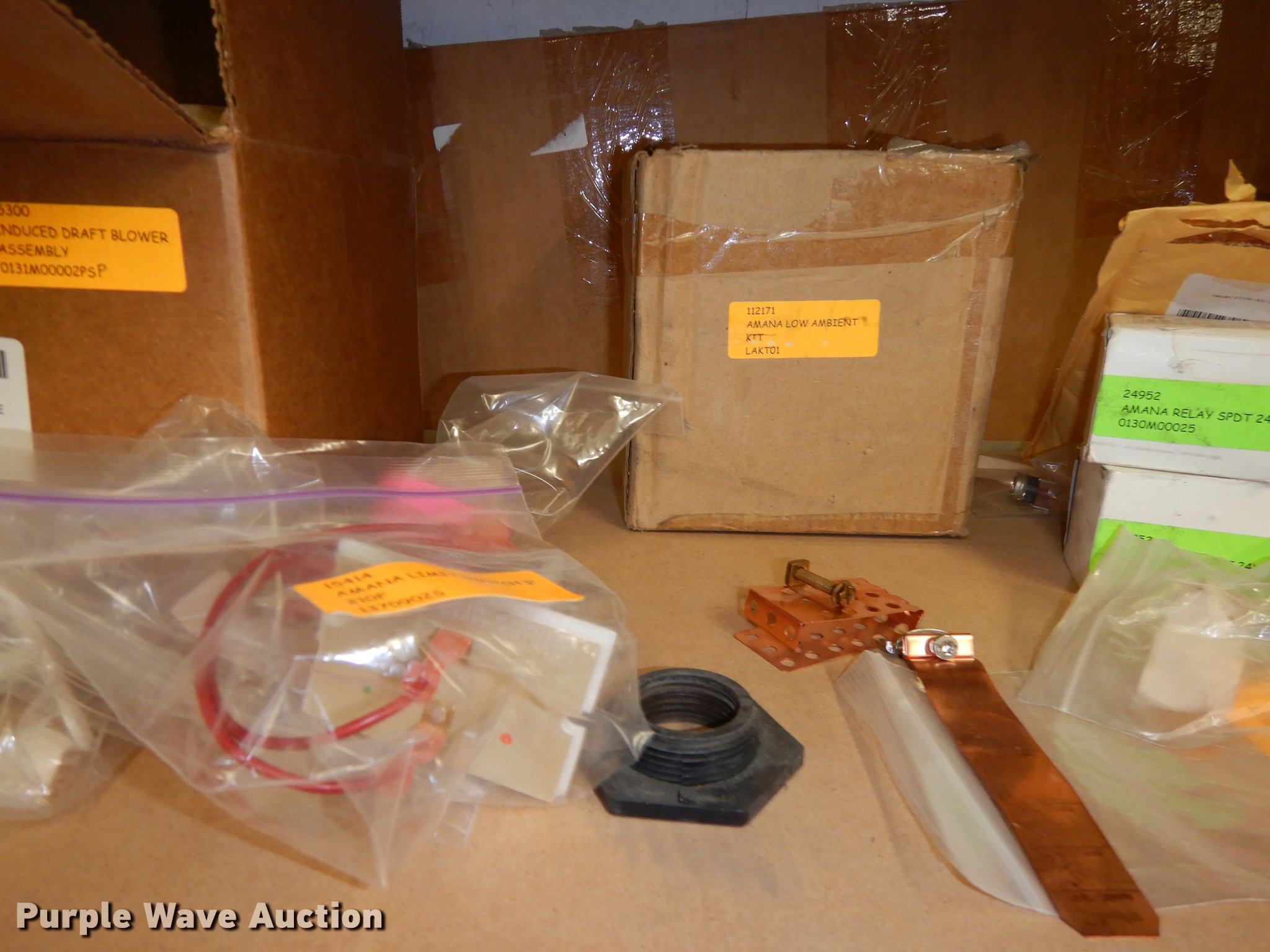 Purple Wave is selling a used Building Materials in Kansas. This item is a Amana replacement parts with the following: Blowers, Inducer motor, Valve, Blower assemblies, Service motor, Motor, Reset switch, Fan switch, Sensors, Auxiliary switches, Circuit boards, Pilot controls, Control boards, PCB control, PCB air handler