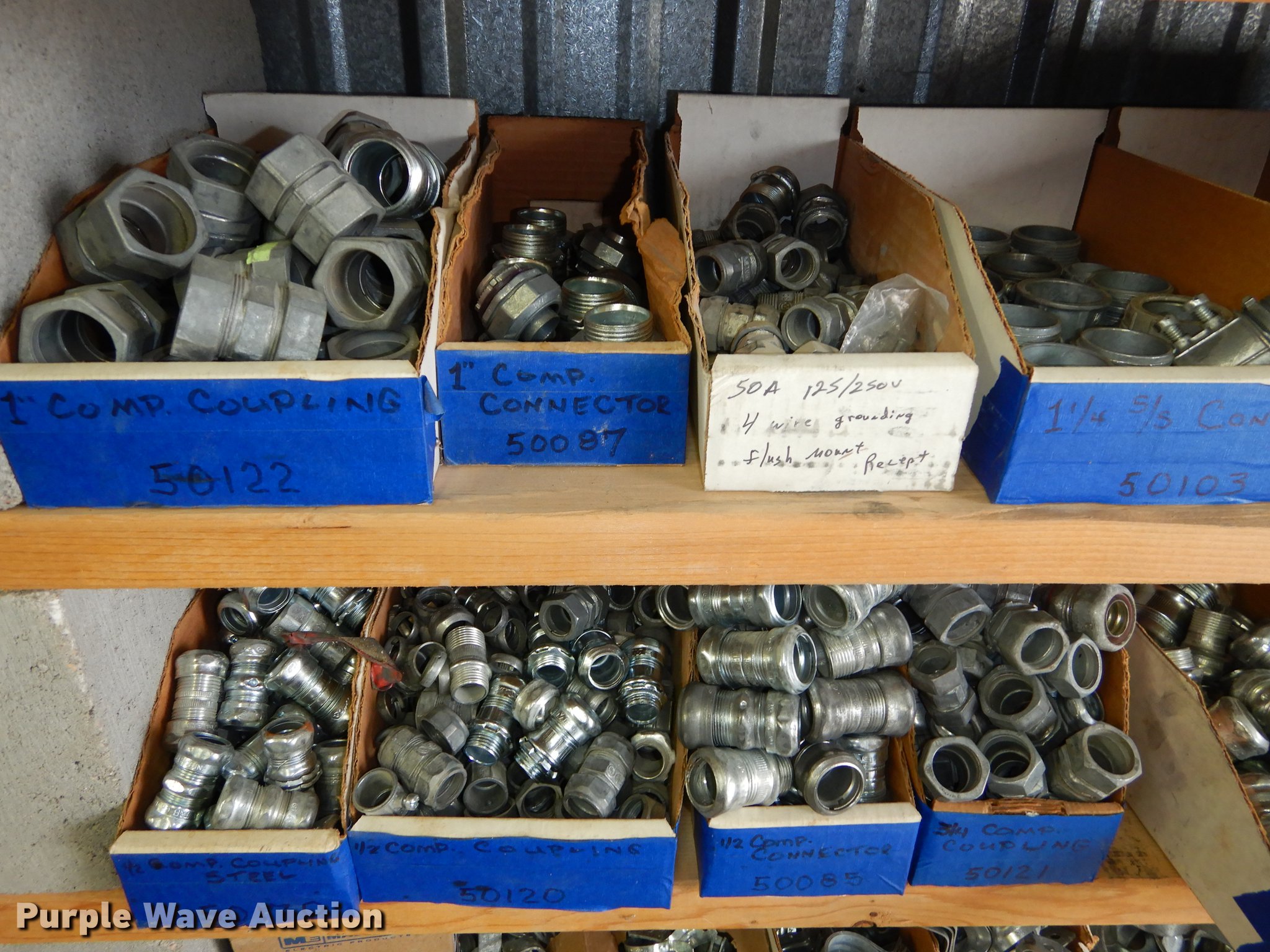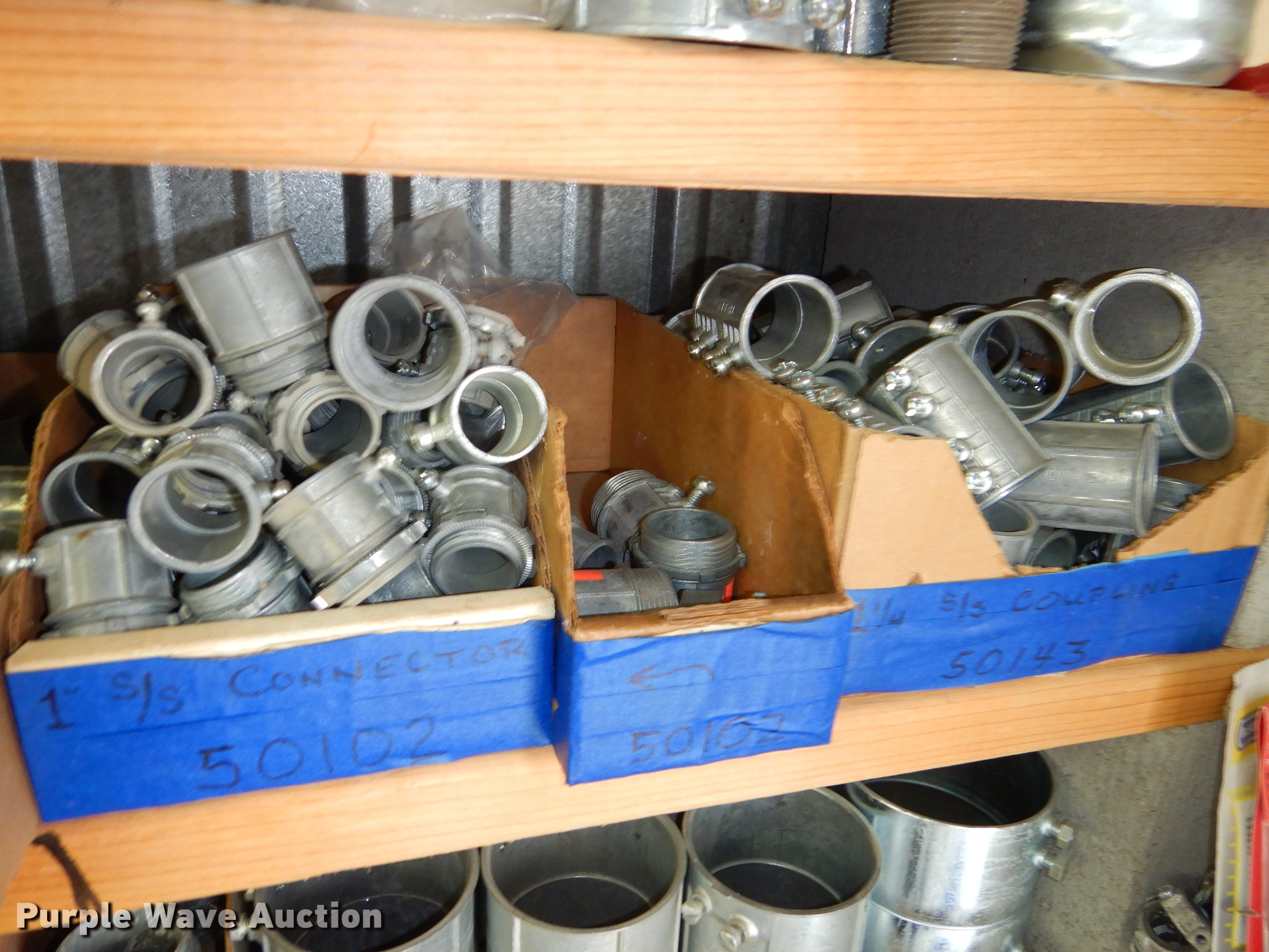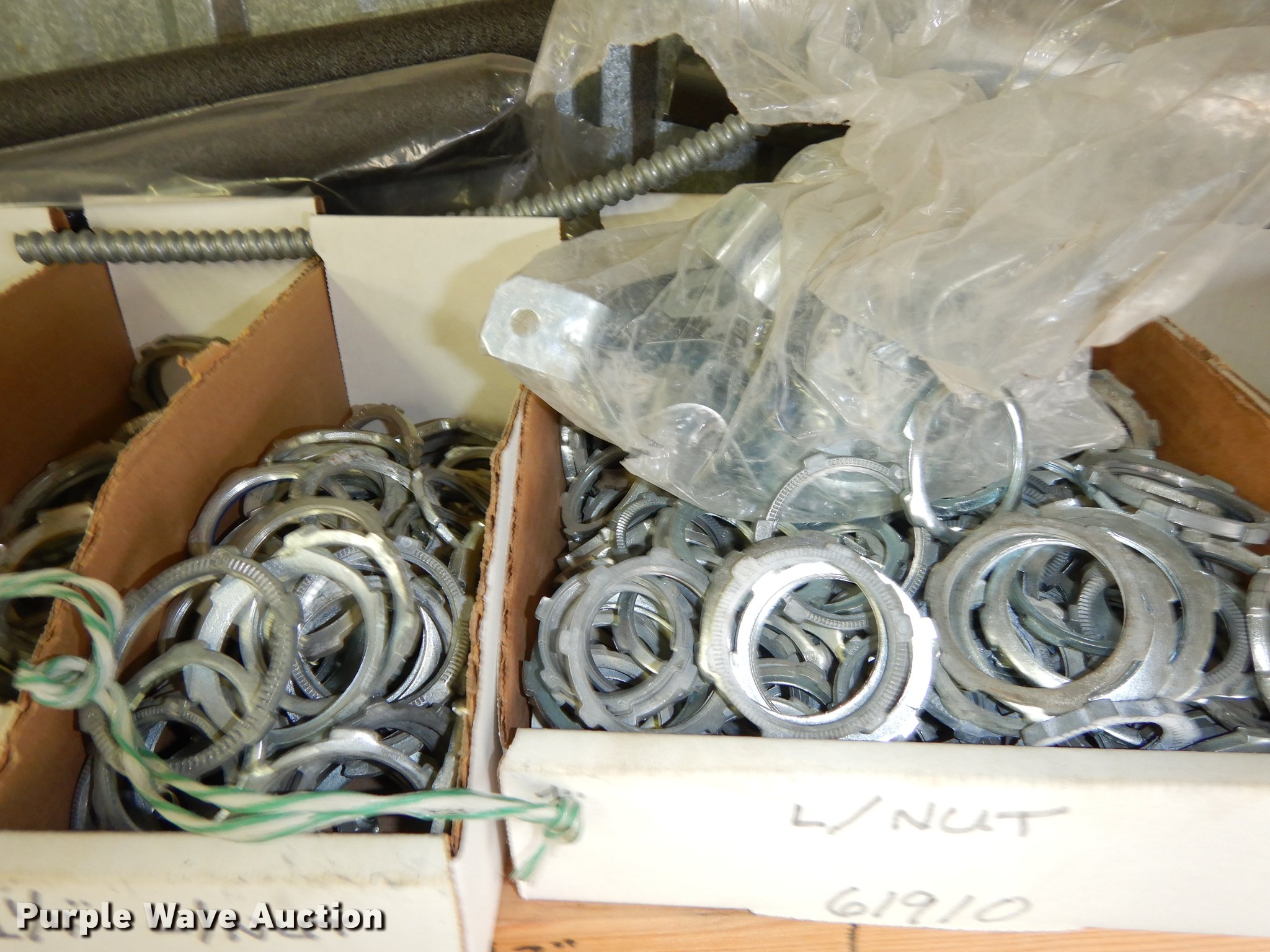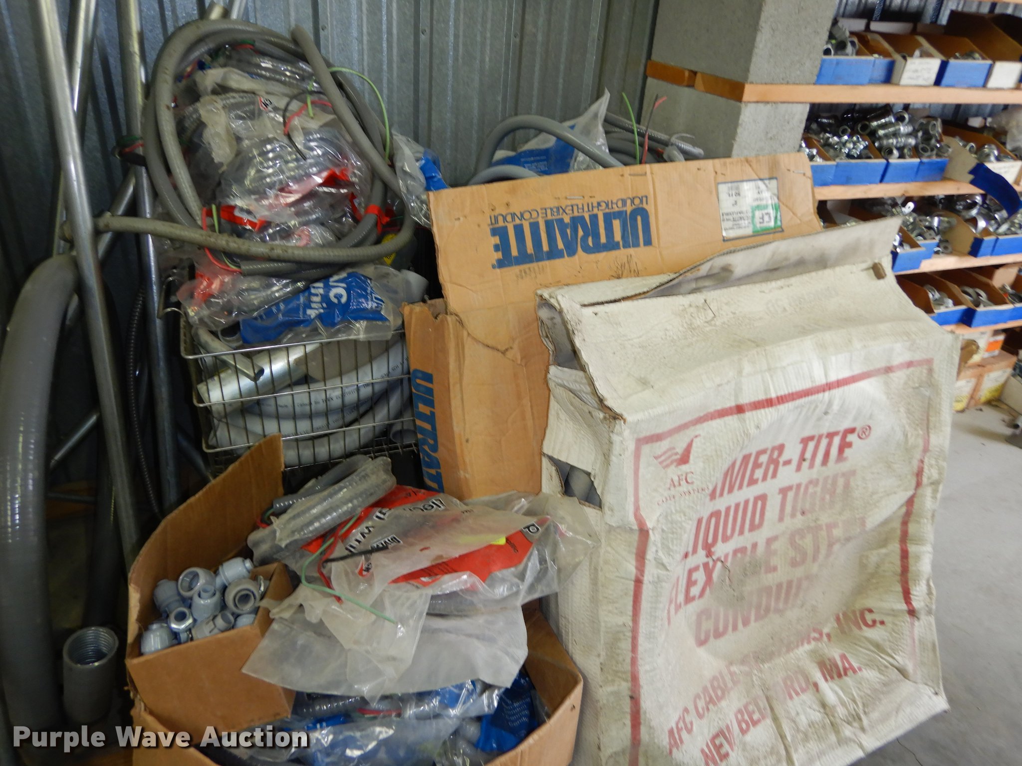 Purple Wave is selling a used Building Materials in Kansas. This item is a Electrical supplies with the following: Couplers, Splices, Straps, Bushings, Metal clad tubing, Whips, Sweeps and more