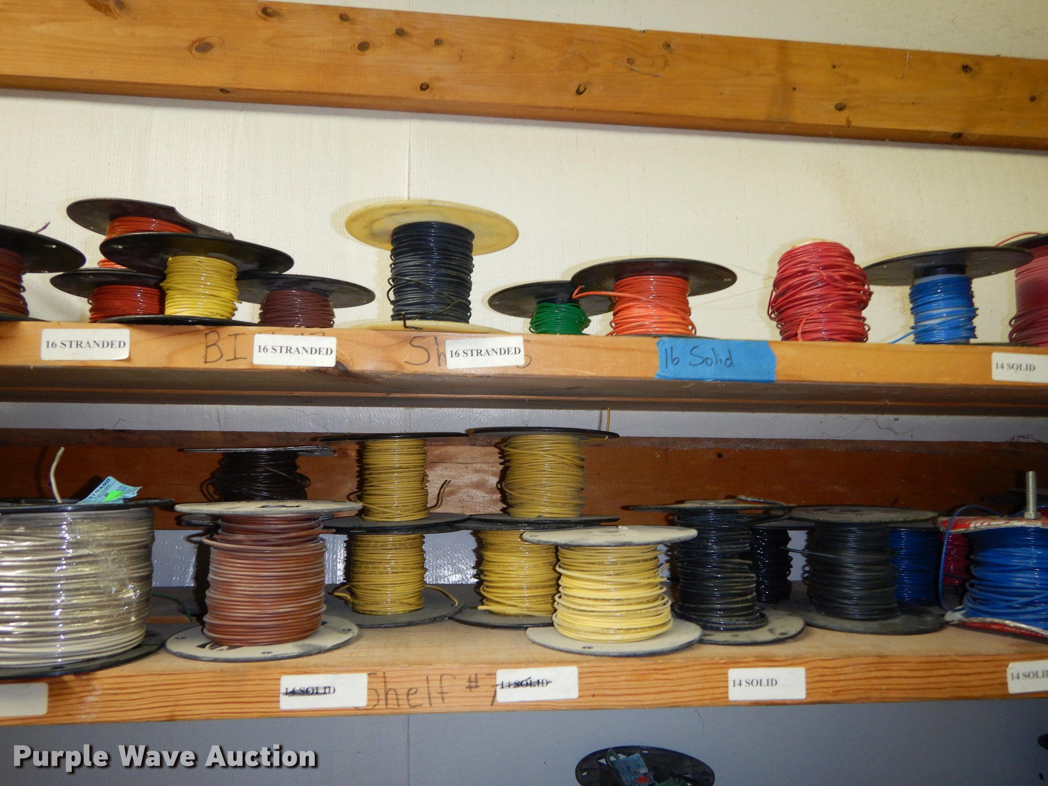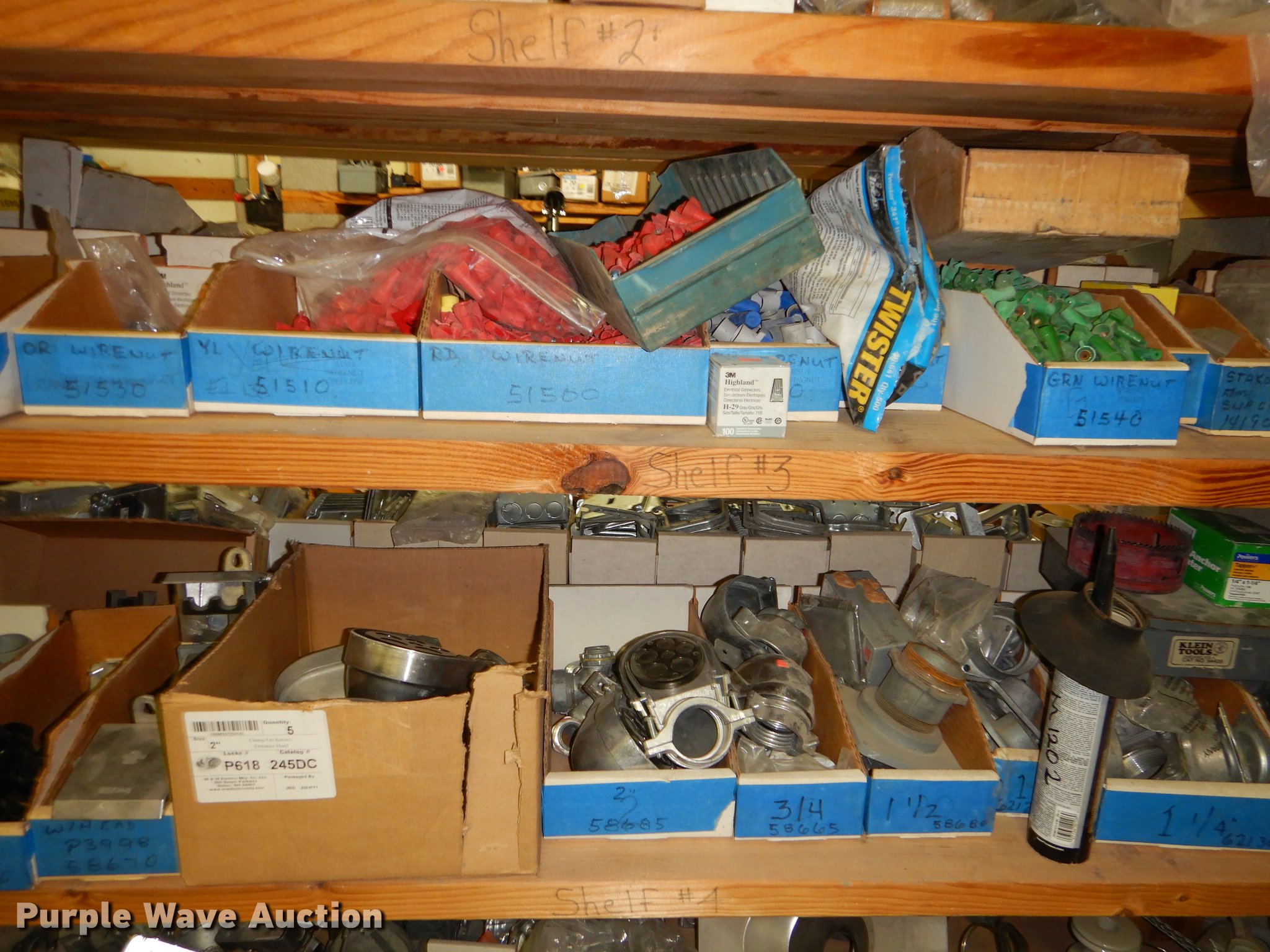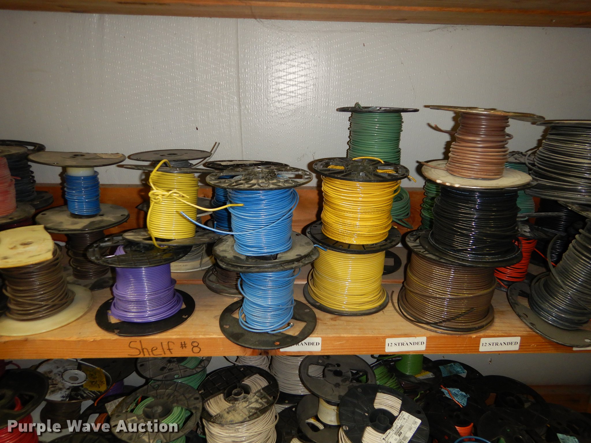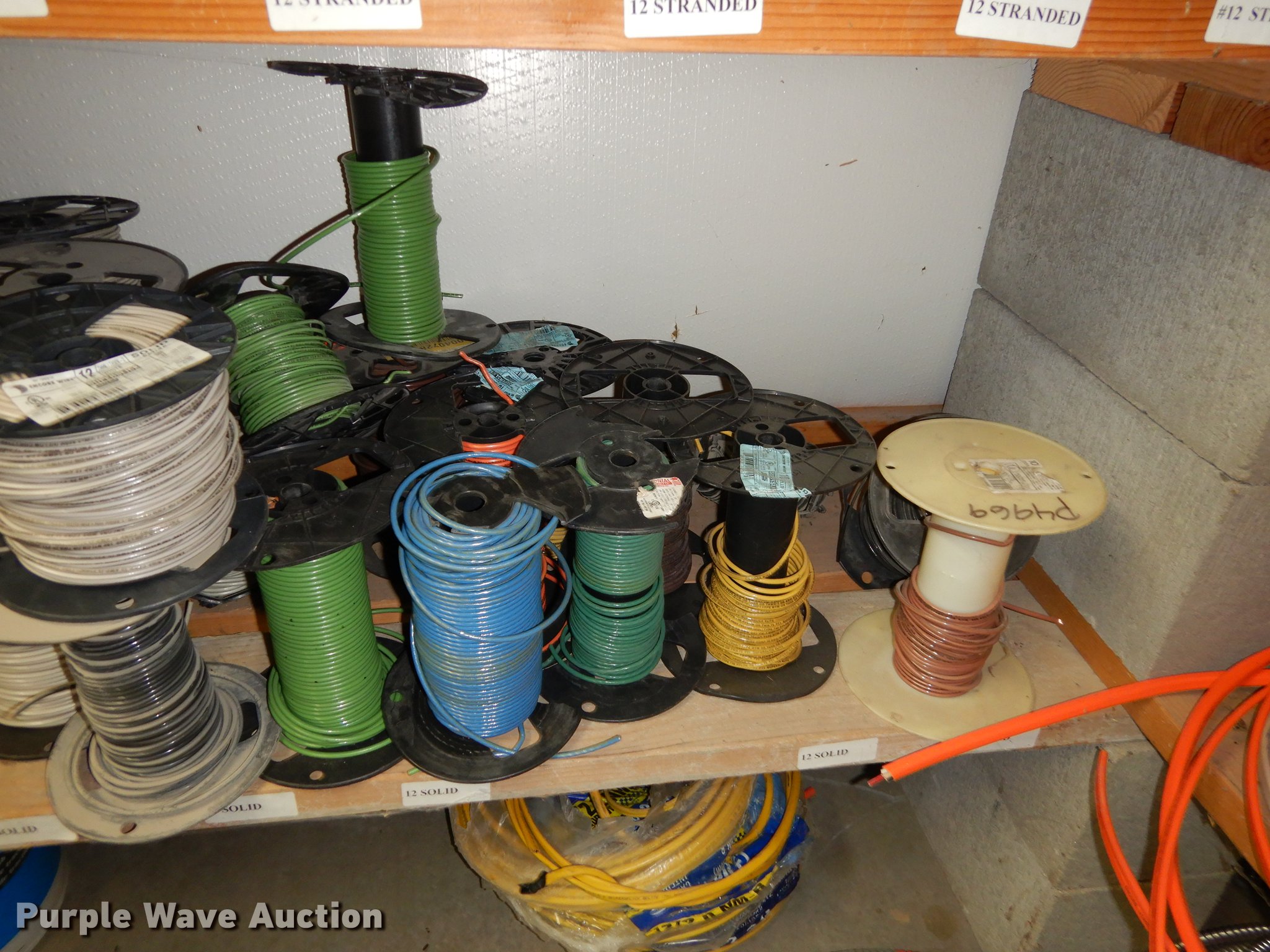 Purple Wave is selling a used Building Materials in Kansas. This item is a Electrical supplies with the following: Ground clamps, Wire pigtail connectors, Insulators, Lubricant, Wire, Romax, Water proof PVC couplers, Metal clad wire, Box connectors, Rolls of caution tape, Circuit breakers, New in box