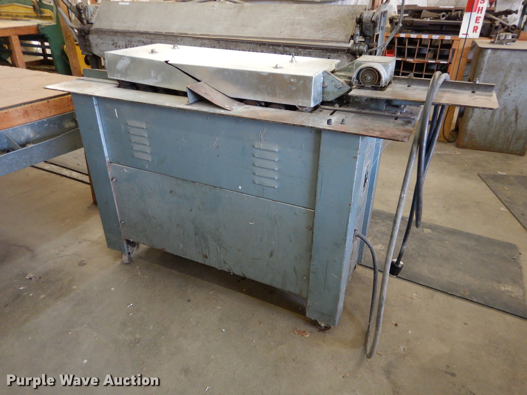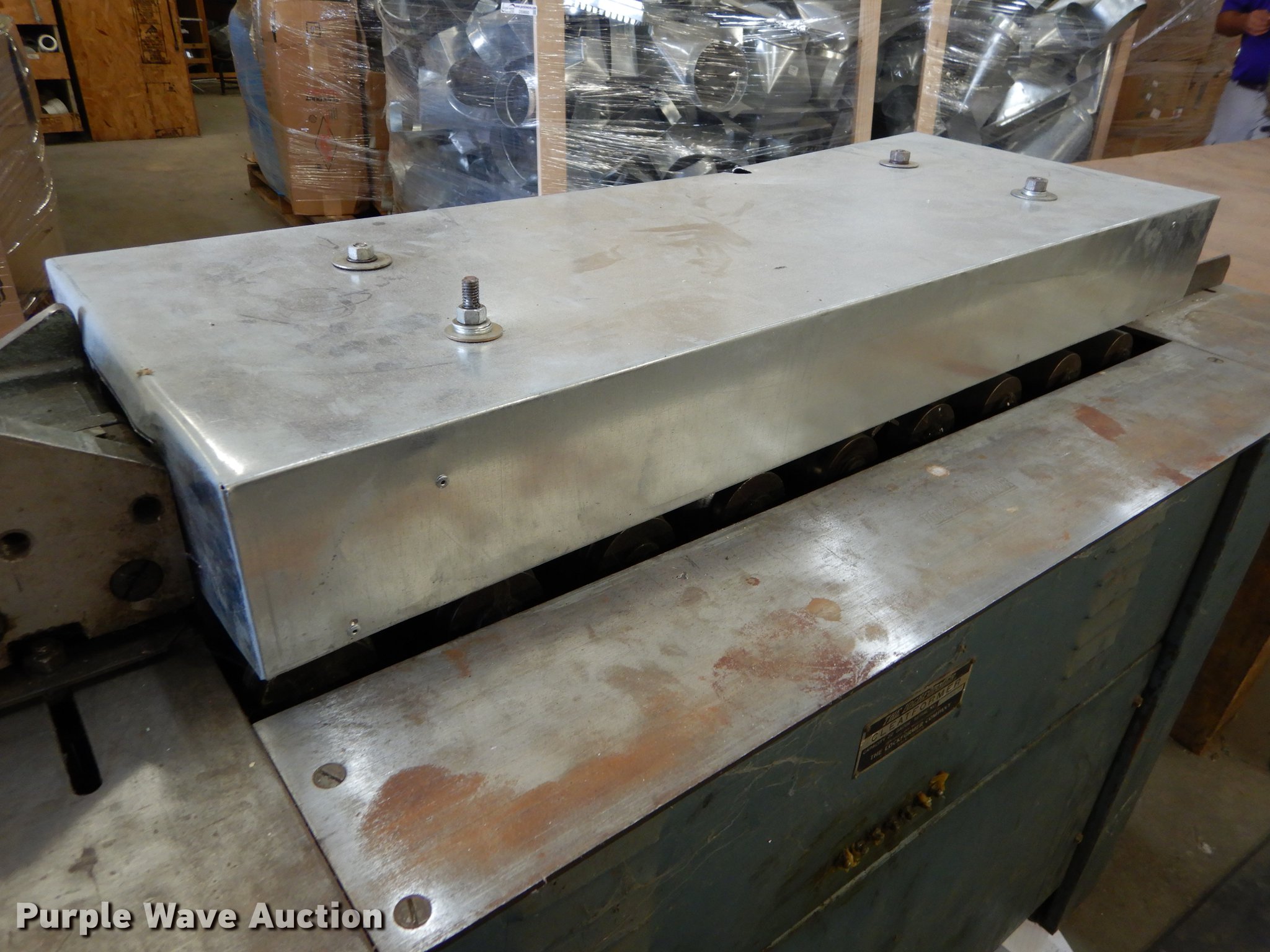 Purple Wave is selling a used Tools in Kansas. This item is a The Lockformer Company cleatformer with the following: 66.5" x 22" x 41", Three phase, 22 gauge capacity, Pittsburgh S straps and drive straps capable, Serial C11560