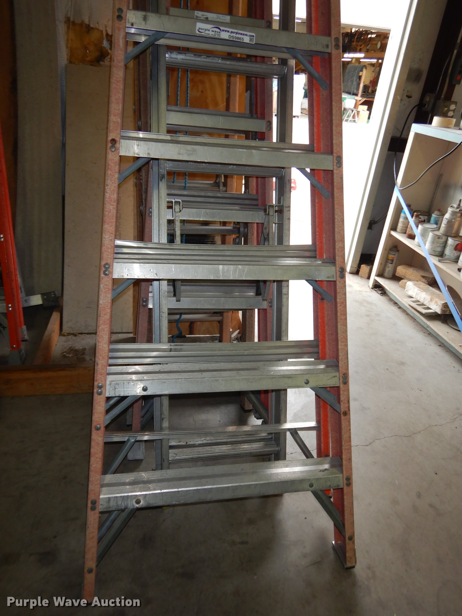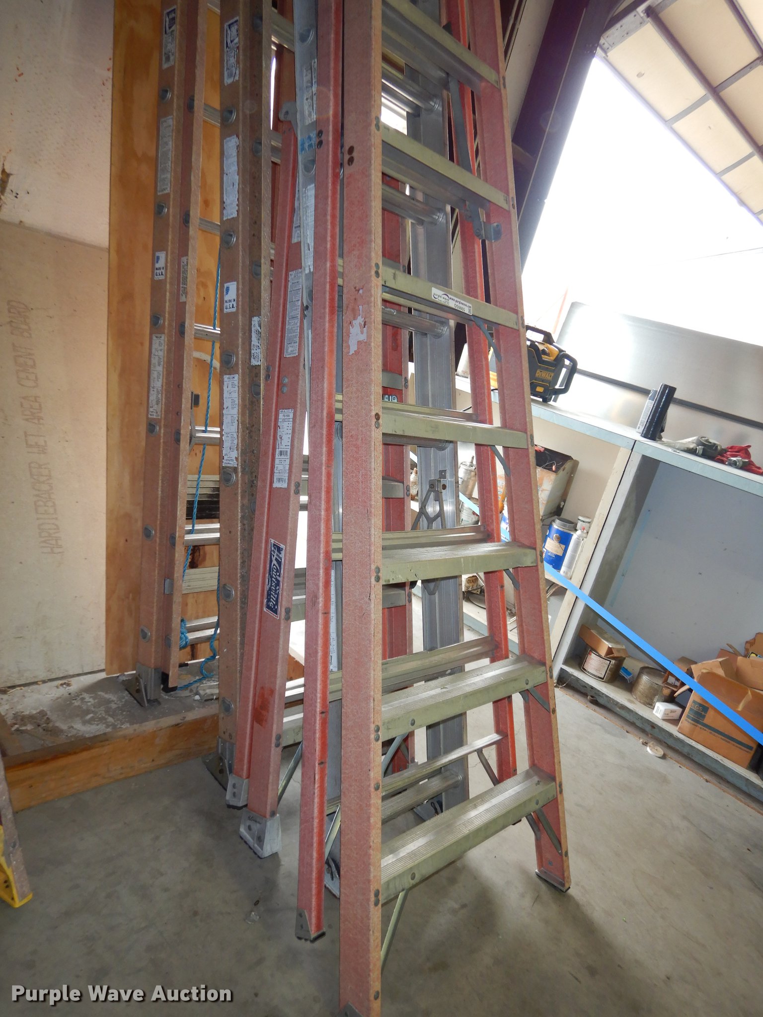 Purple Wave is selling a used Tools in Kansas. This item is a (5) ladders with the following: (2) 24' fiberglass extension ladders, 16' aluminum extension ladder, 6' fiberglass step ladder, 12' fiberglass step ladder