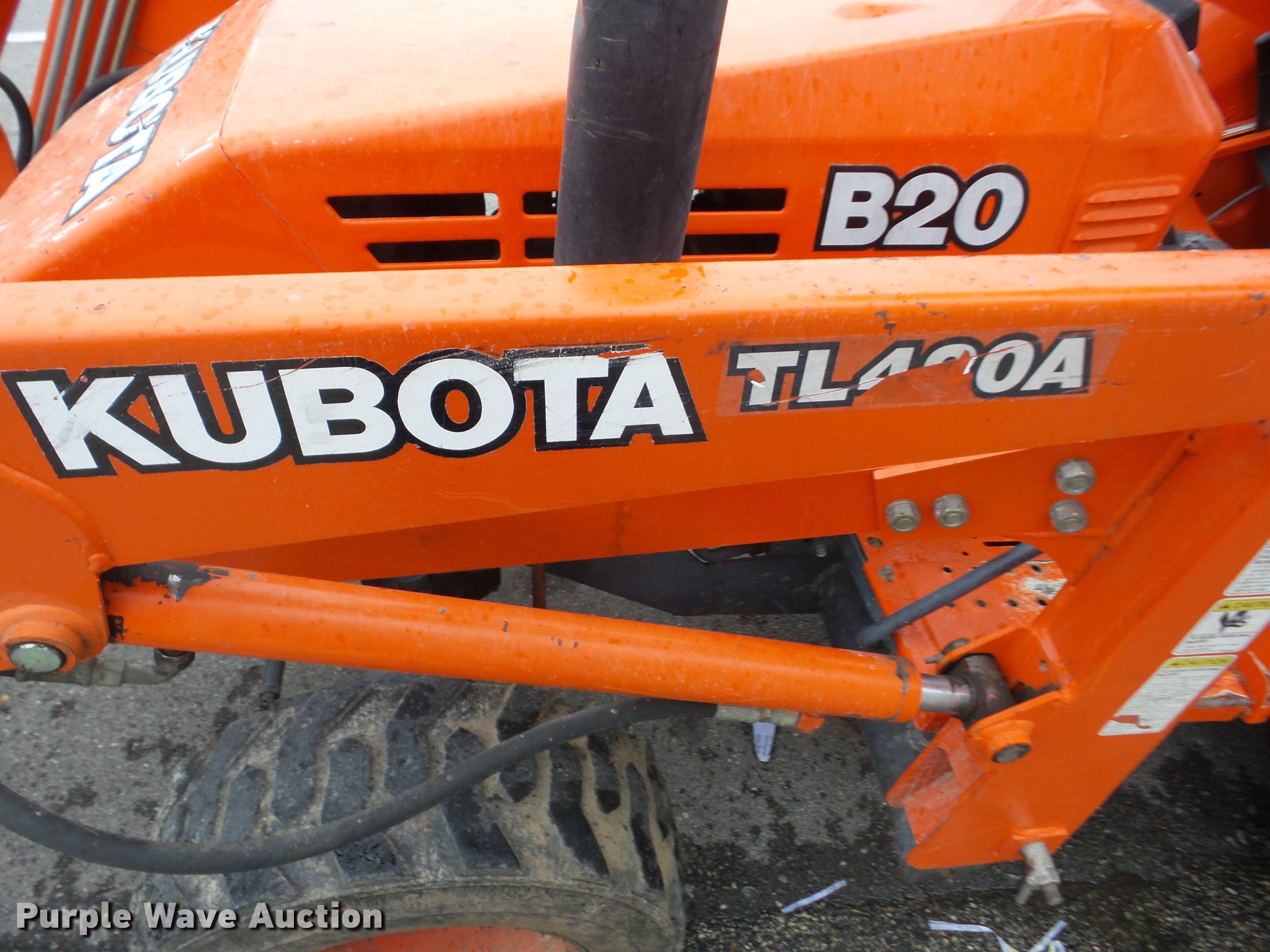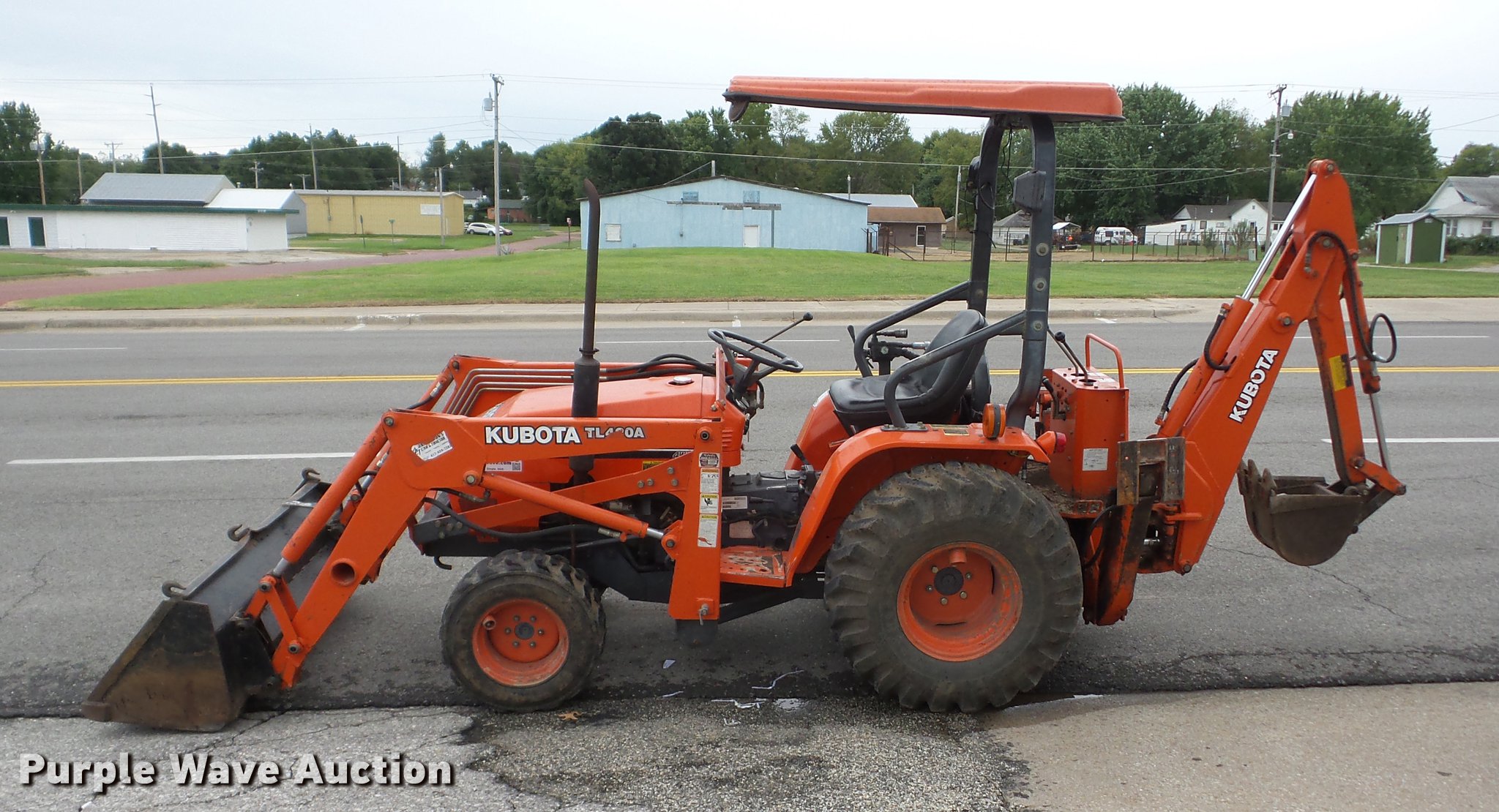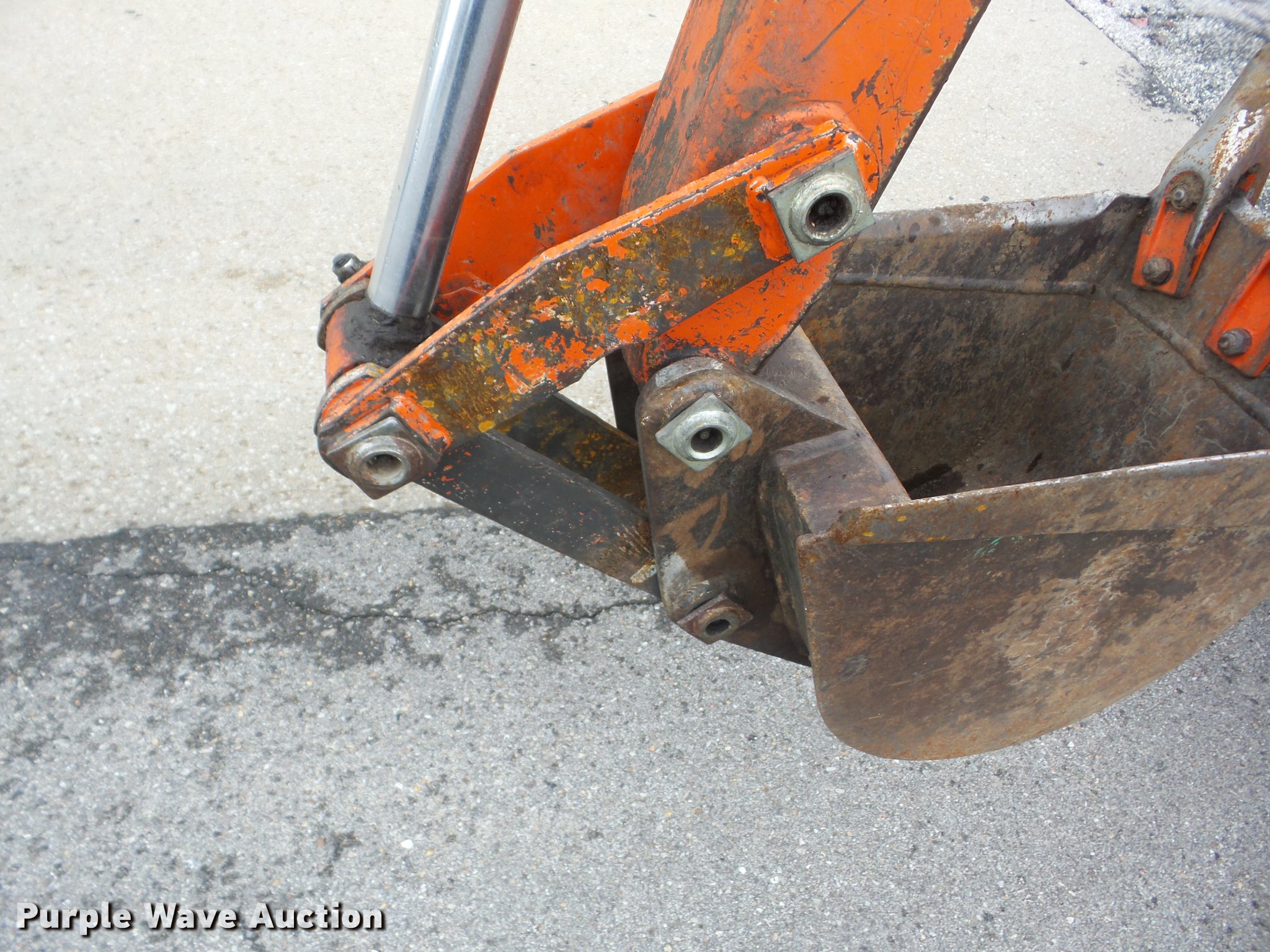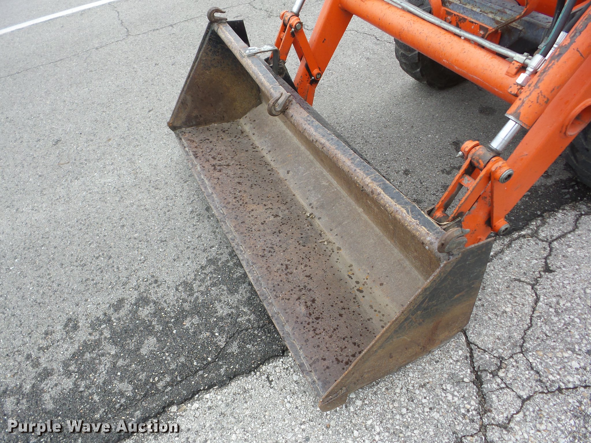 Purple Wave is selling a used Tractor in Kansas. This item is a Kubota B20 MFWD tractor with the following: 254 PTO hours on meter, Kubota D950-A-T three cylinder diesel engine, 20 HP, Hydrostatic transmission, 3F-3R gears, Four wheel drive, Differential lock, OROPS, Kubota TL420A loader, 55"W bucket, Joystick controls, Kubota 5550 trencher attachment, 4' boom length, 6" cutting width, 8" diameter end idler, Dirt teeth, Hydraulic crumber arch, 5"W crumber shoe, Serial 11630191, Kubota BT750C backhoe, 12"W bucket, (3) teeth, Outriggers, Serial 60946, Three point, No arms, 540 PTO, Rear hydraulic remote set, 23x8.50-12 front tires, 12.4-16 rear tires, Serial 71072