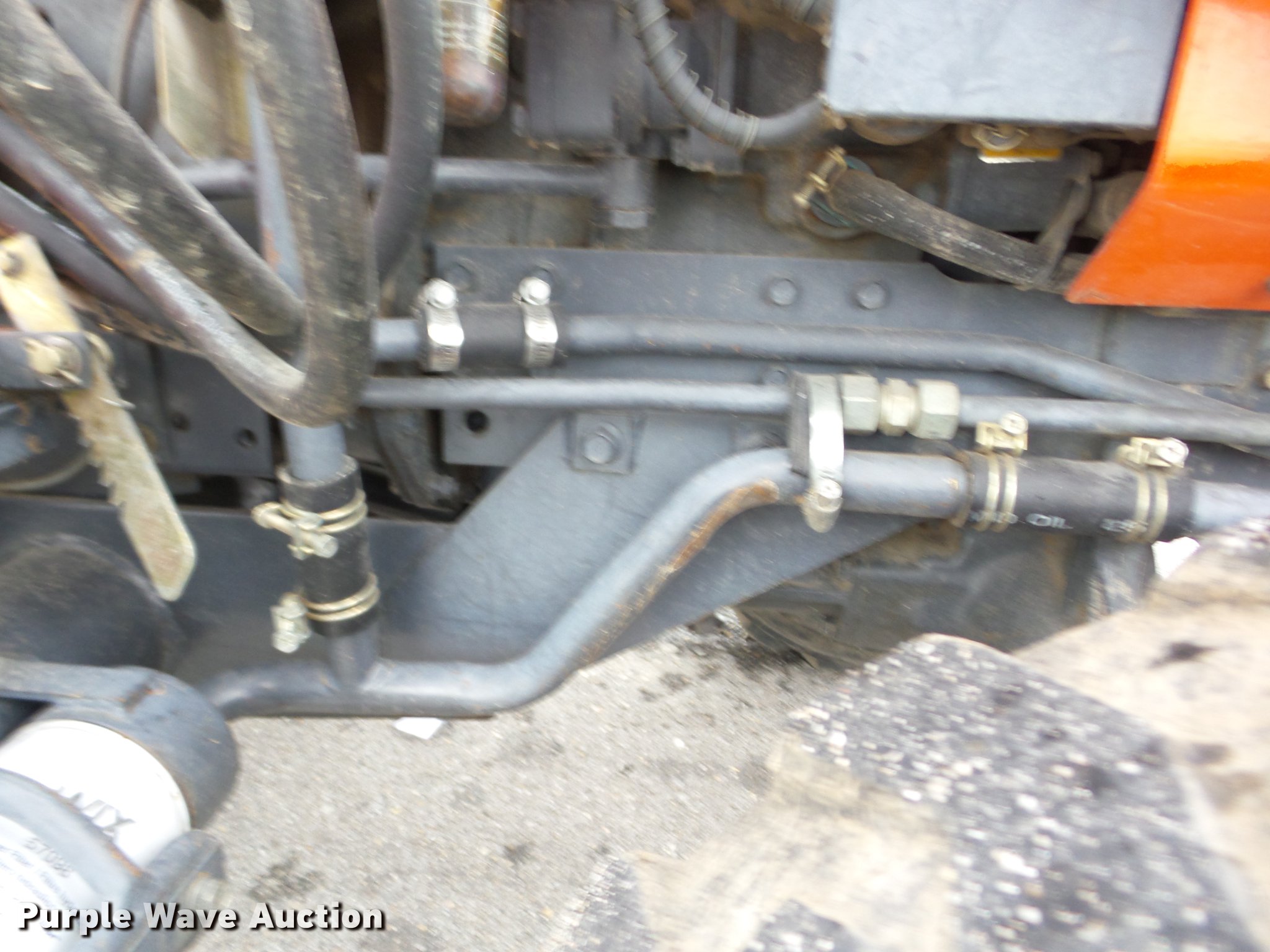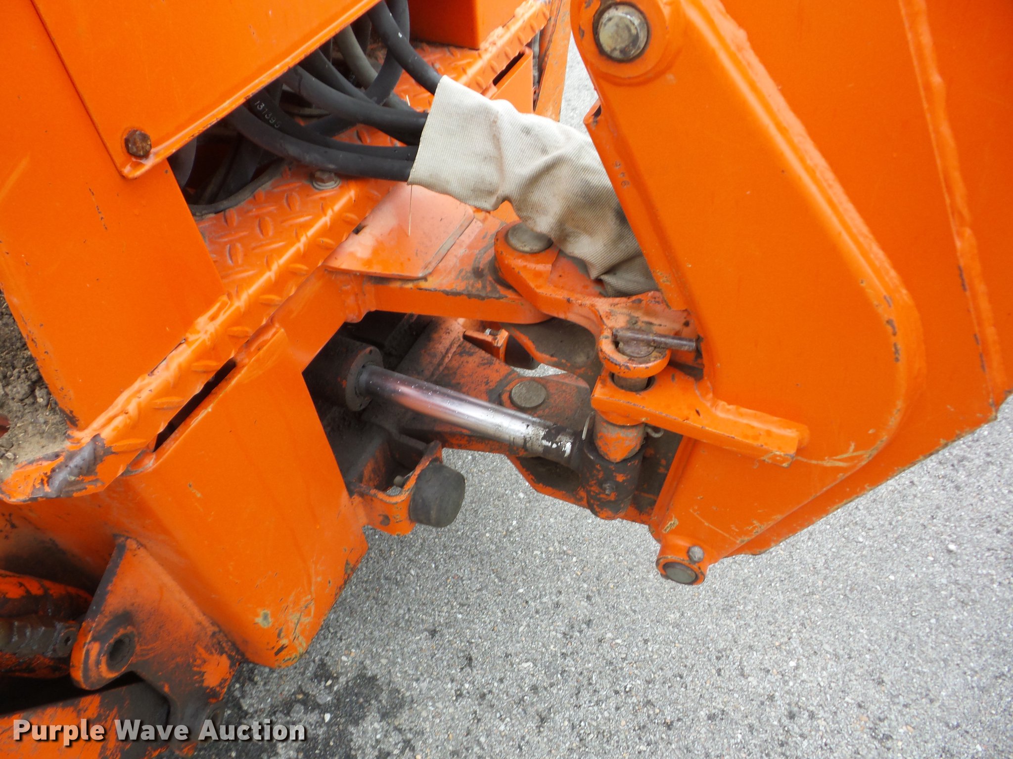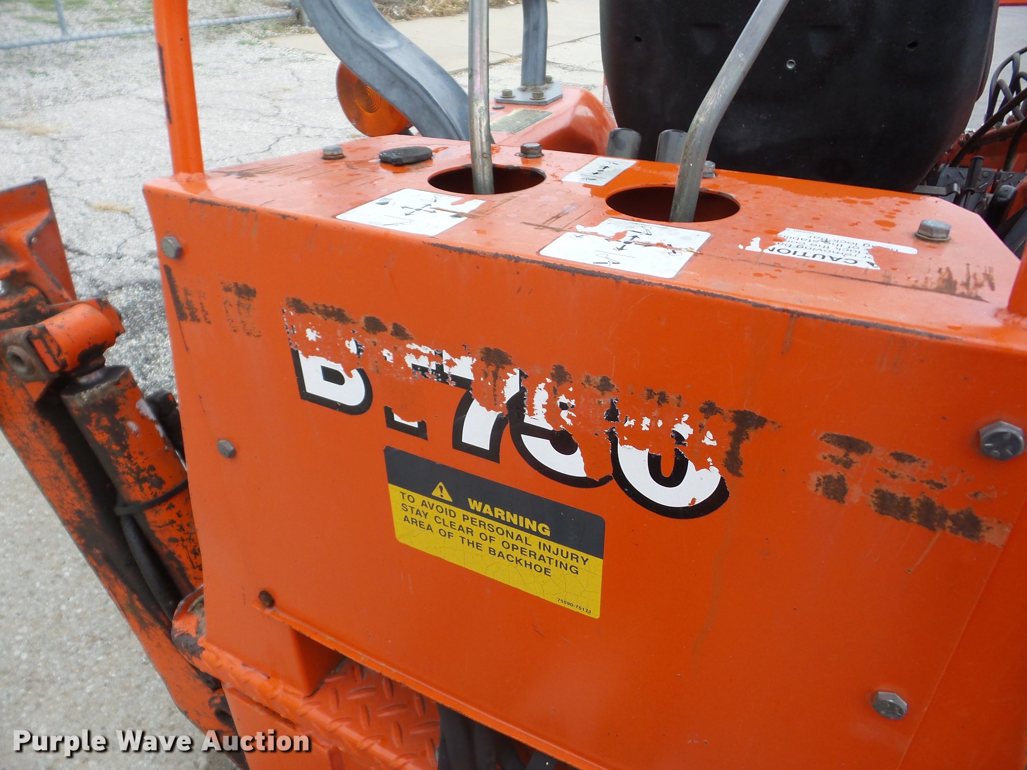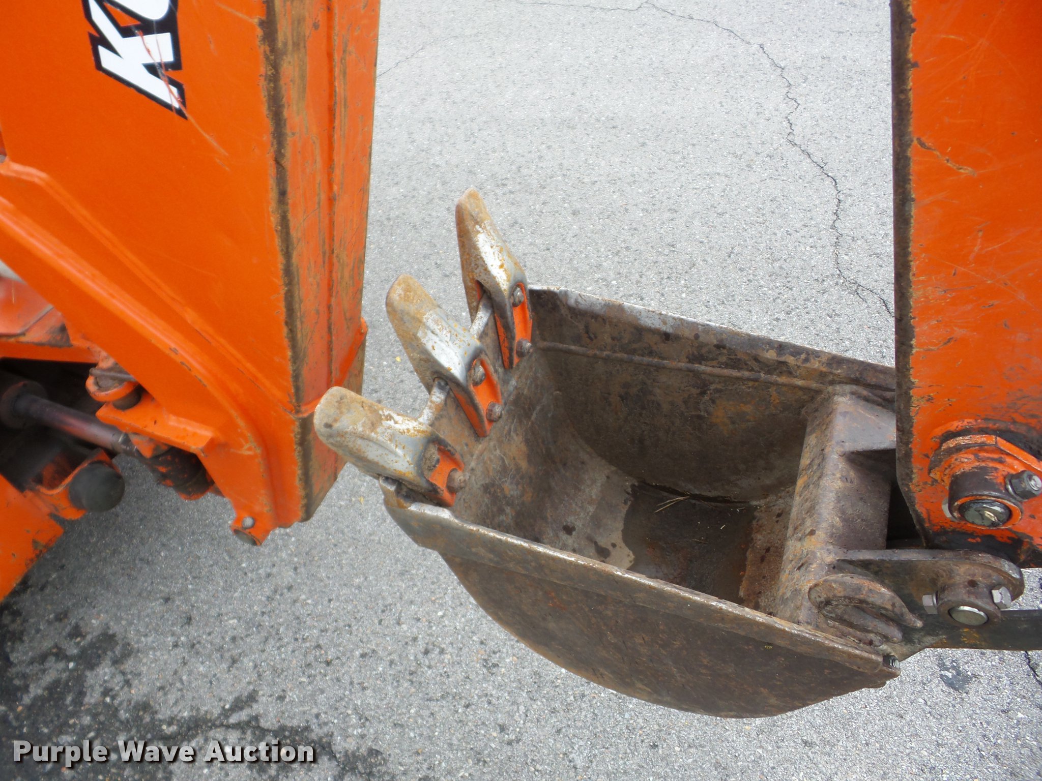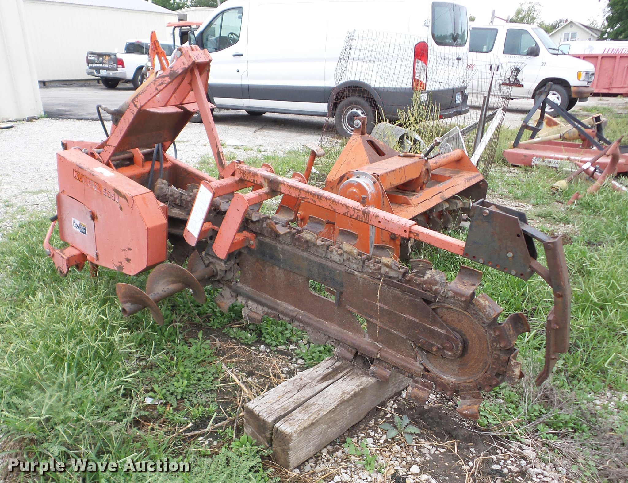 Purple Wave is selling a used Tractor in Kansas. This item is a Kubota B20 MFWD tractor with the following: 254 PTO hours on meter, Kubota D950-A-T three cylinder diesel engine, 20 HP, Hydrostatic transmission, 3F-3R gears, Four wheel drive, Differential lock, OROPS, Kubota TL420A loader, 55"W bucket, Joystick controls, Kubota 5550 trencher attachment, 4' boom length, 6" cutting width, 8" diameter end idler, Dirt teeth, Hydraulic crumber arch, 5"W crumber shoe, Serial 11630191, Kubota BT750C backhoe, 12"W bucket, (3) teeth, Outriggers, Serial 60946, Three point, No arms, 540 PTO, Rear hydraulic remote set, 23x8.50-12 front tires, 12.4-16 rear tires, Serial 71072