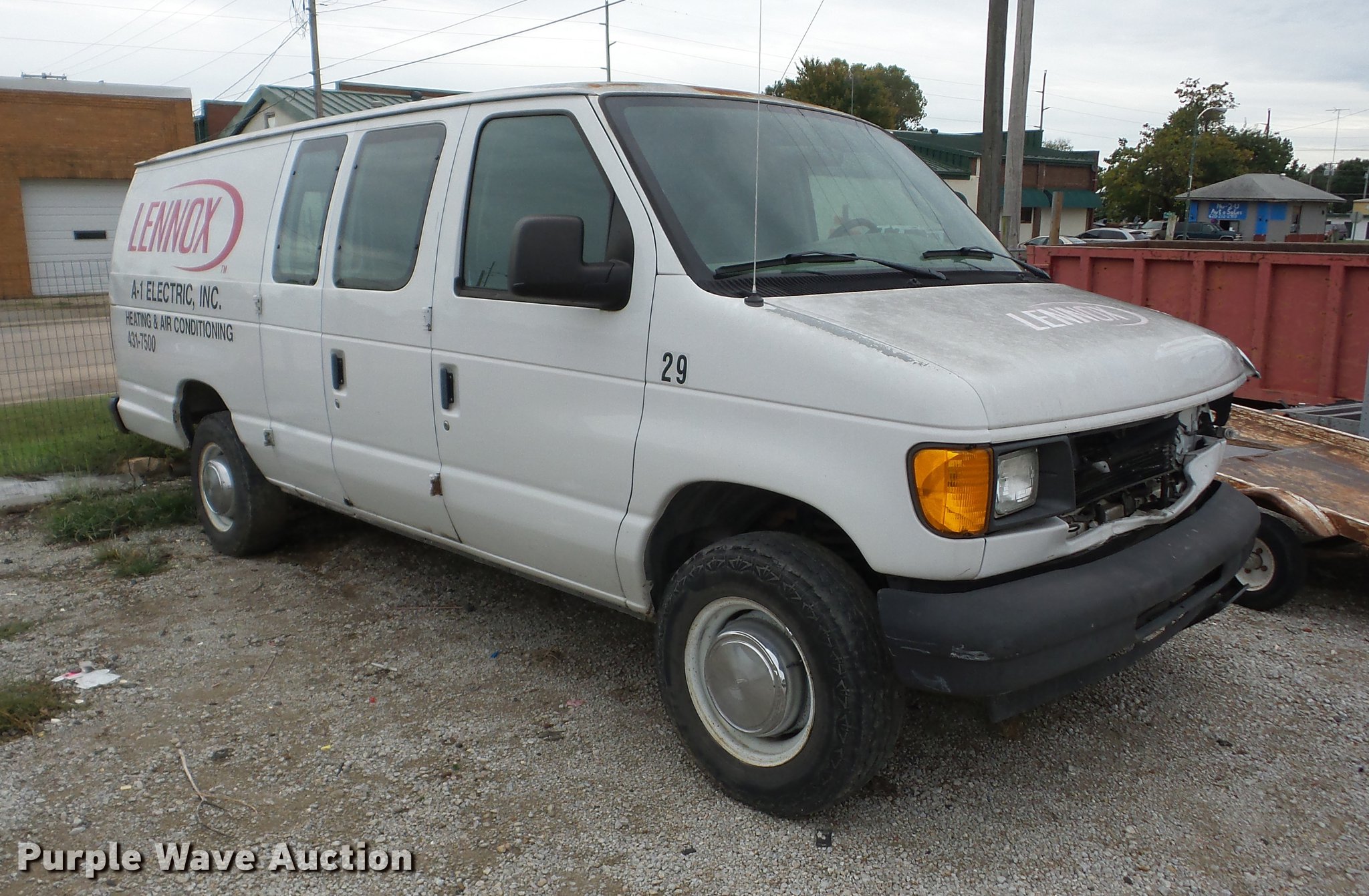 Purple Wave is selling a used 3/4 or 1 Ton Pickup or Van in Kansas. This item is a 2005 Ford E250 Extended van with the following: Unknown miles on odometer, 5.4L V8 SOHC 16V gas engine, Automatic transmission, AC and heat, Tilt, Cruise, AM/FM, Manual windows and locks, Vinyl interior, Trailer wiring, LT225/75R16 tires, Non-operational odometer, Possible oil cooler leak