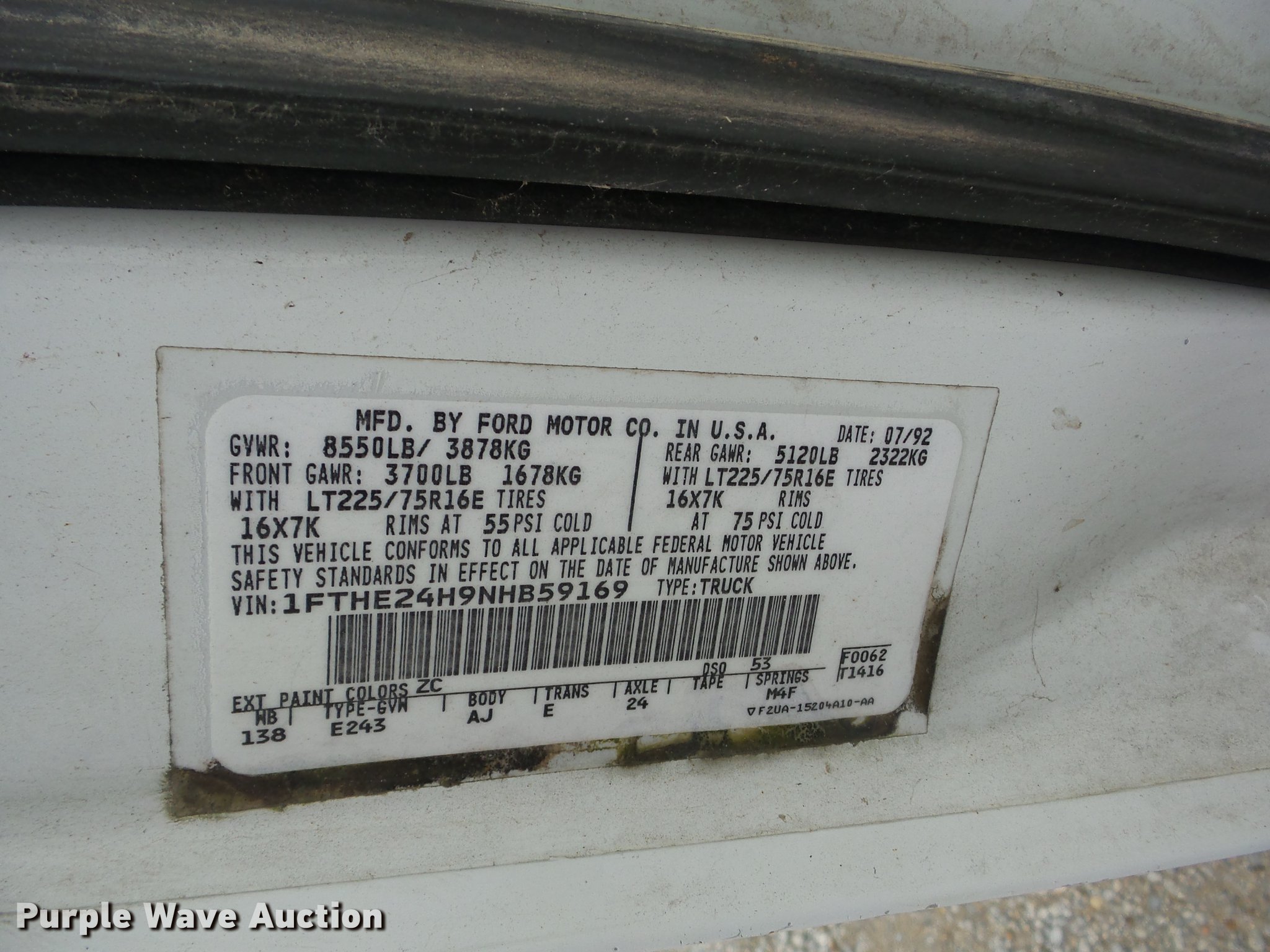 Purple Wave is selling a used 3/4 or 1 Ton Pickup or Van in Kansas. This item is a 1992 Ford Econoline E250 van with the following: 217,066 miles on odometer, 5.8L V8 OHV 16V gas engine, Automatic transmission, AC and heat, AM/FM, Manual windows and locks, Vinyl interior, LT225/75R16 tires, Unit# 25