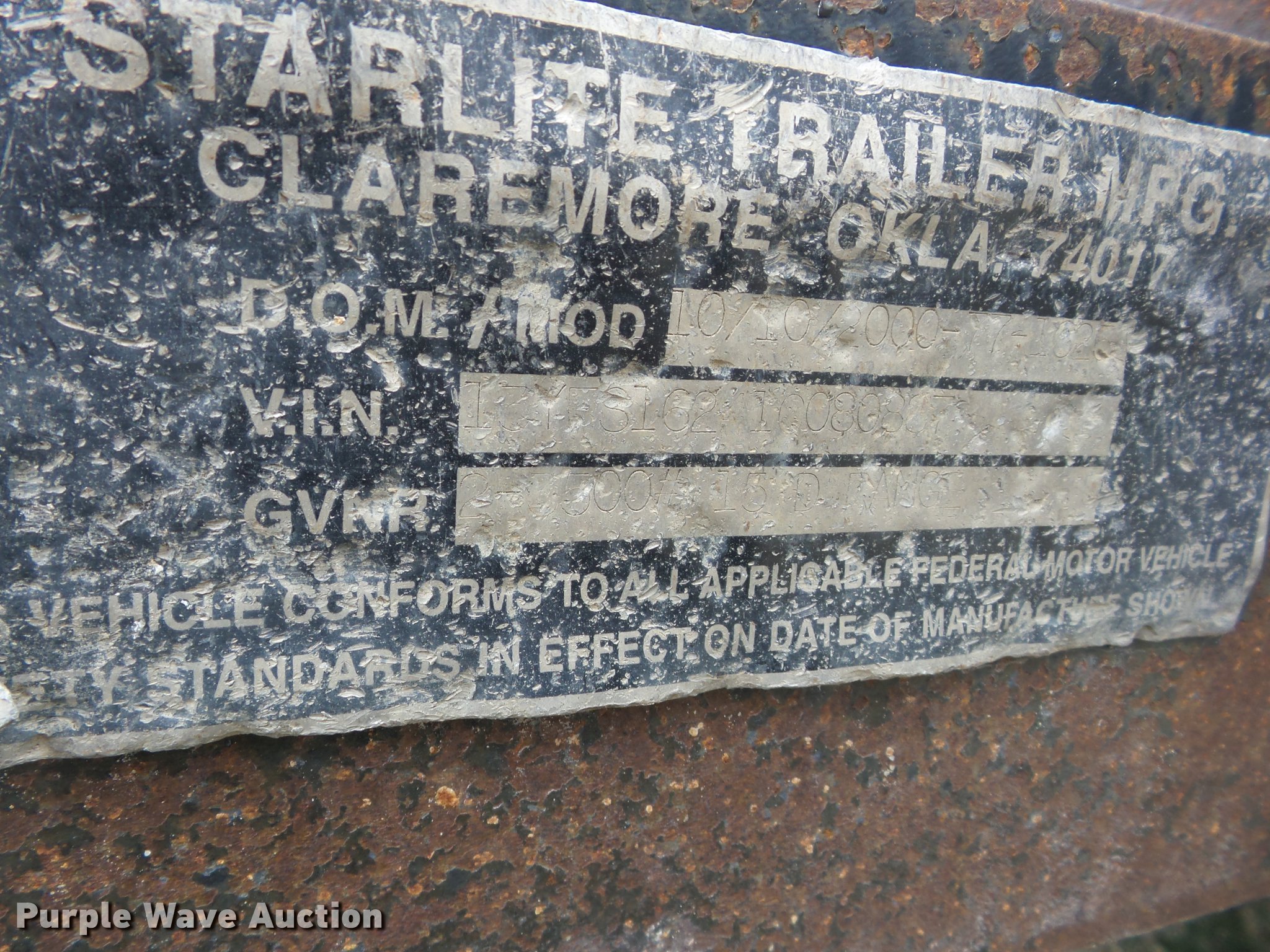 Purple Wave is selling a used Car or Utility Trailer in Kansas. This item is a 2001 Starlite 7-1023 utility trailer with the following: 16'L x 76"W, Wood deck, Ramps, 2" ball hitch, Single leg landing gear, Spring suspension, Hydraulic brakes, Tandem axle, Steel wheels, ST225/75R15 tires, GAWR 3,500 lbs