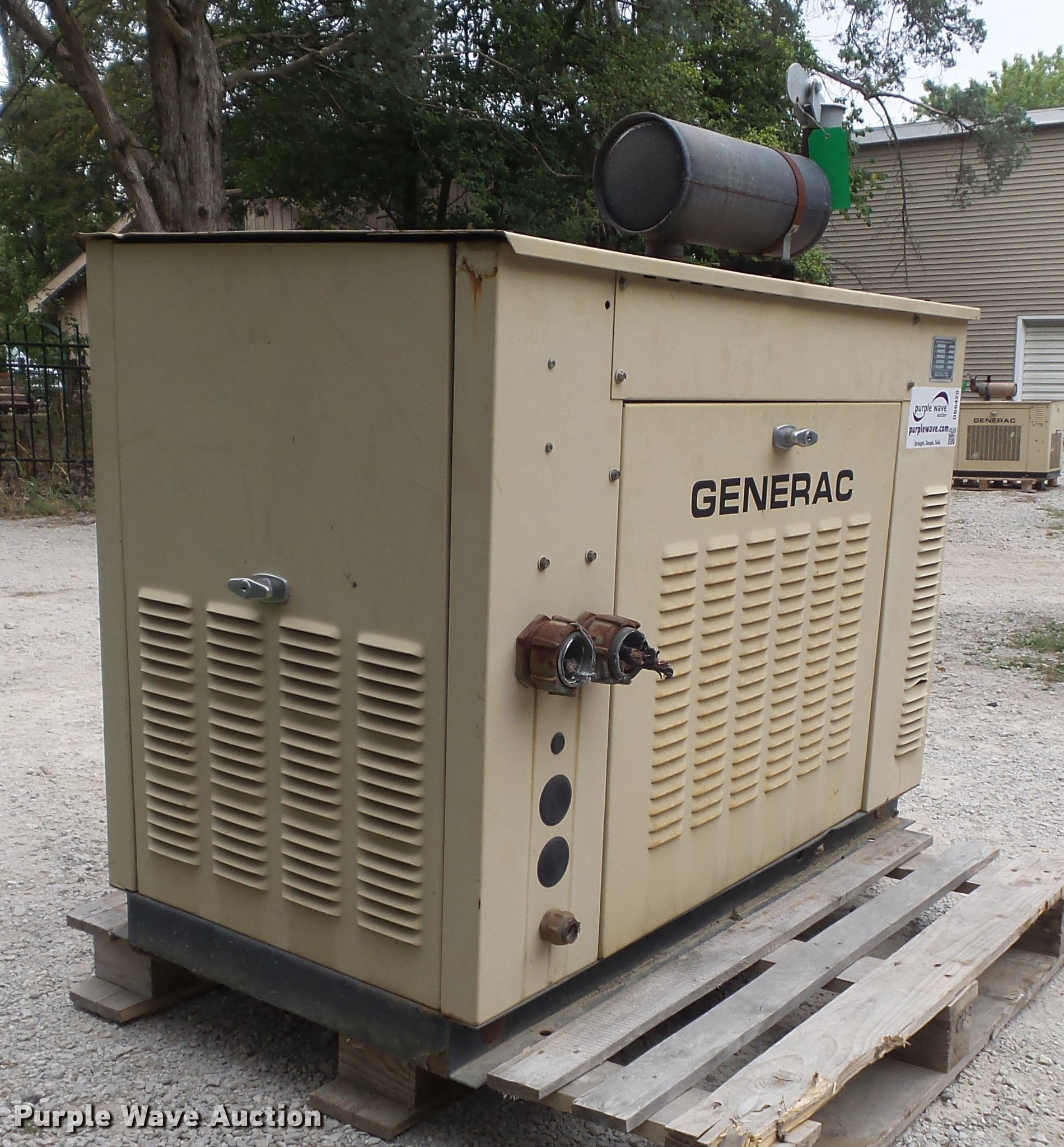 Purple Wave is selling a used Generator Set in Illinois. This item is a 1998 Generac 00753-4 generator with the following: 508 hours on meter, Fiat 97390 1.6L four cylinder propane engine, 3,600 RPM, Control panel, 25,000 watts, 25 kVA, 25 kW, Single phase, 120/240V, 104 continuous amps at 240V, 60 Hz, Built-in 200 amp automatic transfer switch, No engine antifreeze, No battery, Serial 3077386