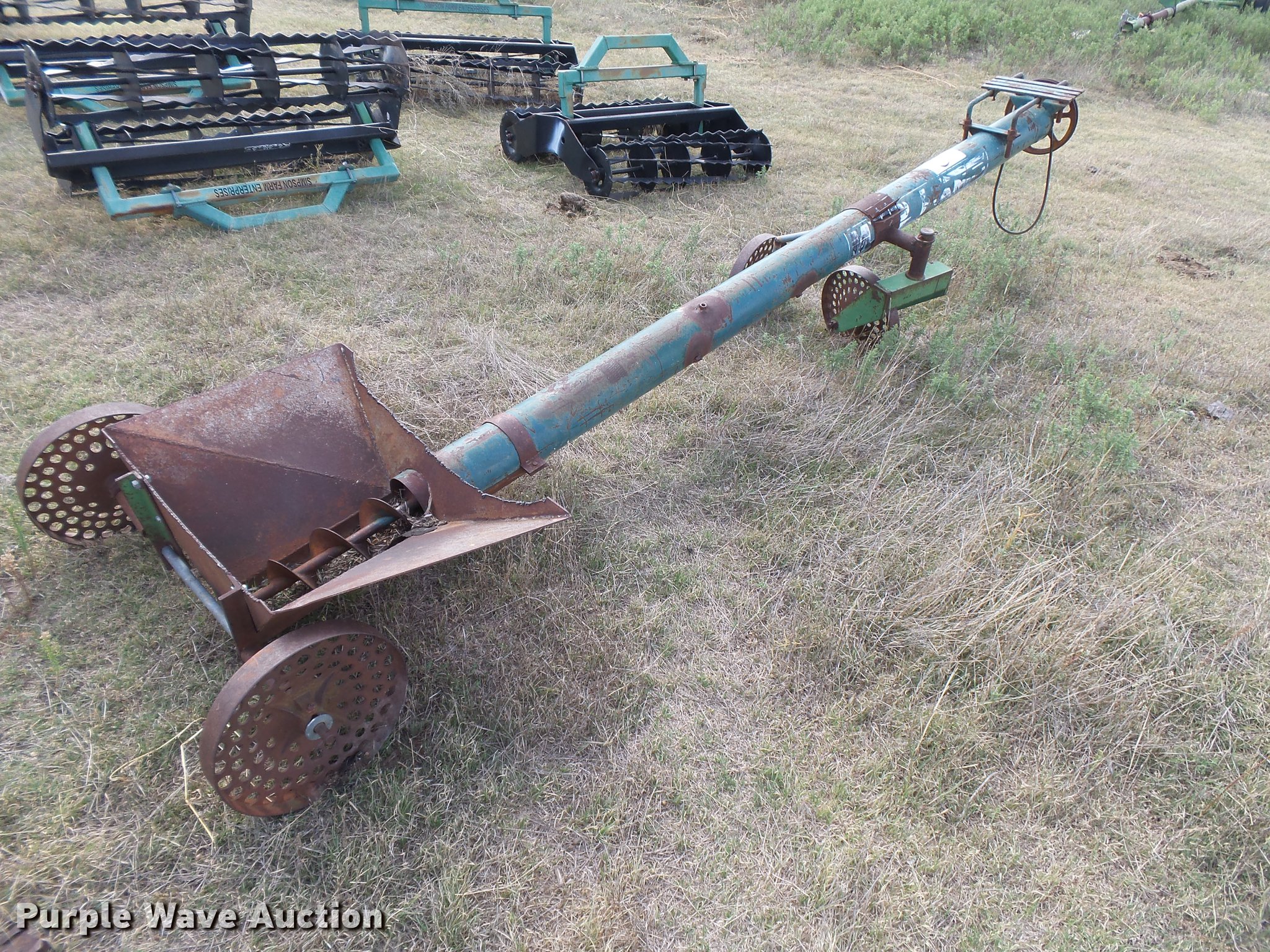 Purple Wave is selling a used Auger or Conveyor in Kansas. This item is a My-D Hand-D auger with the following: 11'L x 6" diameter, Hopper, No motor