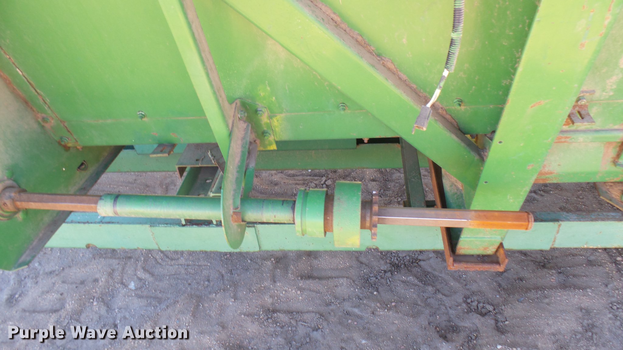 Purple Wave is selling a used Corn or Row Head in Kansas. This item is a John Deere 653A row crop head with the following: 15'W, Six rows, Steel snouts, Trailer not included