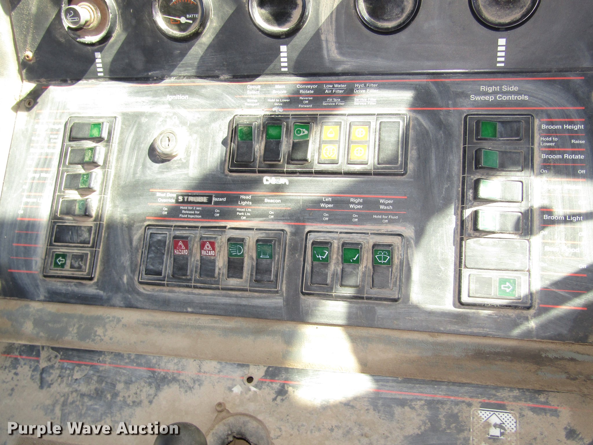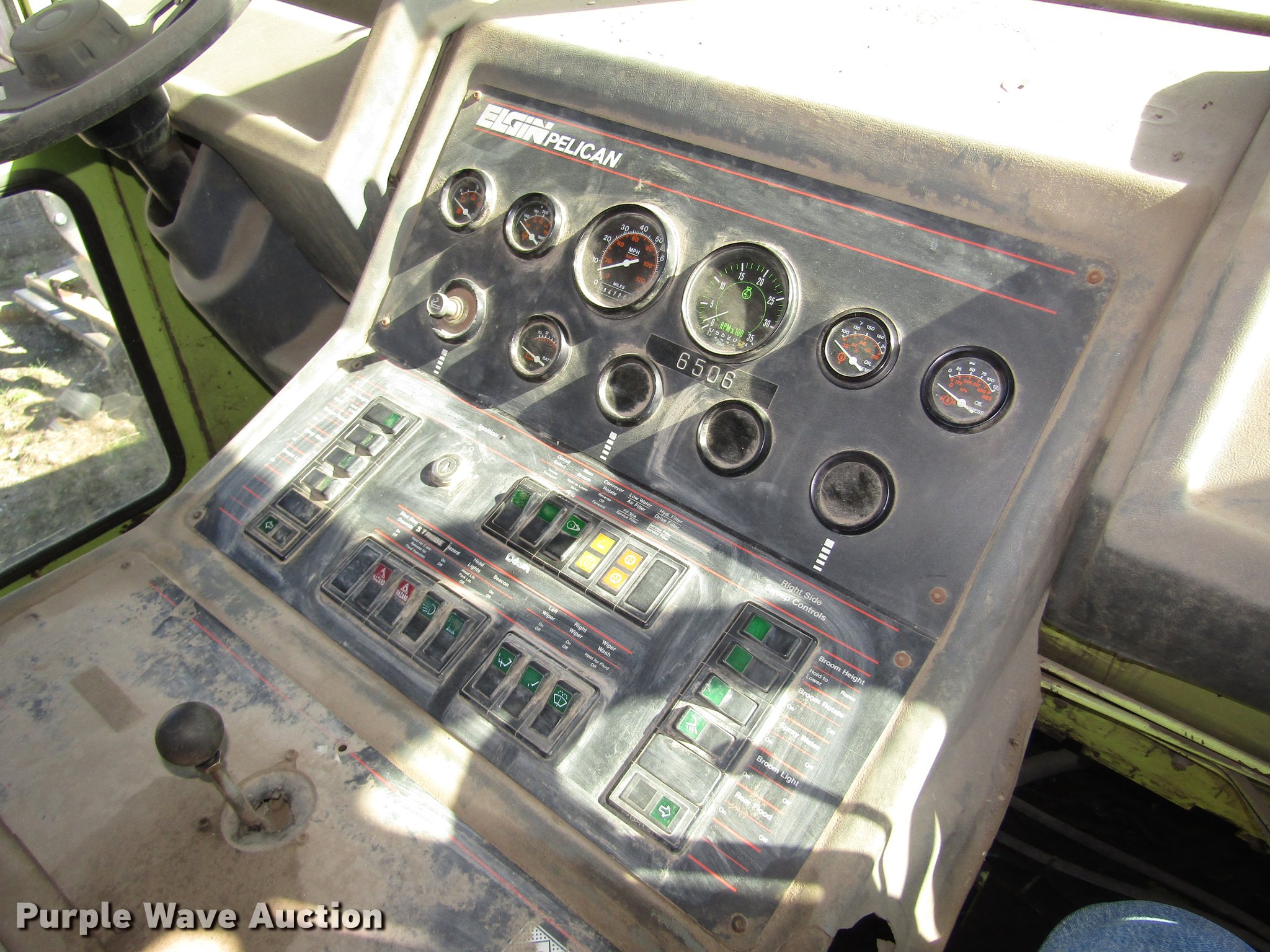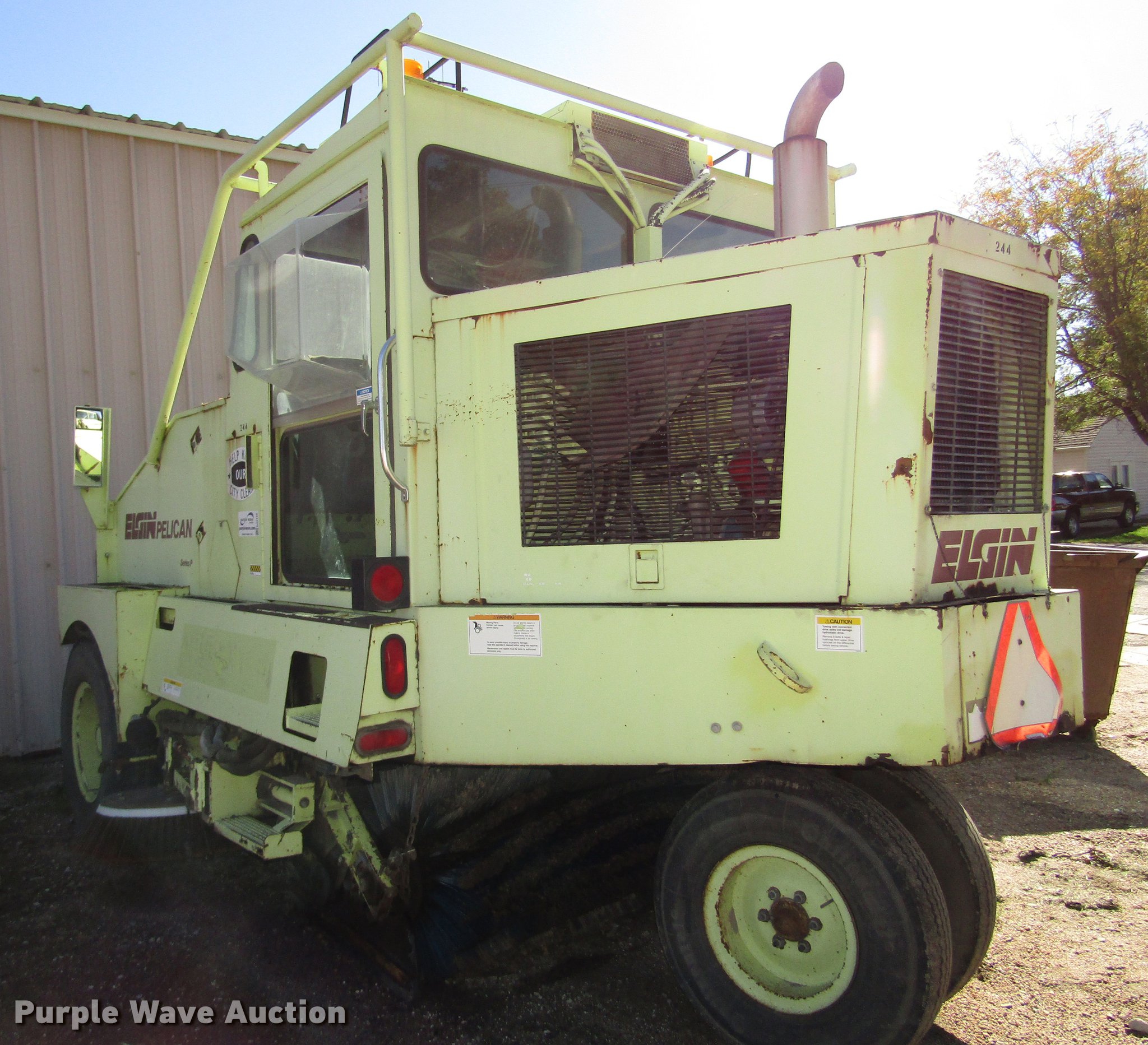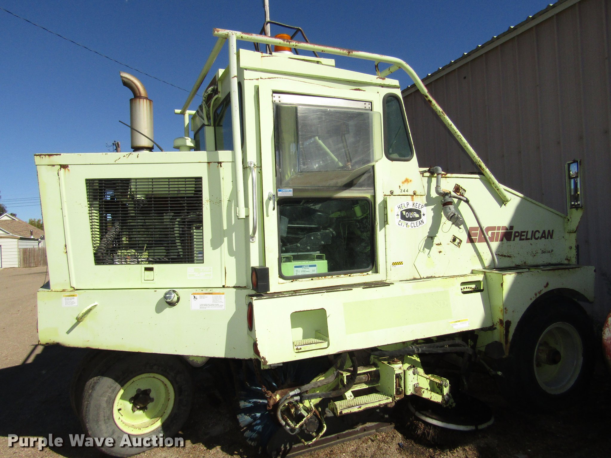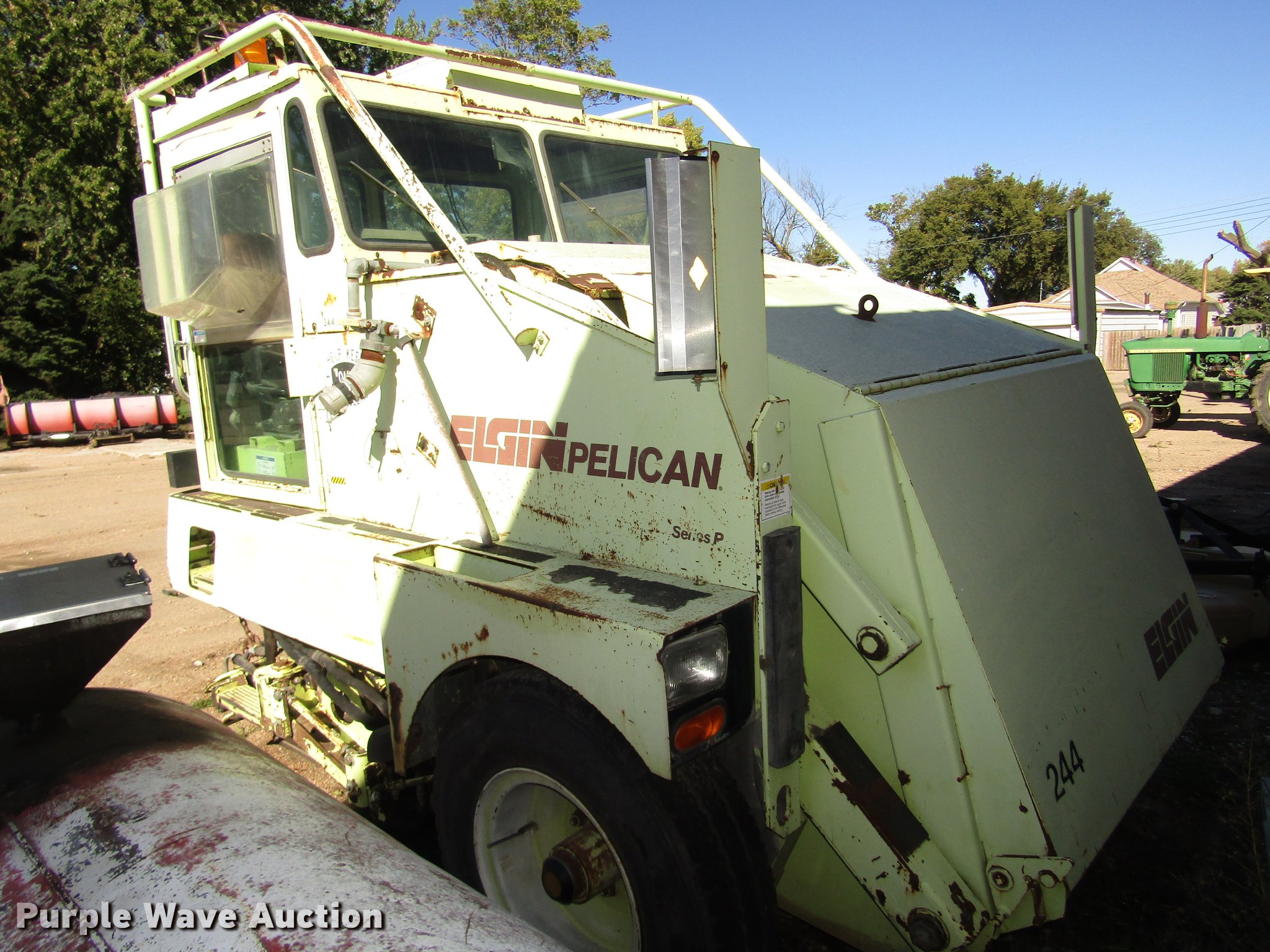 Purple Wave is selling a used Sweeper in Nebraska. This item is a 1996 Elgin Pelican Series P street sweeper with the following: 47,220 miles on odometer, 5,621 hours on meter, John Deere four cylinder diesel engine, Serial T04039T394253, Hydrostatic transmission, Heat, AM/FM/cassette, Front and side work lights, Beacon light, Dual operator stations, Water spray bar, 10.00R20 front tires, 8.25R15 rear tires, Additional seat and floor panels included, Additional gutter broom included, Additional 10.00-20 tire and wheel included, Lift hose to broom is blown, Hydraulic leak, Unit# 244