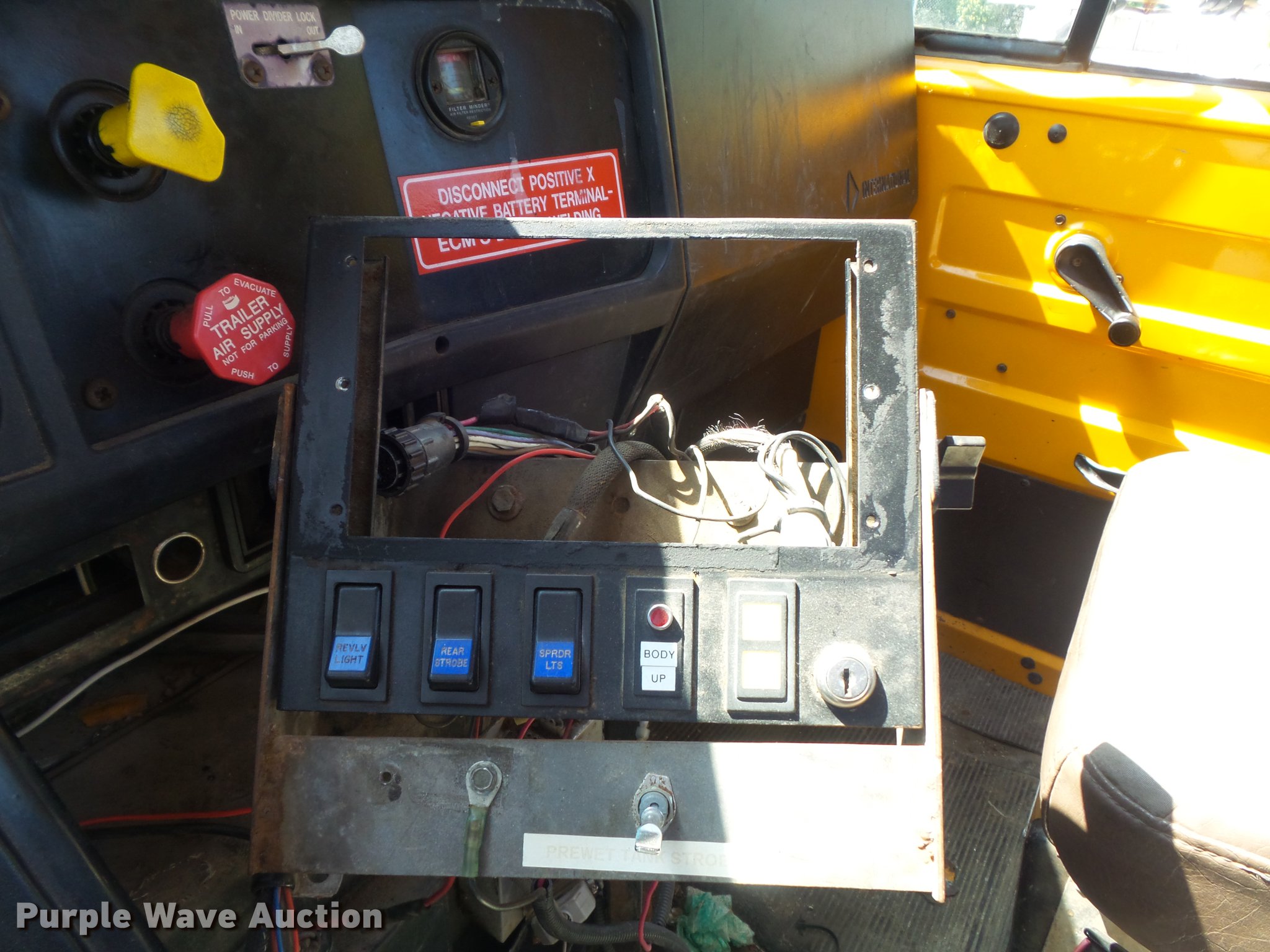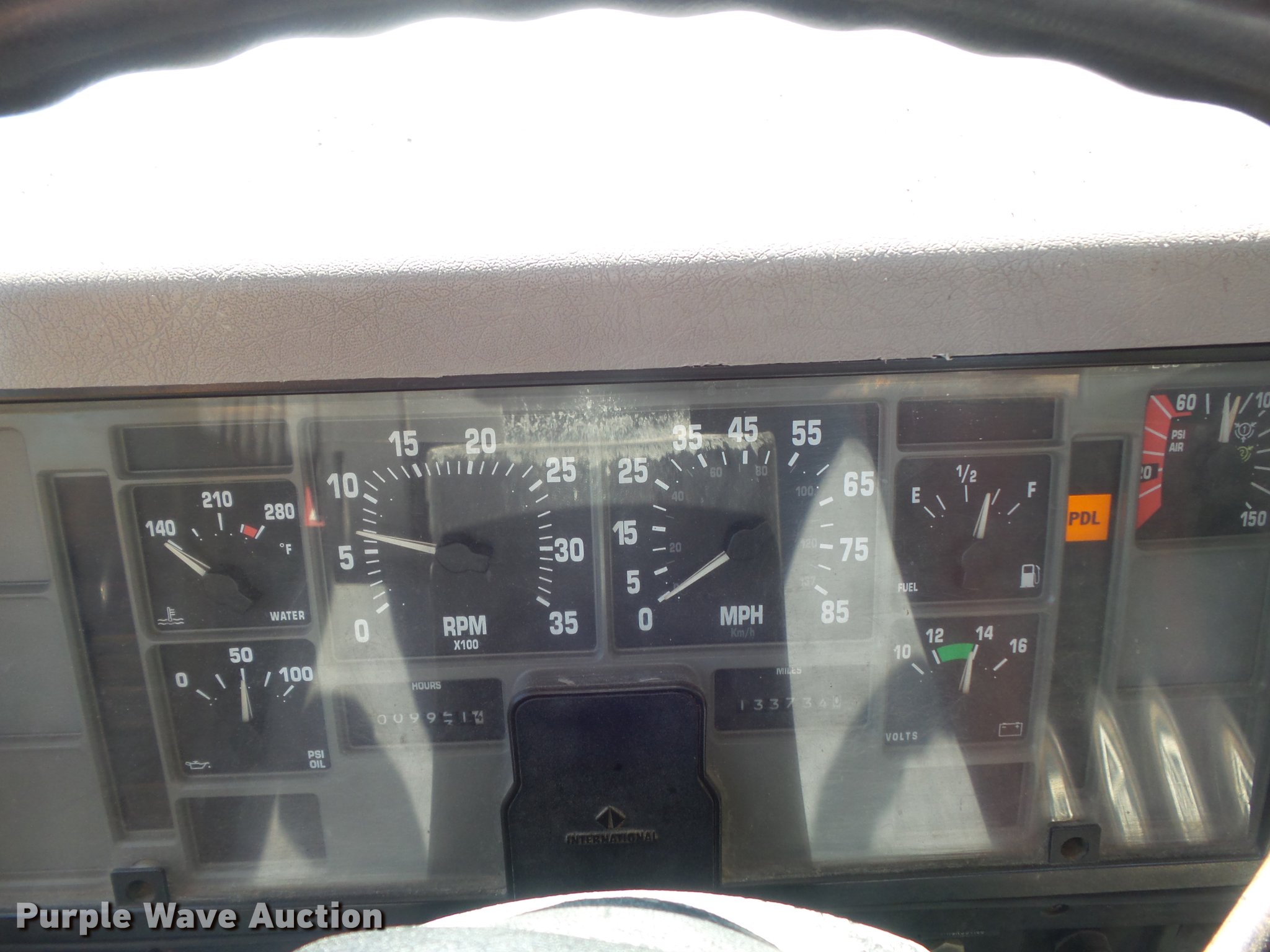 Purple Wave is selling a used Construction Dump Truck in Missouri. This item is a 2000 International 4900 truck cab and chassis with the following: 133,734 miles on odometer, 9,931 hours on meter, International NT530E 8.7L L6 turbo diesel engine, 250 HP, Serial 530HM2U1192731, Allison automatic transmission, Tandem axle, Inter-axle differential lock, Heat, Cruise, AM/FM/cassette, Heated mirrors, Air suspension seat, Snow plow controls, Block heater, Single fuel tank, Pintle hitch, Trailer wiring, Snow plow bracket, Rear air brake hookups, Rear hydraulic hookups, Spring over walking beam suspension, Air brakes, Double frame, 206" wheelbase, 315/80R22.5 front tires, 11R22.5 rear tires, GVWR 56,000 lbs, FAWR 16,000 lbs, IAWR 20,000 lbs, RAWR 20,000 lbs, Previously used as a dump truck, MODOT ID 6266