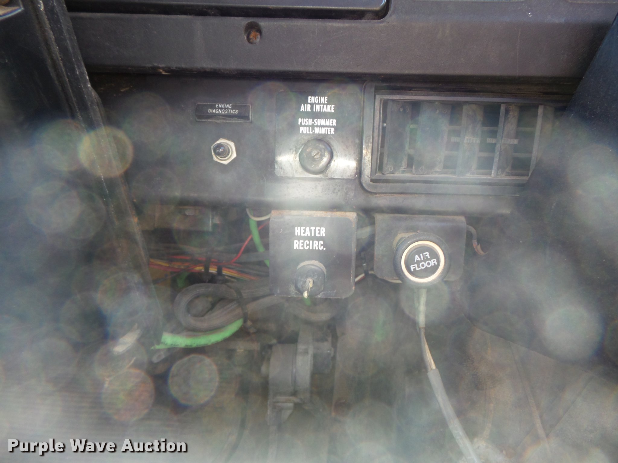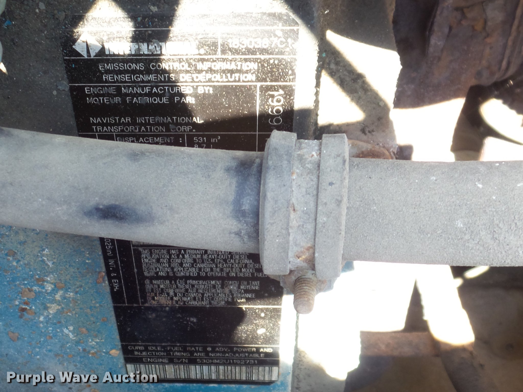 2000 International 4900 truck cab and chassis. 133,734 miles on odometer, 9,931 hours on meter, International NT530E 8.7L L6 turbo diesel engine 250 HP, Serial 530HM2U1192731, Allison automatic transmission, Tandem axle, Inter-axle differential lock, Heat, Cruise, AM/FM/cassette, Heated mirrors, Air suspension seat, Snow plow controls, Block heater, Single fuel tank, Pintle hitch, Trailer wiring, Snow plow bracket, Rear air brake hookups, Rear hydraulic hookups, Spring over walking beam suspension, Air brakes, Double frame, 206" wheelbase, 315/80R22.5 front tires, 11R22.5 rear tires, GVWR 56,000 lbs, FAWR 16,000 lbs, IAWR 20,000 lbs, RAWR 20,000 lbs, Previously used as a dump truck, MODOT ID 6266. Missouri title. 1HTSHADT4YH245430. Missouri Department of Transportation (MODOT). 2309 Barrett Station Rd. Ballwin, MO 63021