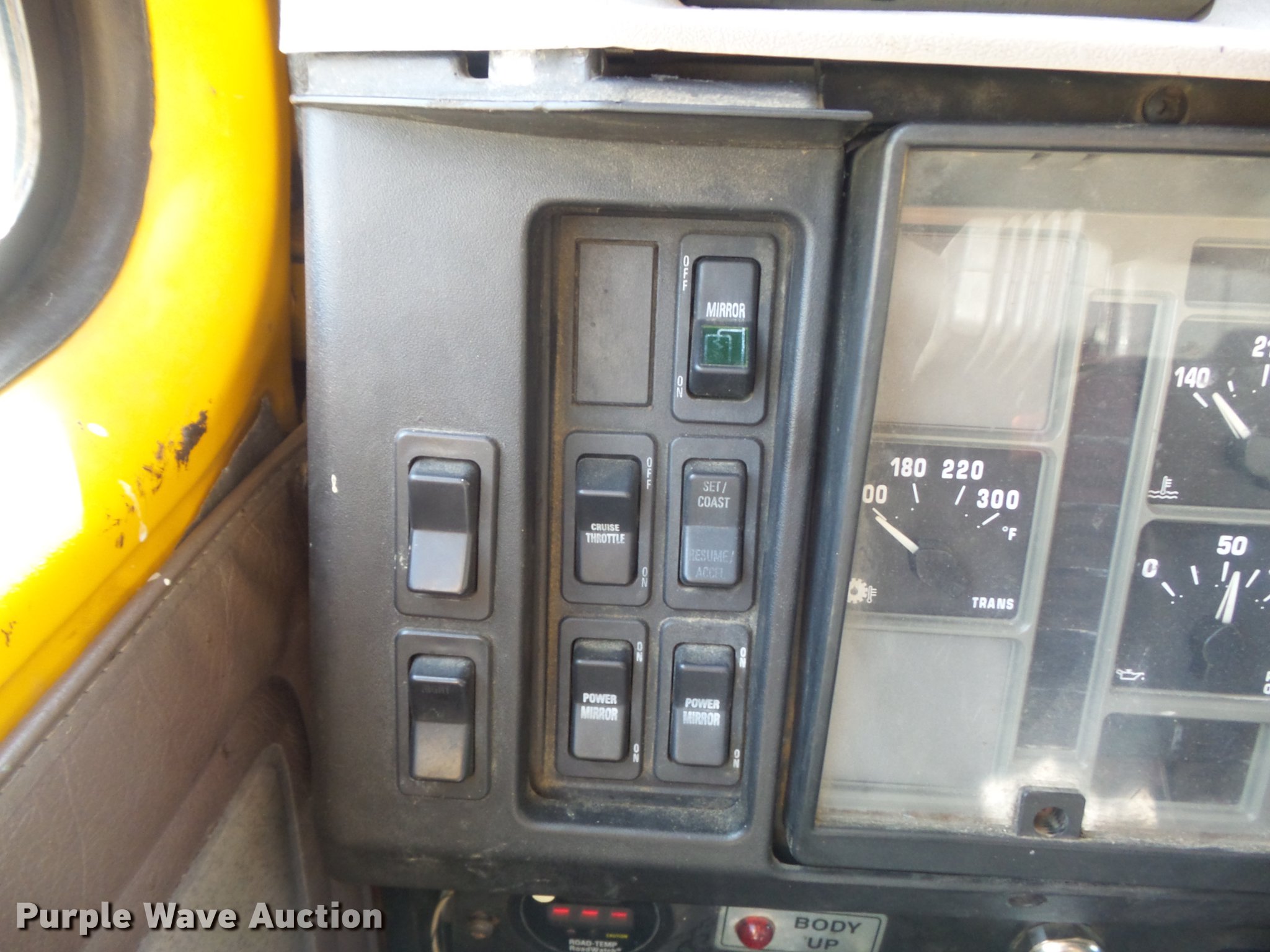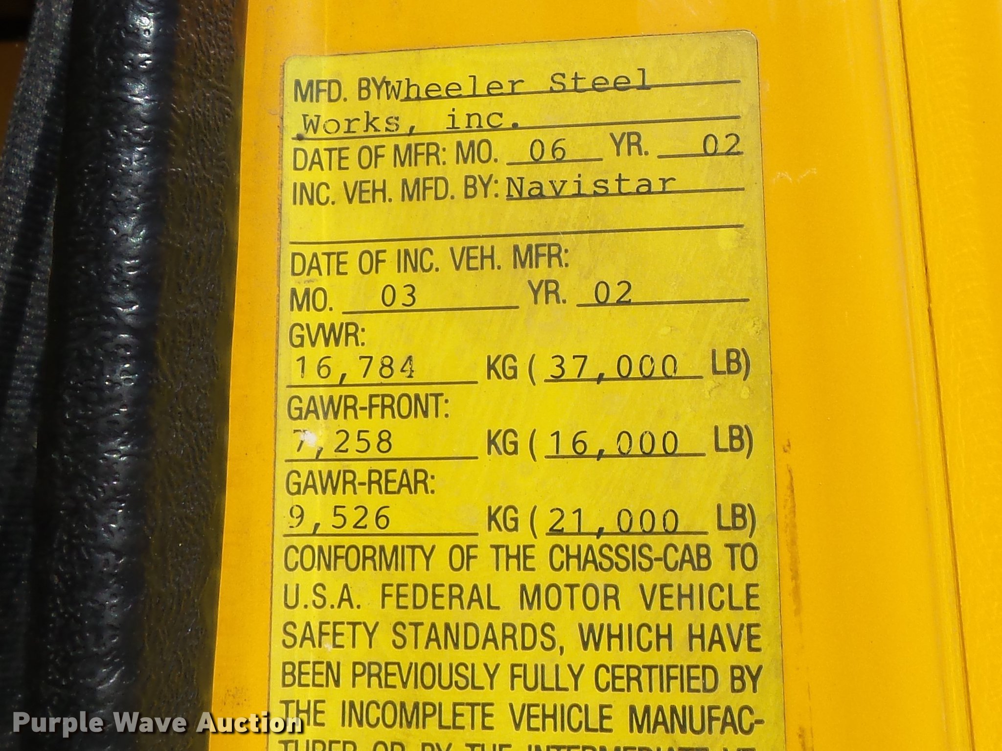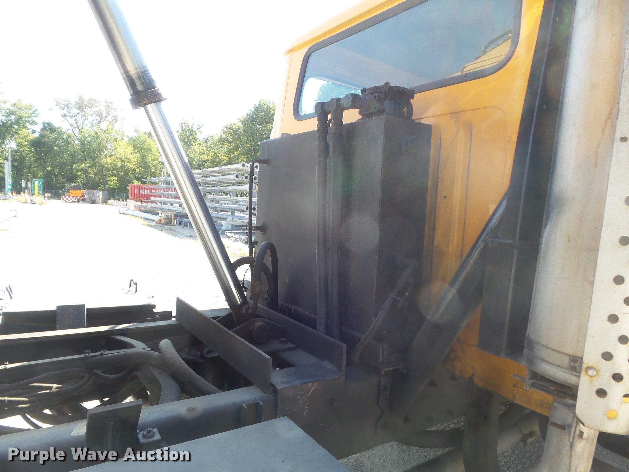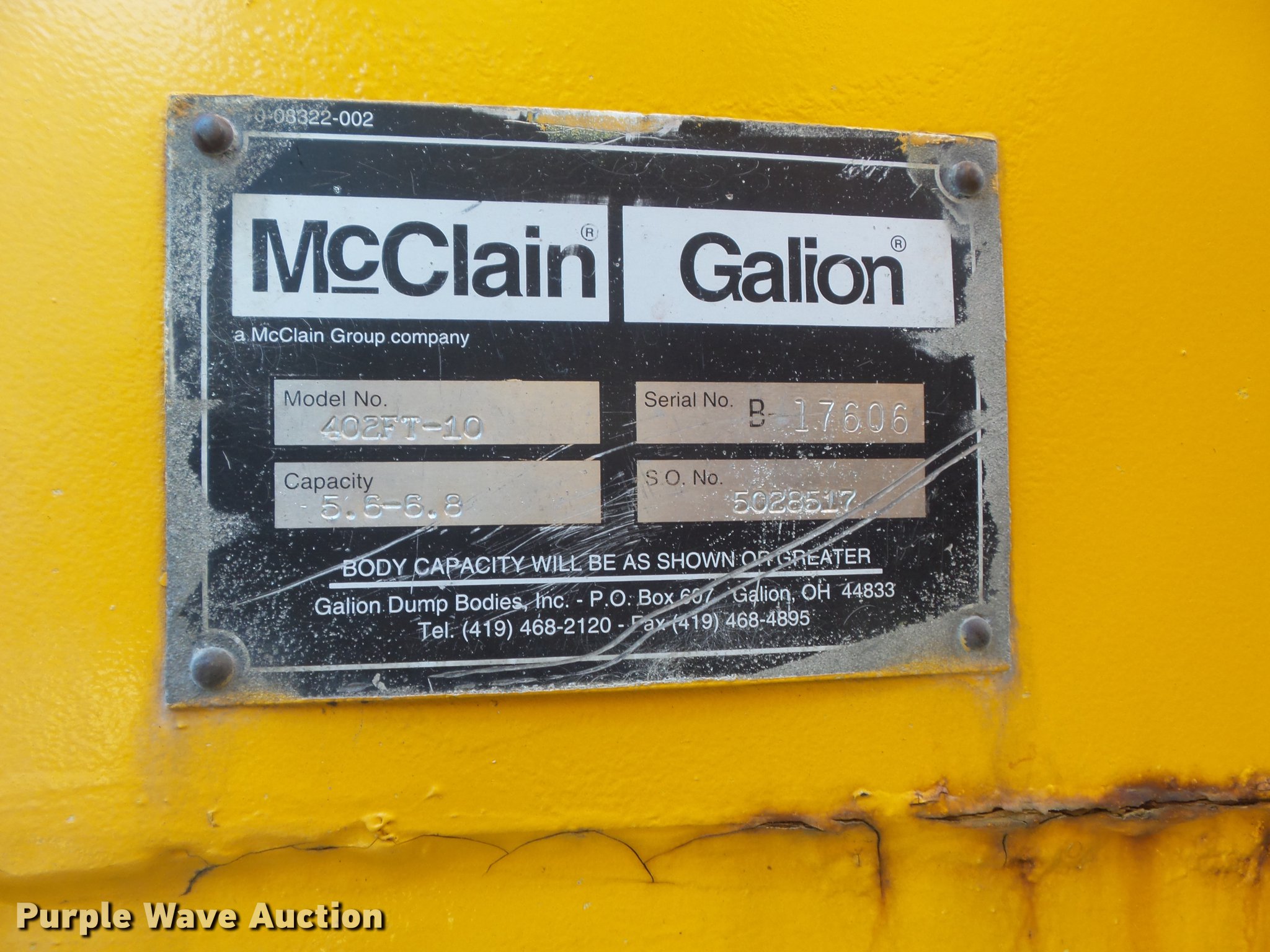 Purple Wave is selling a used Construction Dump Truck in Missouri. This item is a 2002 International 4900 Crew Cab dump truck with the following: 201,331 miles on odometer, 12,165 hours on meter, International DT466 7.6L L6 turbo diesel engine, 215 HP, Serial 470HM2U1346943, Allison automatic transmission, Single axle, AC and heat, Cruise, AM/FM/weatherband, Power front windows, Manual rear windows, Power and heated mirrors, Air suspension seat, Block heater, Toolboxes, PTO, McClain/Galion 402FT-10 steel dump bed, 10'L x 96"W, 24" side height, 5.6 to 6.8 yd. capacity, Rollover tarp, Air operated end gate, Snow plow bracket, Rear hydraulic hookups, Pintle hitch, Spring suspension, Air brakes, 206" wheelbase, 11R22.5 tires, GVWR 37,000 lbs, FAWR 16,000 lbs, RAWR 21,000 lbs, MODOT ID 6939