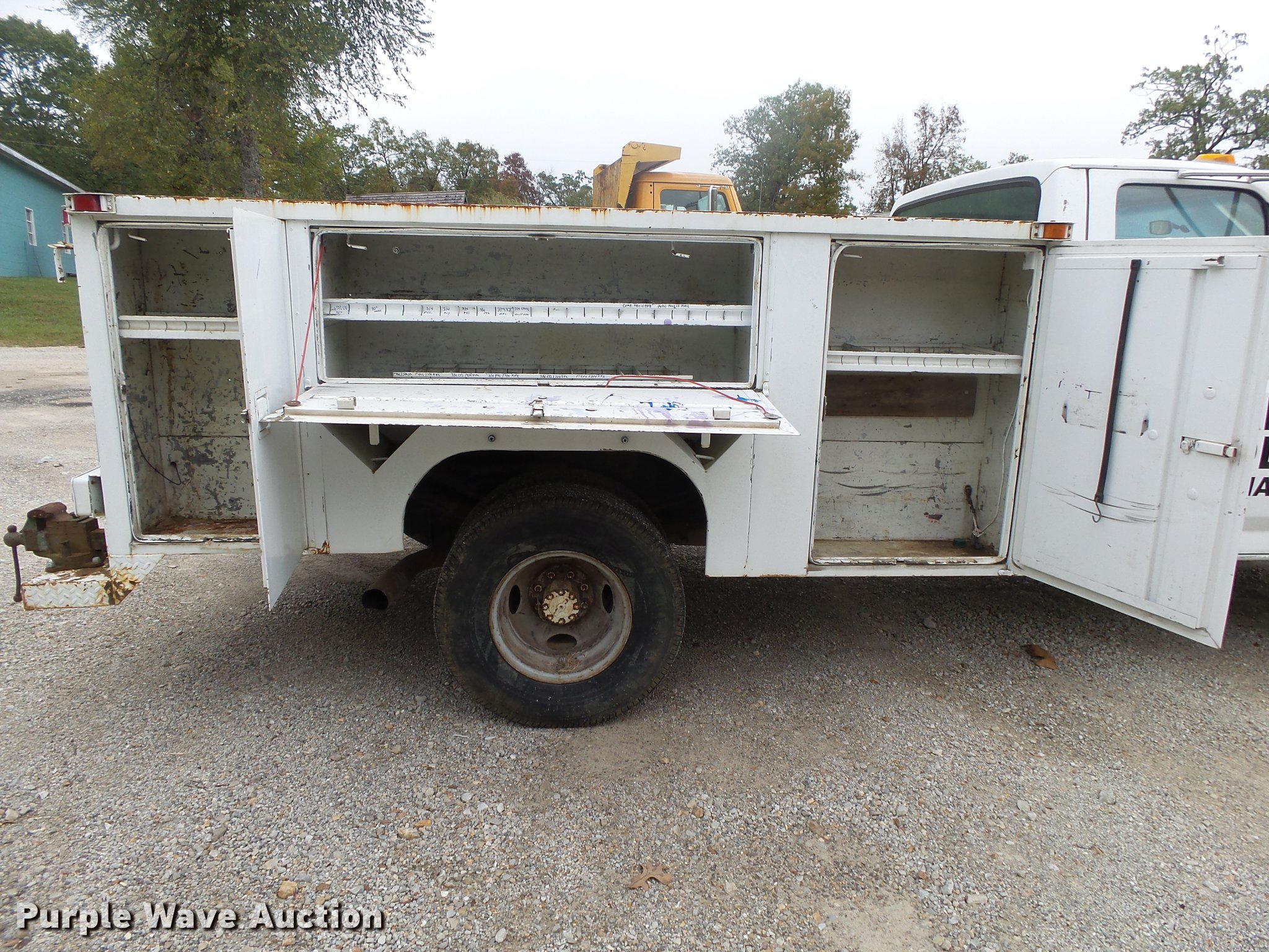 Purple Wave is selling a used 3/4 or 1 Ton Pickup or Van in Missouri. This item is a 1988 Ford F350 utility bed pickup truck with the following: 64,606 miles on odometer, 5.8L V8 OHV 16V gas engine, Automatic transmission, Single axle, Heat, AM/FM, Manual windows and locks, Vinyl interior, Baker 110880 utility bed, 10'L, Shelving, Mounted vise, Dual fuel tanks, Receiver hitch, Spring suspension, Hydraulic brakes, LT235/85R16 tires, GVWR 11,000 lbs, Possible engine issues, runs rough, Unit must be towed or hauled