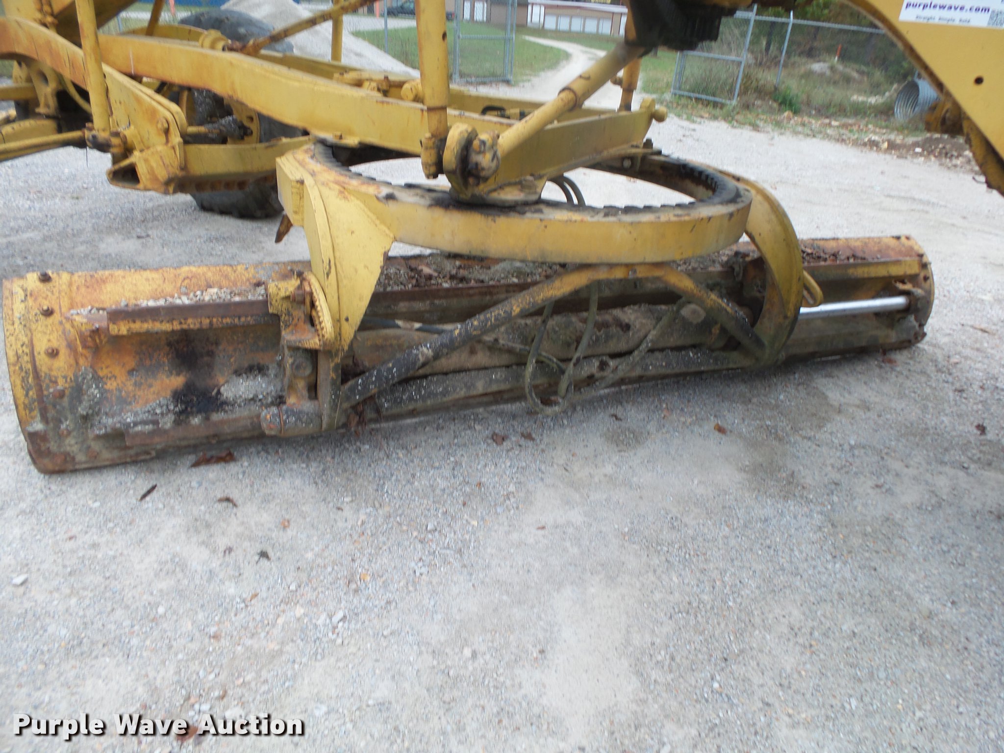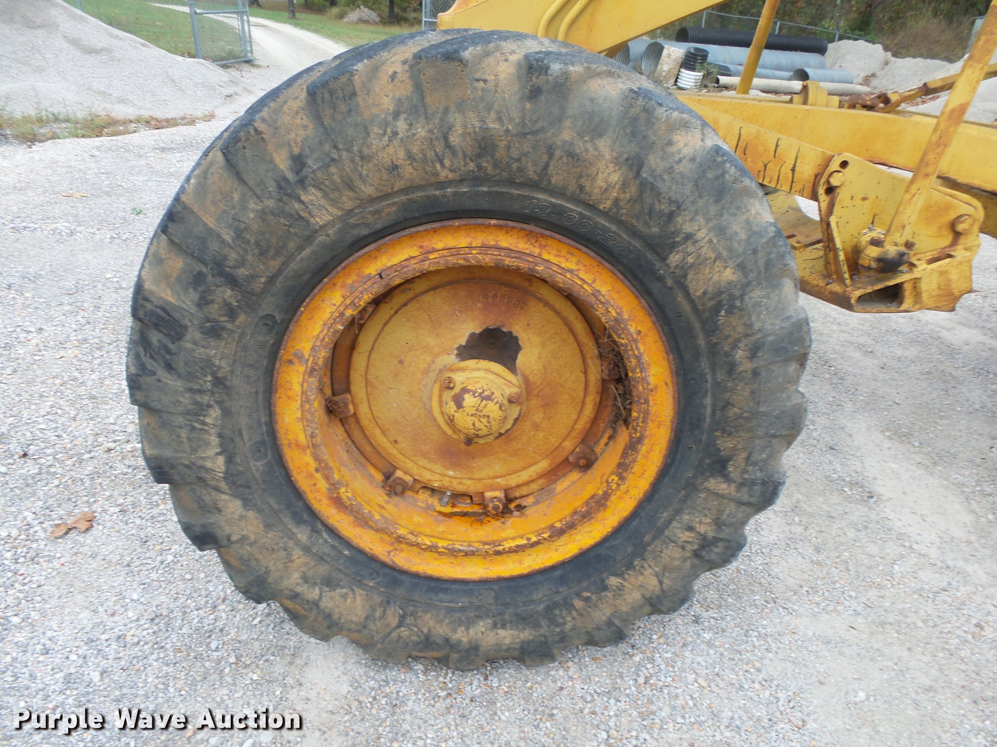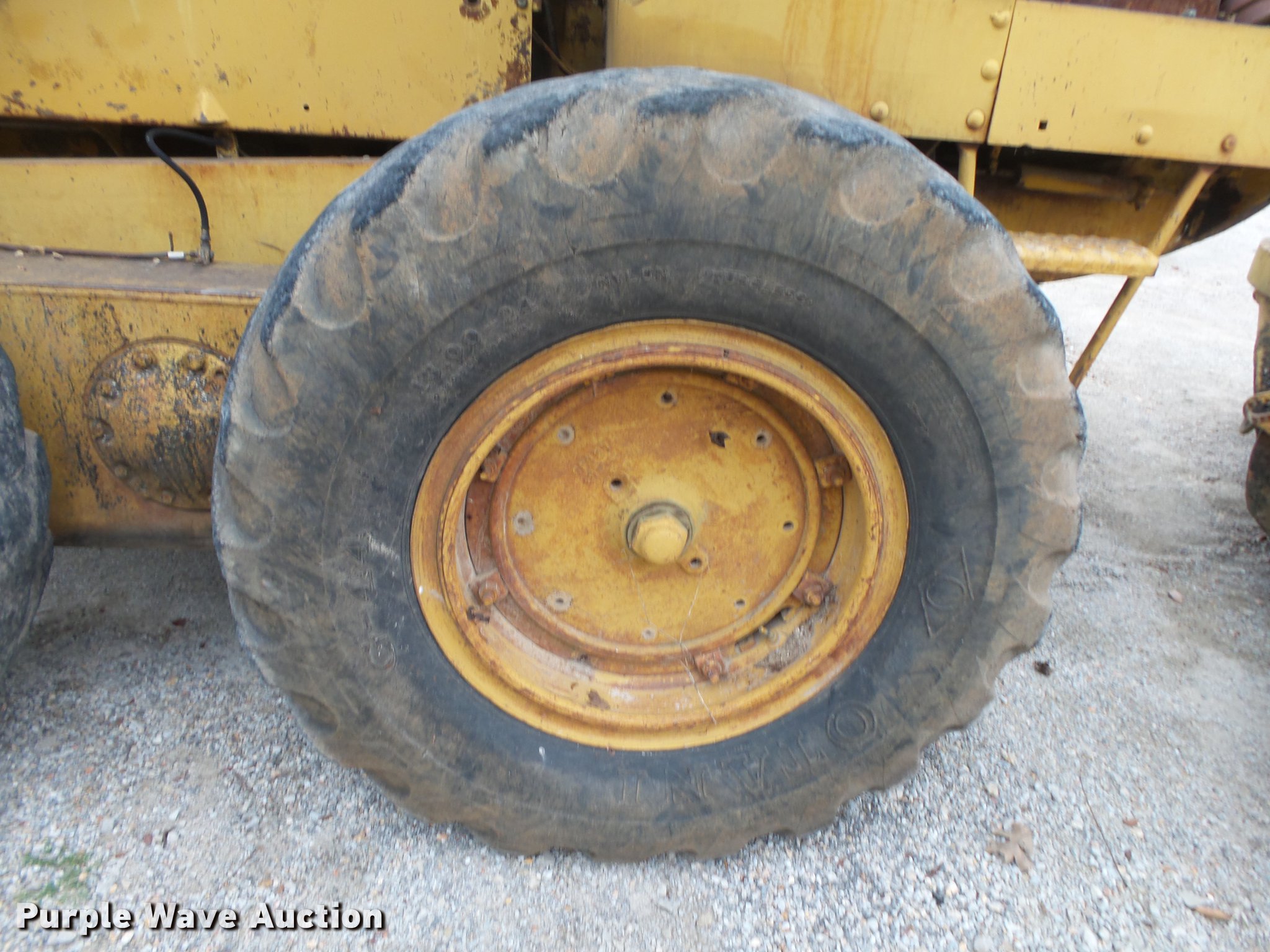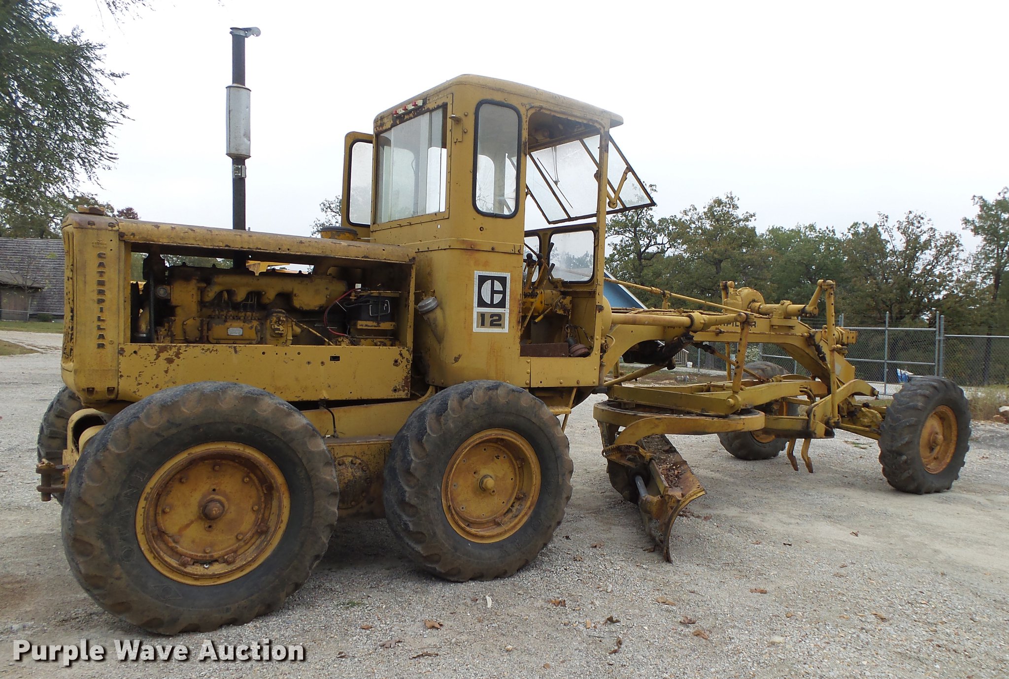 Purple Wave is selling a used Motor Grader in Missouri. This item is a 1958 Caterpillar 12 rigid frame motor grader with the following: Caterpillar six cylinder diesel engine, Direct-drive transmission, 4F-4R gears, Enclosed cab, Seven hydraulic control valves, 12'W moldboard, Side shift, Caterpillar mid-mounted scarifier, (2) teeth, 13.00-24 tires, Engine knocks, Possible engine issues, Dead battery, Serial 70D1069