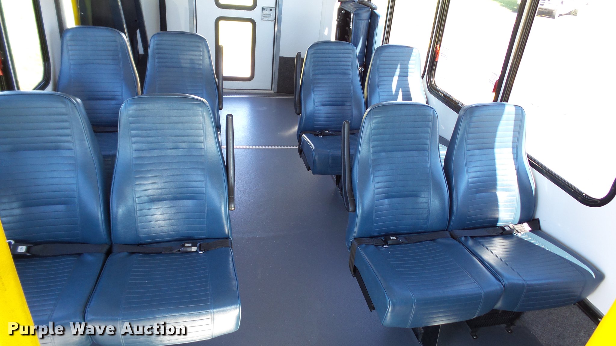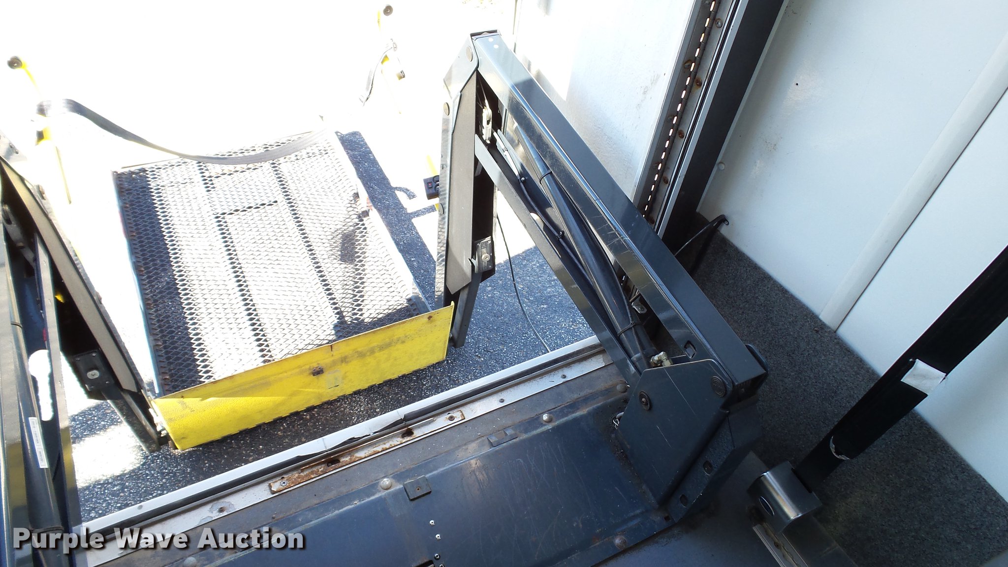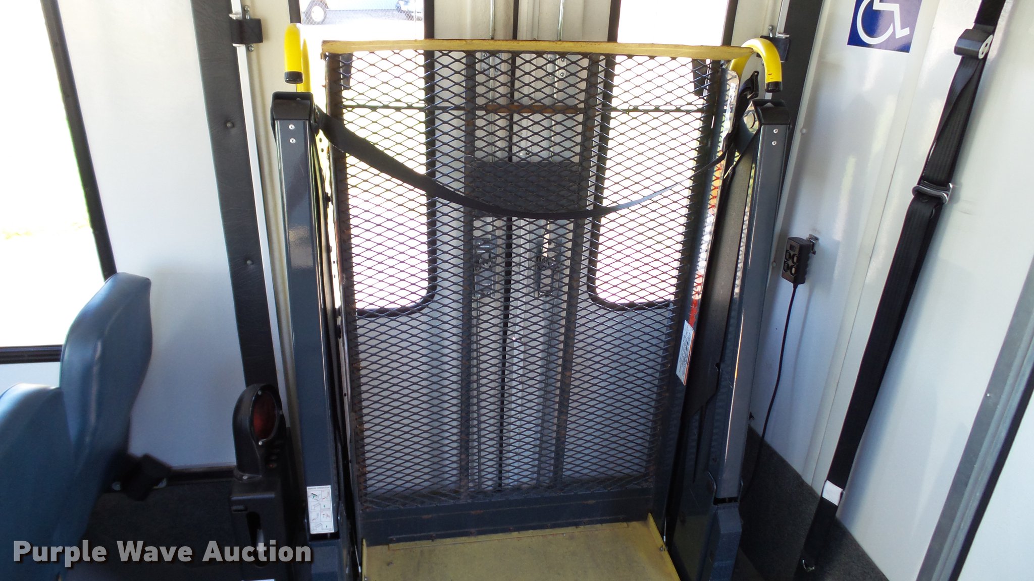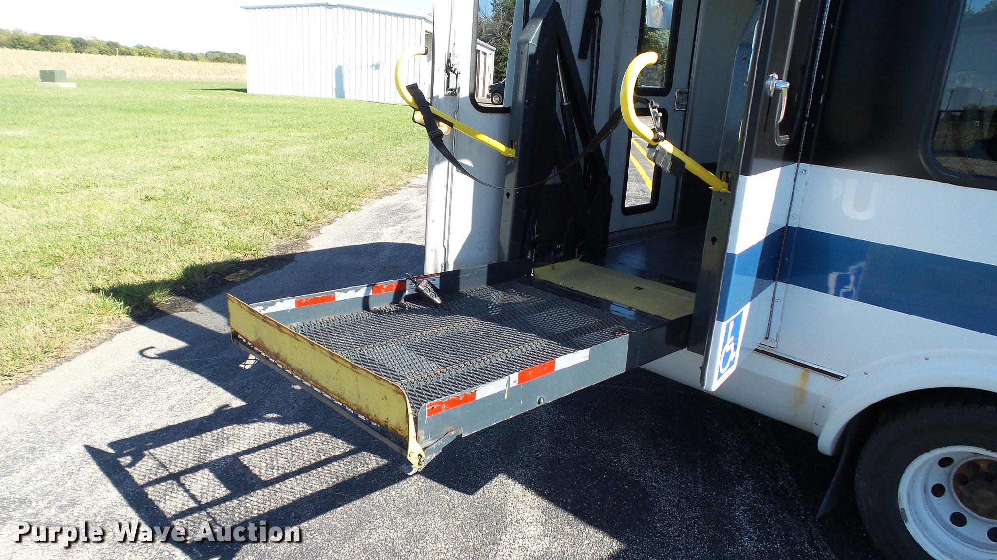 Purple Wave is selling a used Bus in Kansas. This item is a 2006 Ford E350 Super Duty shuttle bus with the following: 181,207 miles on odometer, 6.8L V10 SOHC 20V gas engine, Automatic transmission, Single axle, AC and heat, Cruise, AM/FM/CD, Heated mirrors, Power drivers seat, Pro-vision video system, Backup alarm, Eldorado National, Inc. body, 12 passenger capacity, (12) adult seats, Seat belts, Ricon S55-10 wheelchair lift, 54"L x 34"W lift platform, Serial 00201261, Wheelchair tie down area, Ceiling, rear, and side emergency exits, Carrier roof AC unit, Advance fast idle system, Spring suspension, Hydraulic brakes, 138" wheelbase, 225/75R16 tires, GVWR 10,700 lbs