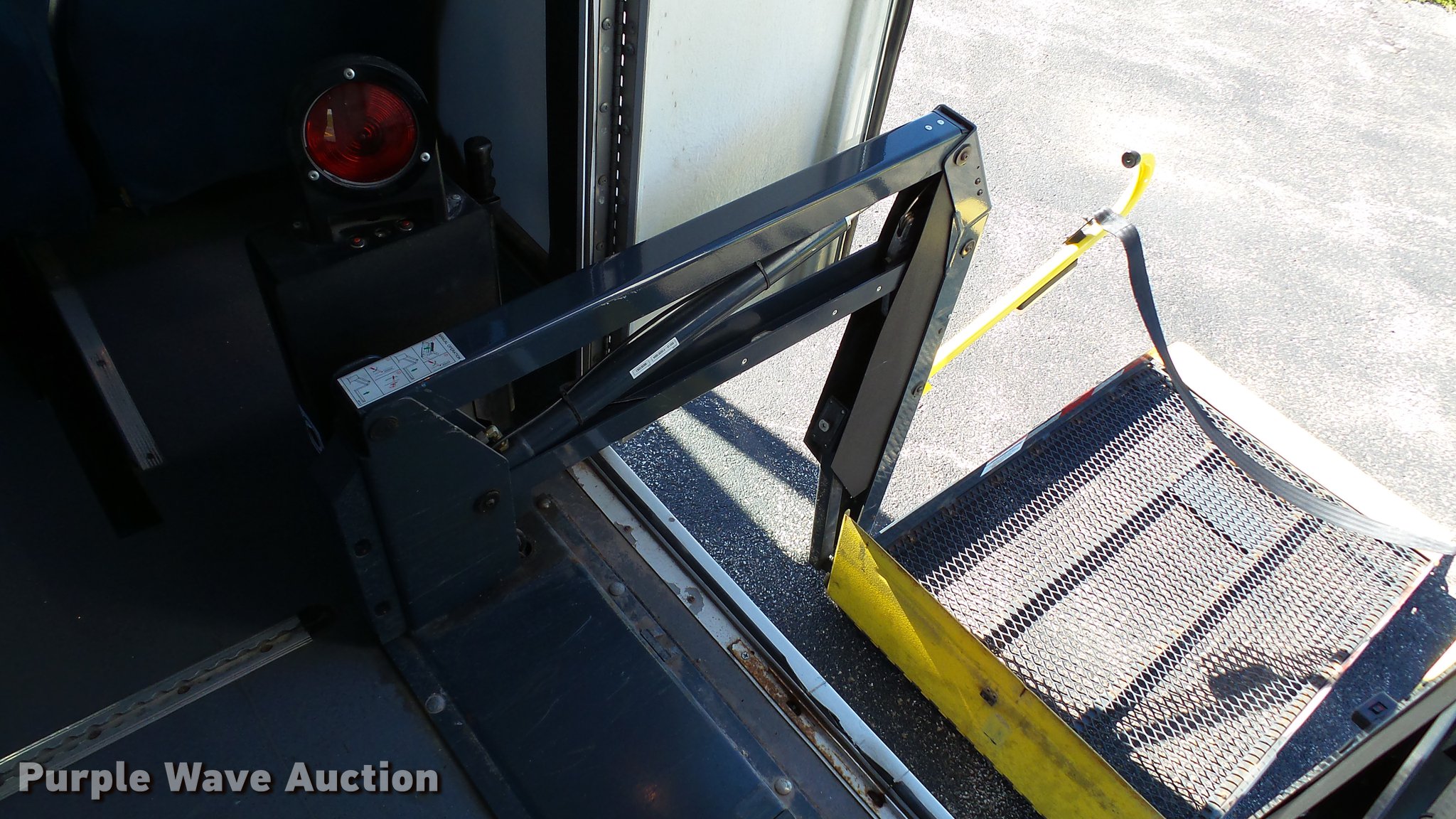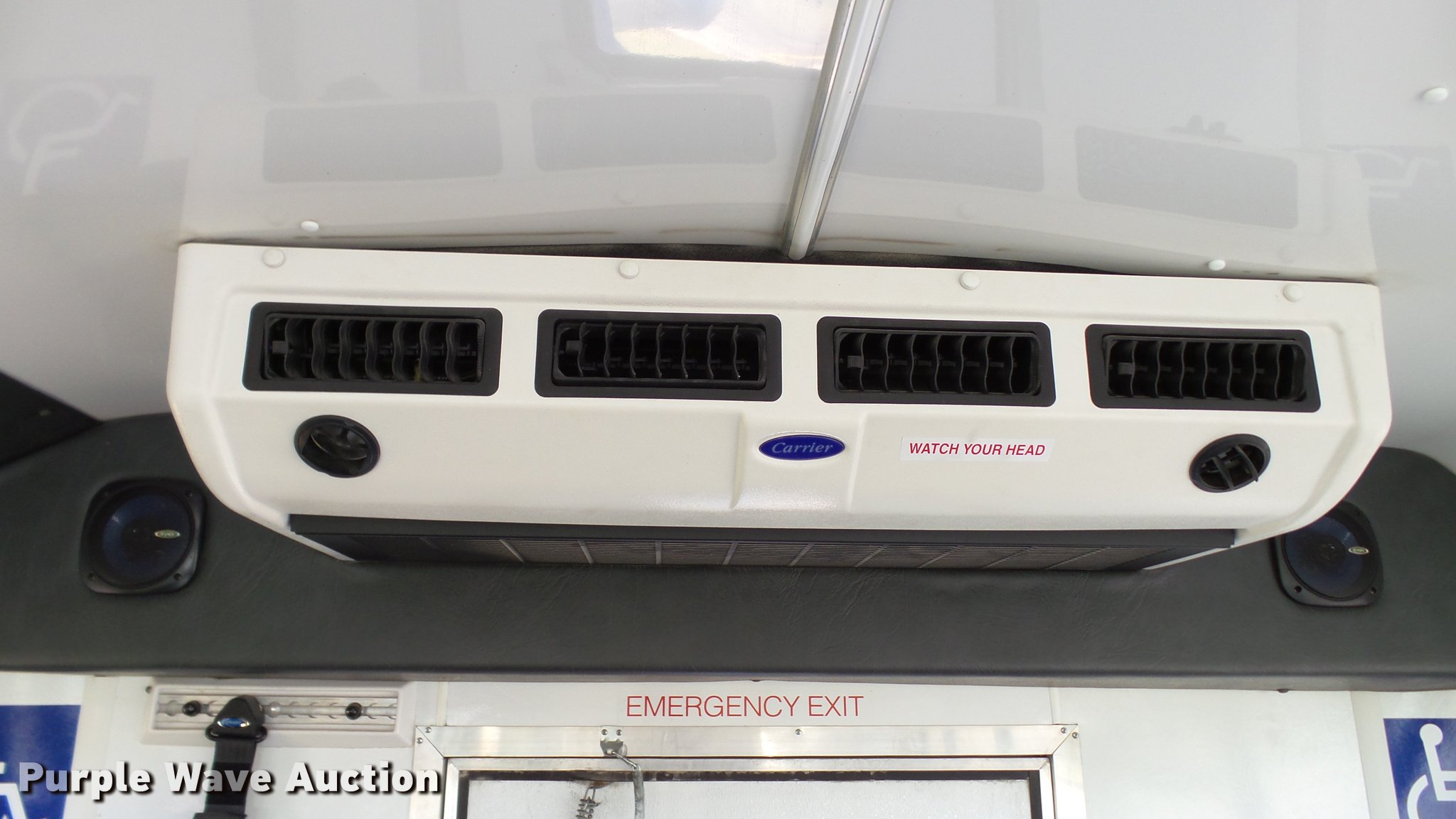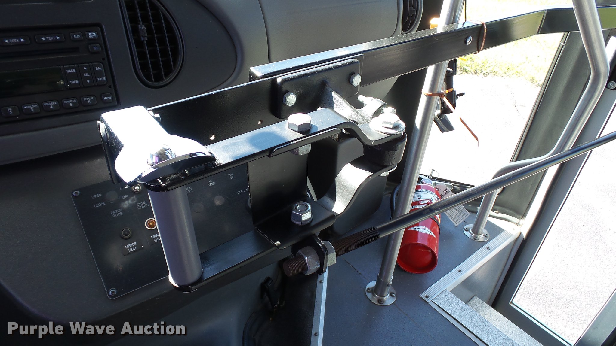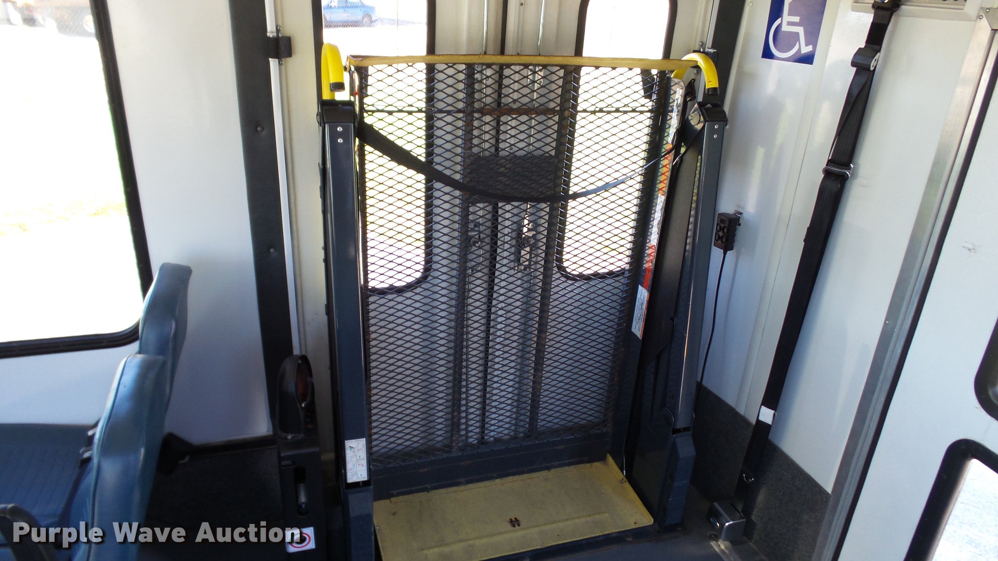 Purple Wave is selling a used Bus in Kansas. This item is a 2006 Ford E350 Super Duty shuttle bus with the following: 181,207 miles on odometer, 6.8L V10 SOHC 20V gas engine, Automatic transmission, Single axle, AC and heat, Cruise, AM/FM/CD, Heated mirrors, Power drivers seat, Pro-vision video system, Backup alarm, Eldorado National, Inc. body, 12 passenger capacity, (12) adult seats, Seat belts, Ricon S55-10 wheelchair lift, 54"L x 34"W lift platform, Serial 00201261, Wheelchair tie down area, Ceiling, rear, and side emergency exits, Carrier roof AC unit, Advance fast idle system, Spring suspension, Hydraulic brakes, 138" wheelbase, 225/75R16 tires, GVWR 10,700 lbs