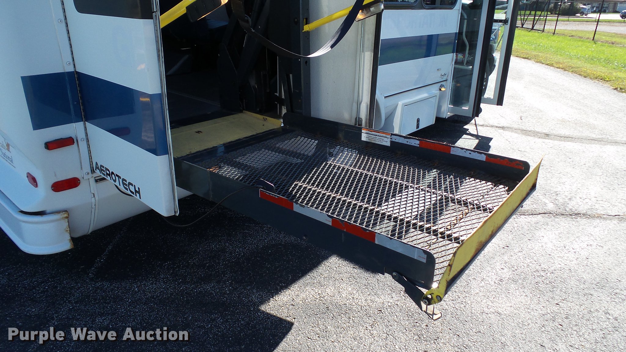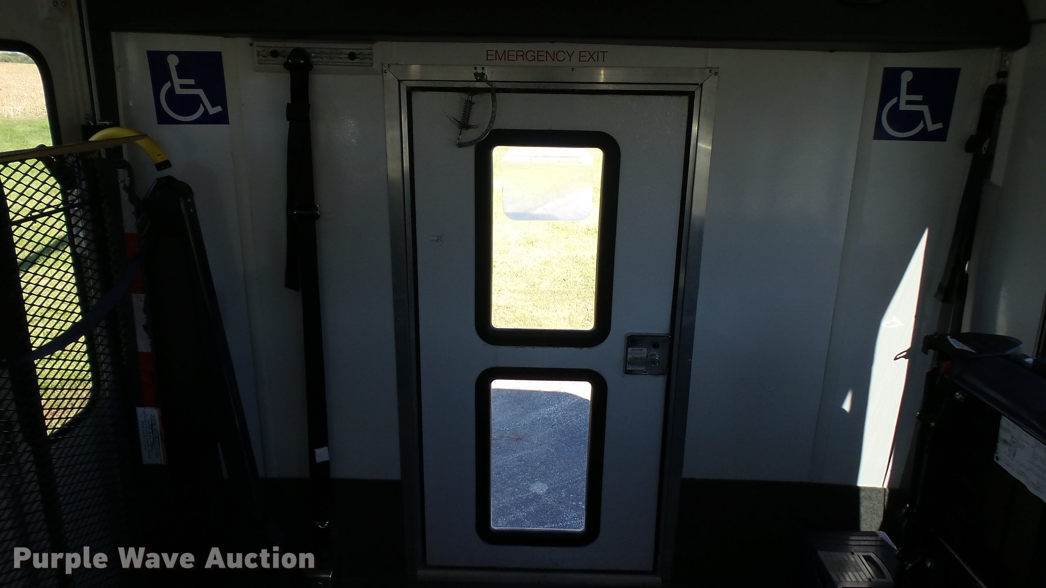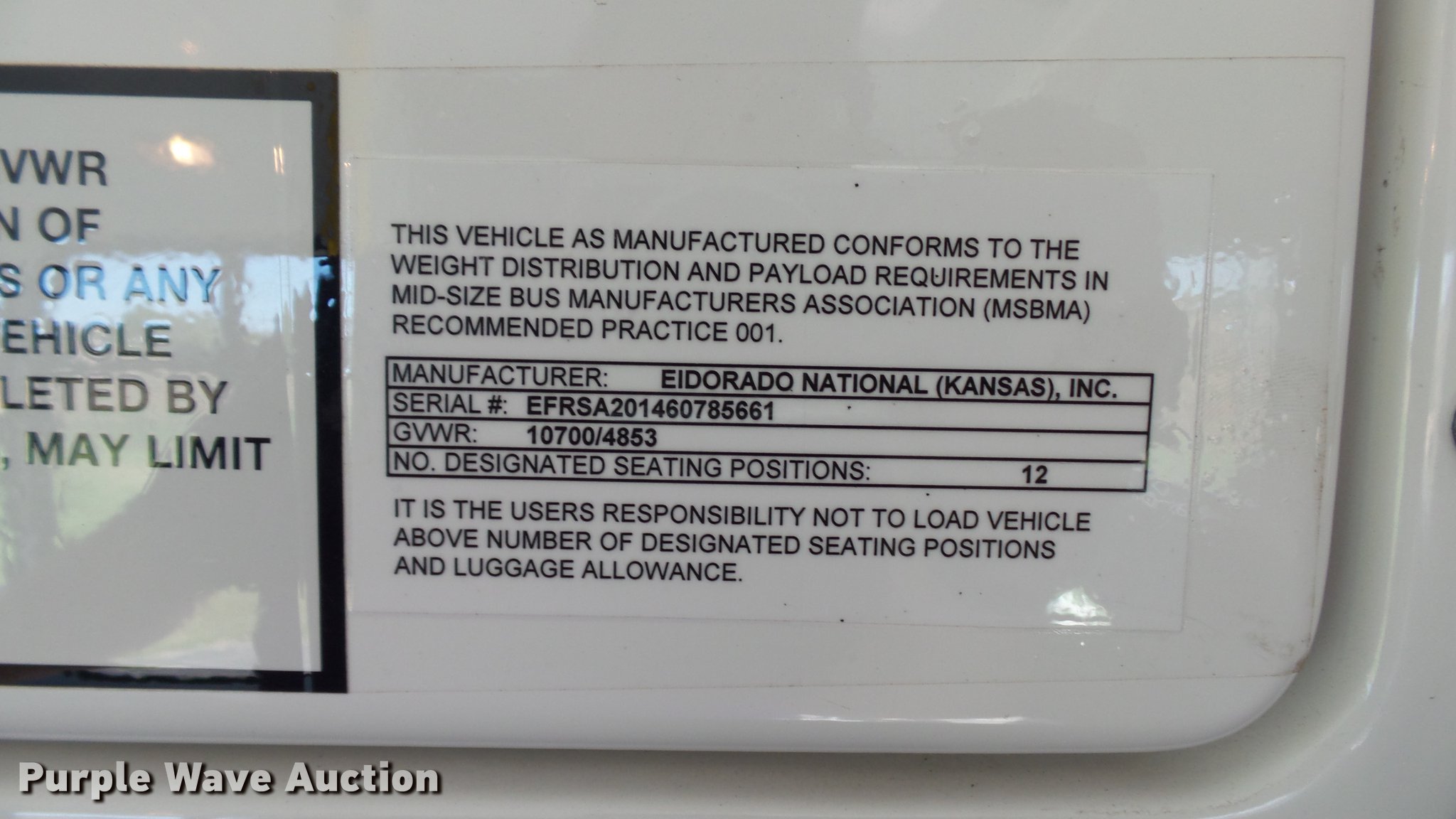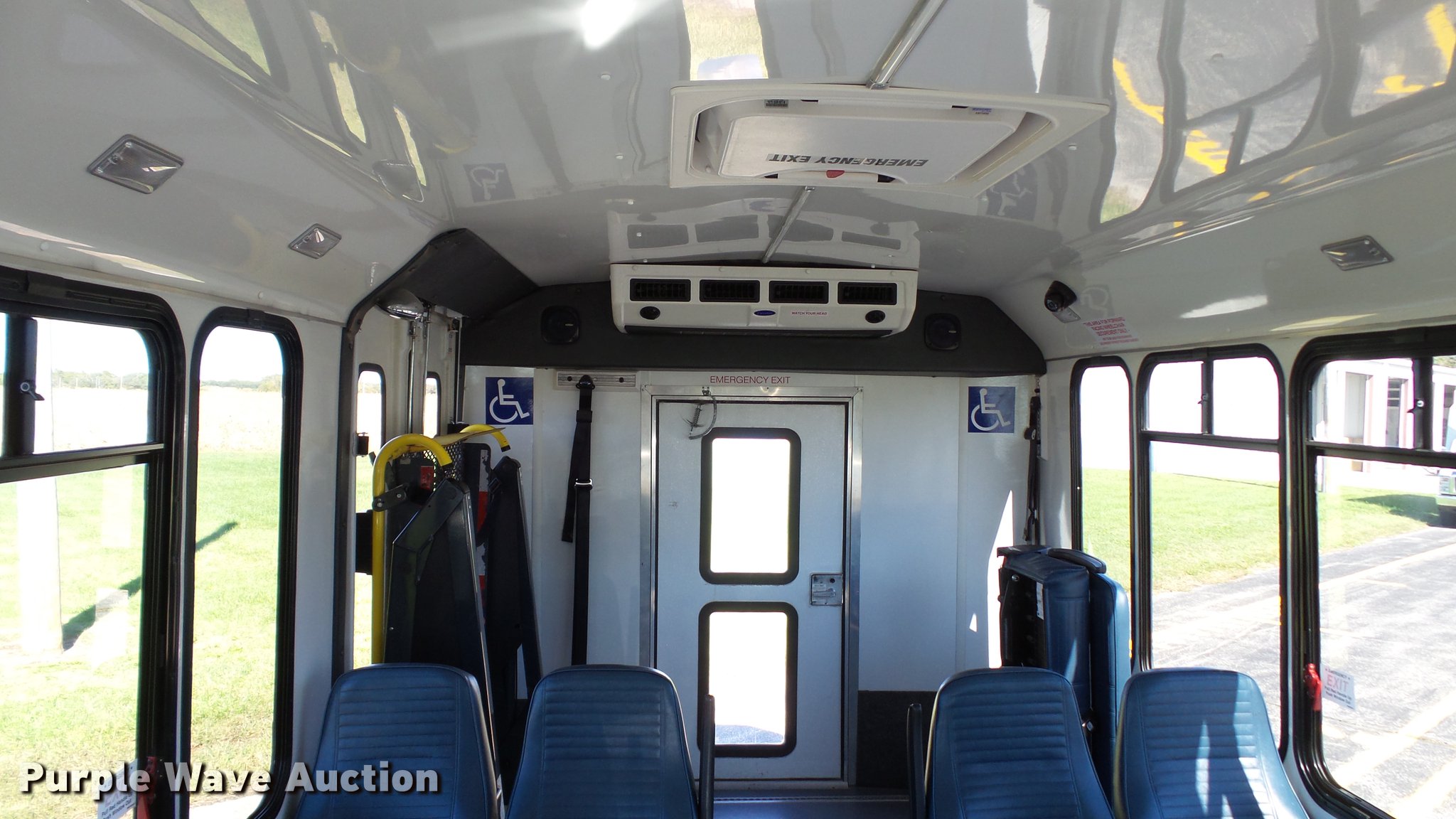 Purple Wave is selling a used Bus in Kansas. This item is a 2006 Ford E350 Super Duty shuttle bus with the following: 181,207 miles on odometer, 6.8L V10 SOHC 20V gas engine, Automatic transmission, Single axle, AC and heat, Cruise, AM/FM/CD, Heated mirrors, Power drivers seat, Pro-vision video system, Backup alarm, Eldorado National, Inc. body, 12 passenger capacity, (12) adult seats, Seat belts, Ricon S55-10 wheelchair lift, 54"L x 34"W lift platform, Serial 00201261, Wheelchair tie down area, Ceiling, rear, and side emergency exits, Carrier roof AC unit, Advance fast idle system, Spring suspension, Hydraulic brakes, 138" wheelbase, 225/75R16 tires, GVWR 10,700 lbs