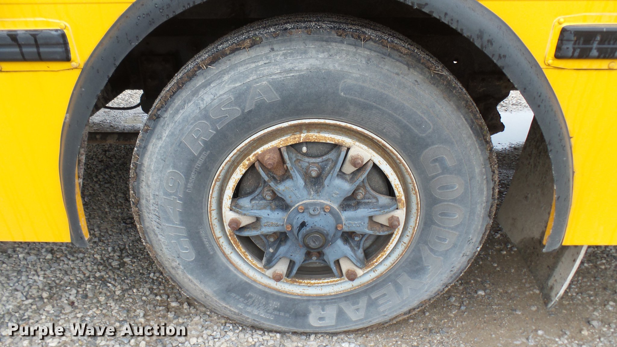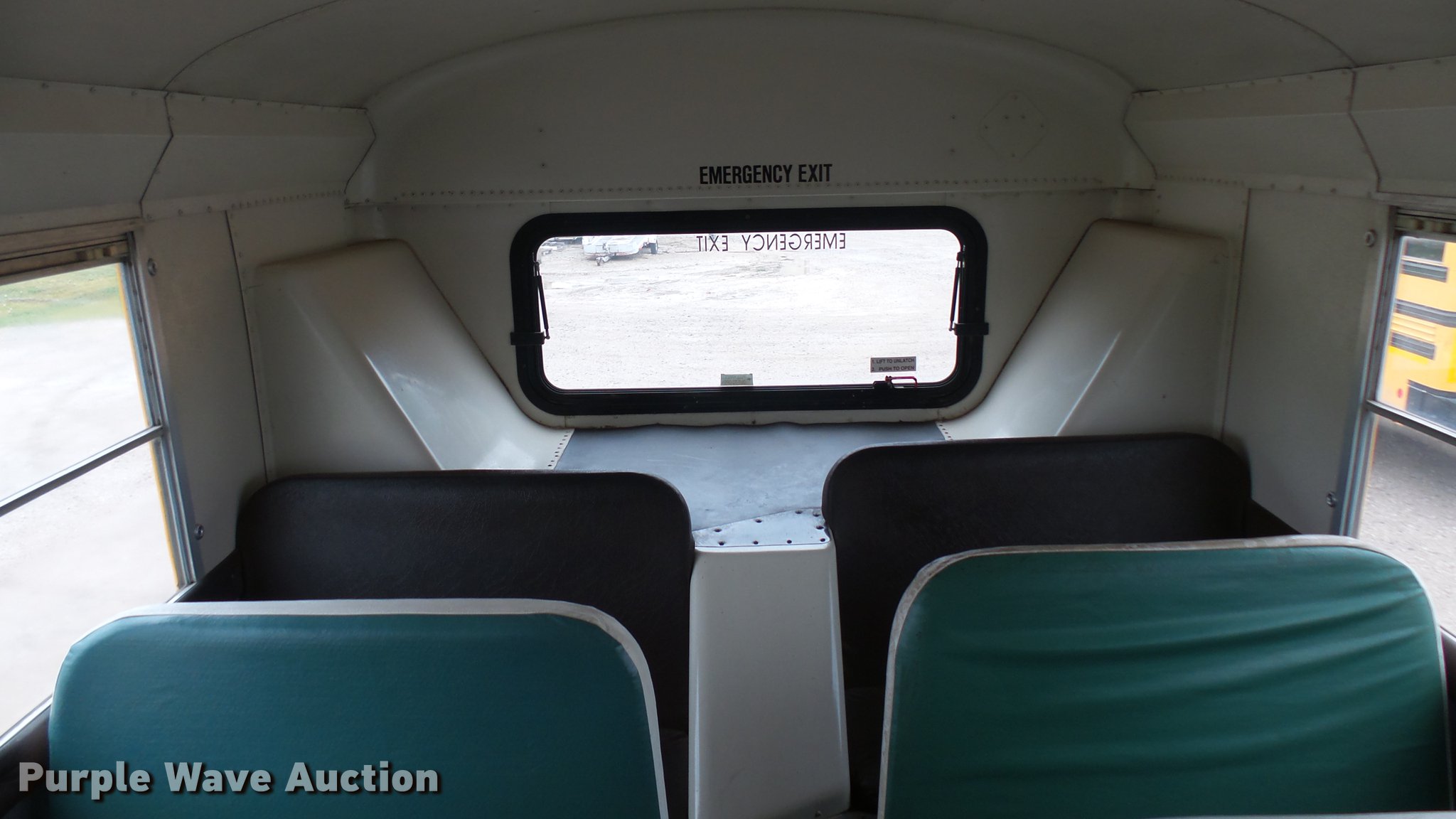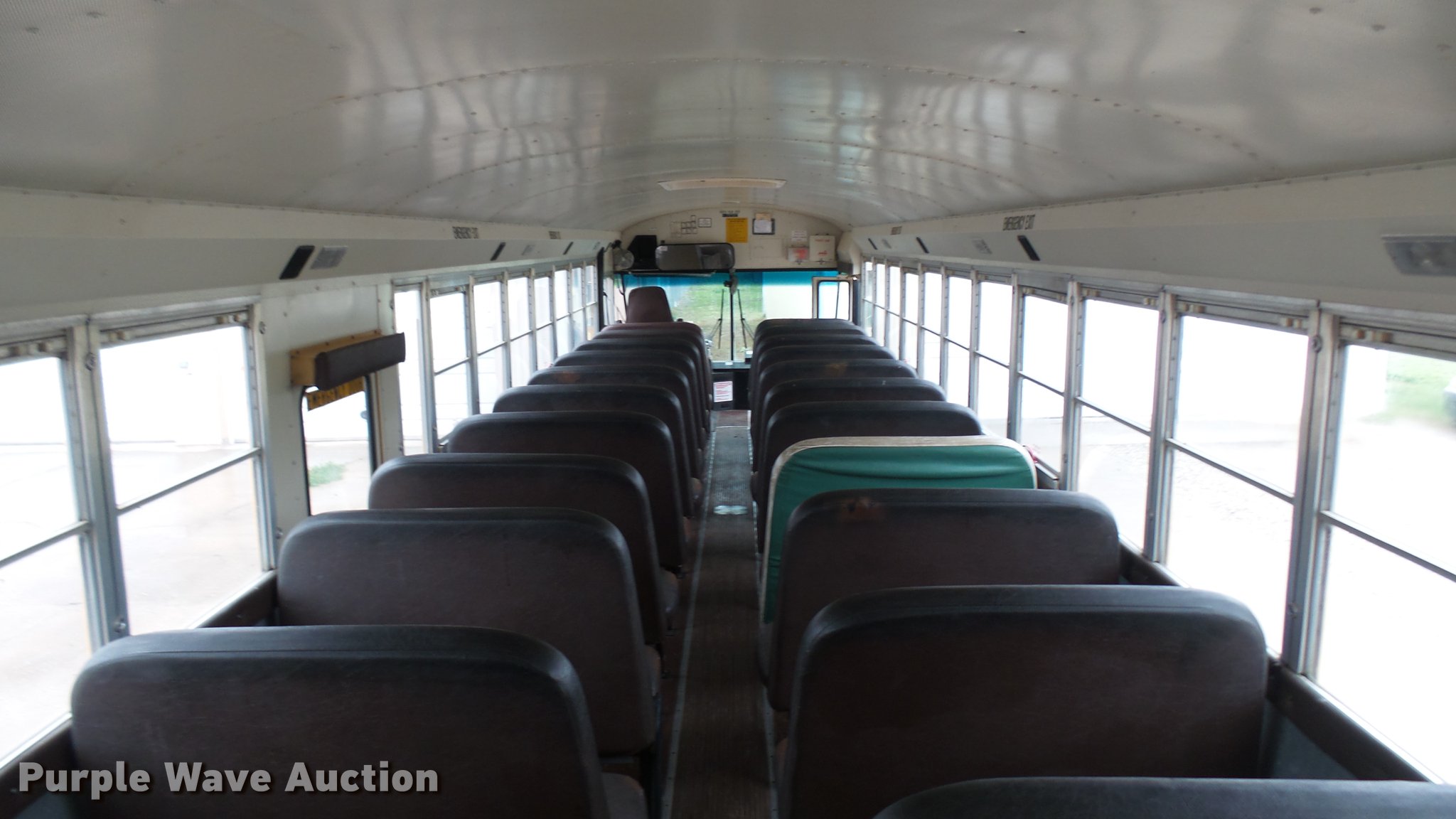 Purple Wave is selling a used Bus in Kansas. This item is a 1999 International AmTran school bus with the following: 118,454 miles on odometer, 3,969 hours on meter, International DT530 8.7L L6 diesel engine, Automatic transmission, Single axle, Heat, AM/FM/cassette, Heated mirrors, Vinyl interior, 78 passenger capacity, Roof and side emergency exits, Stroage, Front tow hooks, Air brakes, 11R22.5 tires, Idles rough, Inspected in August 2017, Maintenance records available upon request