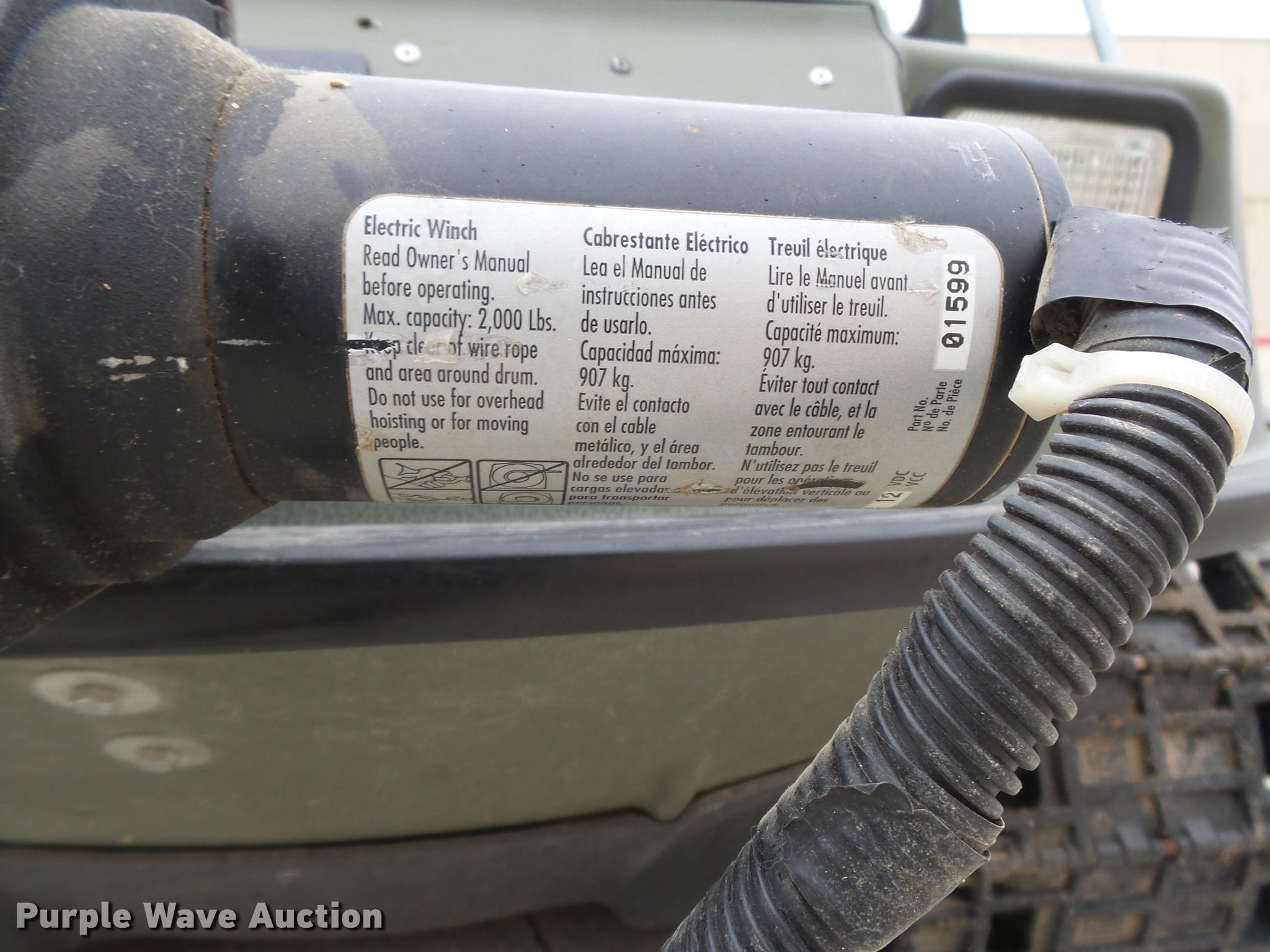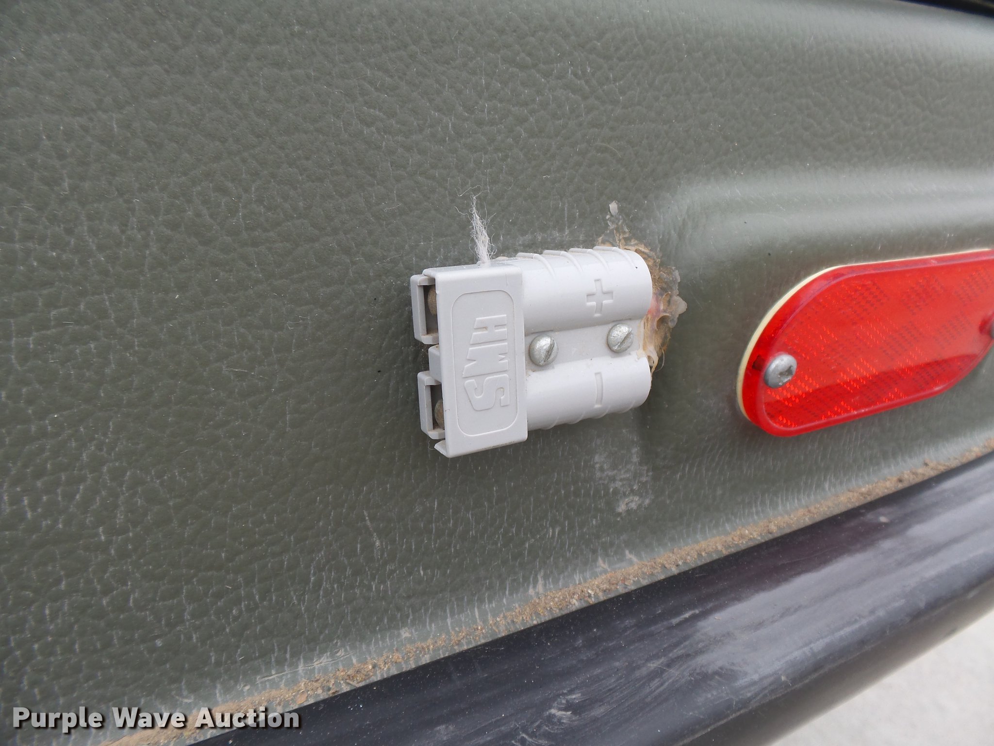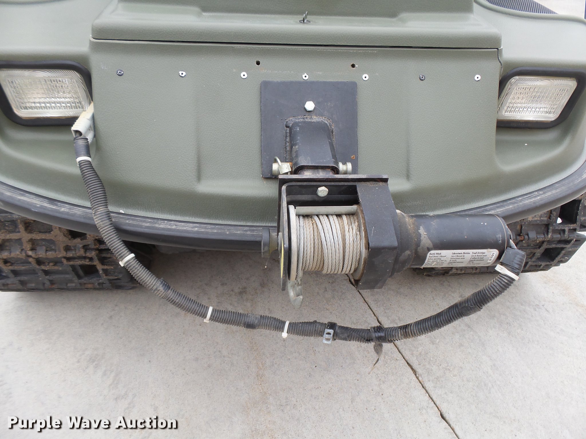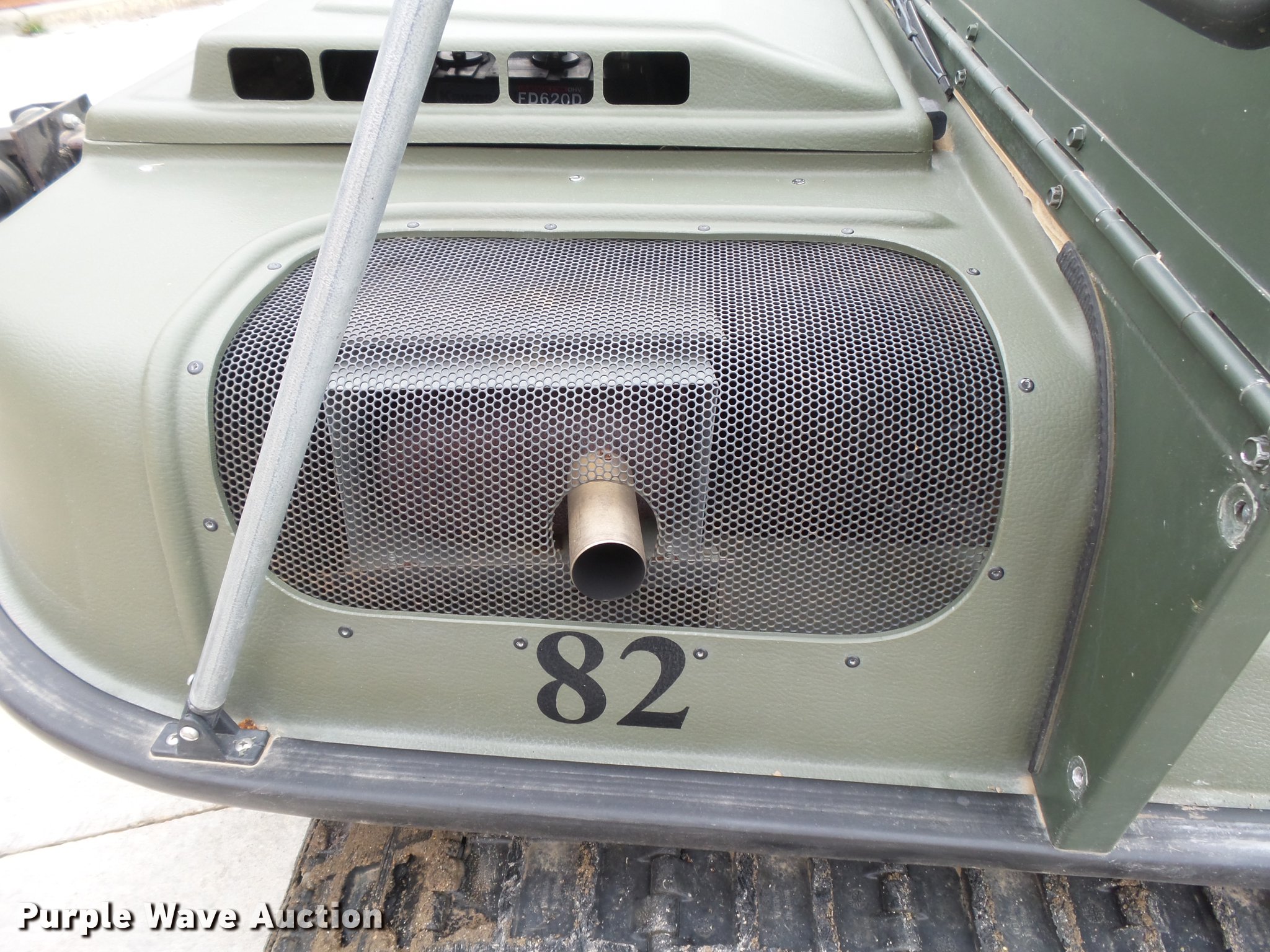 Purple Wave is selling a used Utility Vehicle in Kansas. This item is a 1997 Argo V894-37 Conquest amphibious vehicle with the following: 102 hours on meter, Kawasaki FD620D 0.617L two cylinder gas engine, Serial FDC20D119892, 2F-1R gears, Serial 22772MU, Eight wheel drive, Aluminum cab, Heat, Interior lights, Headlights, Wiper, Removable top, Rear handrail, Winch kit, Receiver hitch, (8) 22x10.00-8 tires, 18"W super tracks, 40 amp charging system, Additional track sections, Stored inside, Serial CB13742
