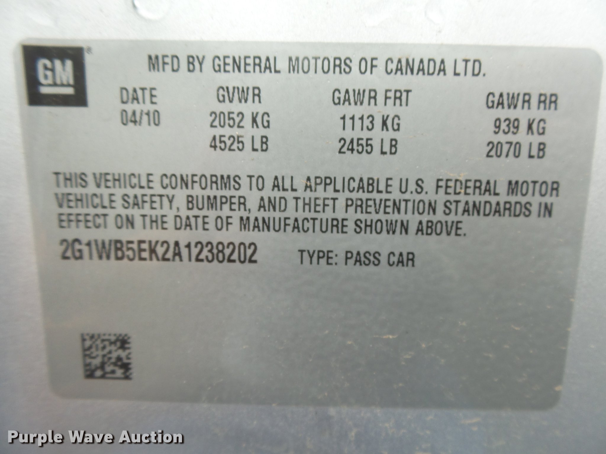 Purple Wave is selling a used Passenger Vehicle in Kansas. This item is a 2010 Chevrolet Impala with the following: 229,267 miles on odometer, 3.5L V6 OHV 12V FFV gas engine, Automatic transmission, AC and heat, Tilt, Cruise, AM/FM/CD, Power windows, locks, mirrors, and seats, Cloth interior, P225/60R16 tires, No power steering