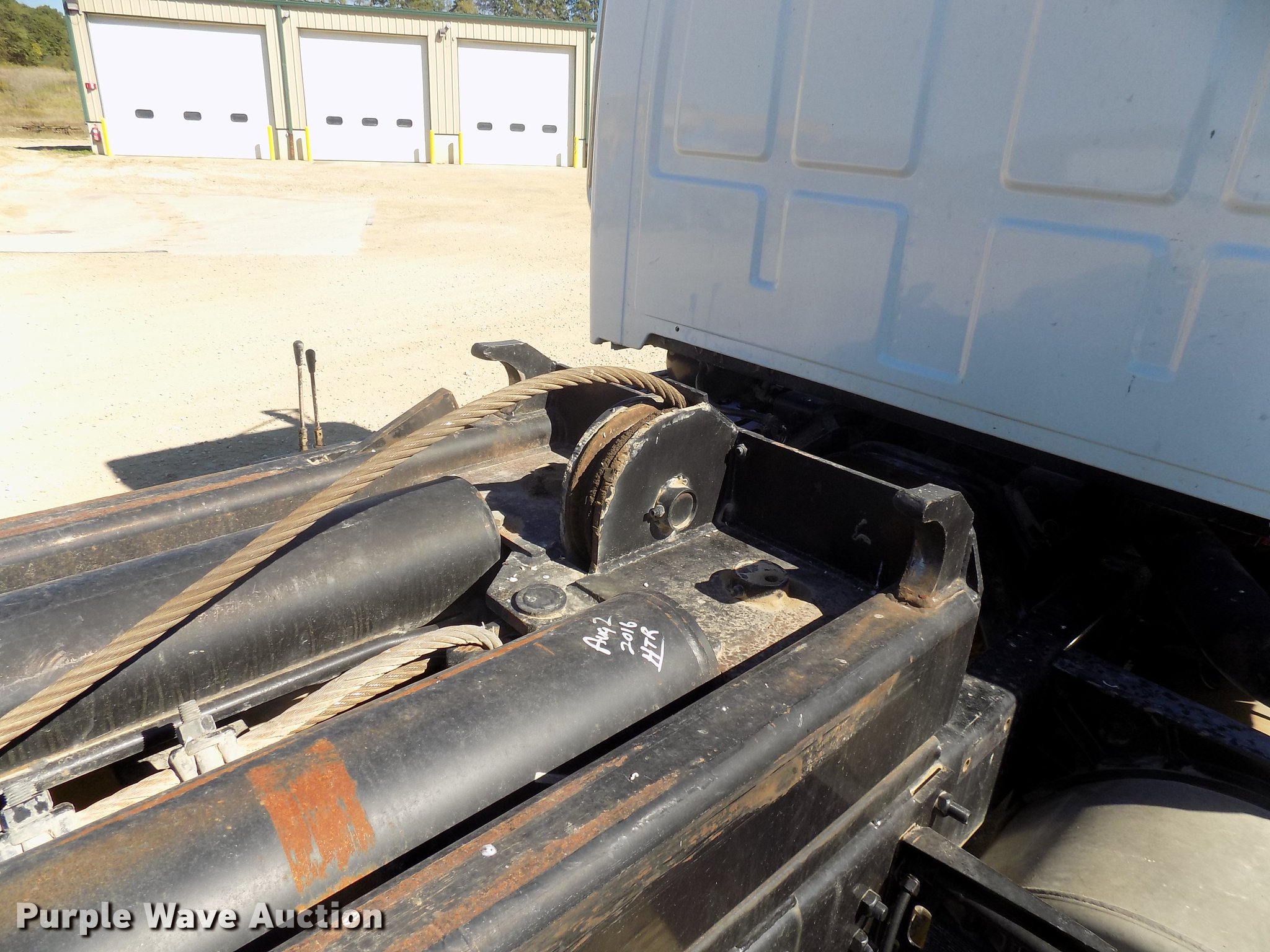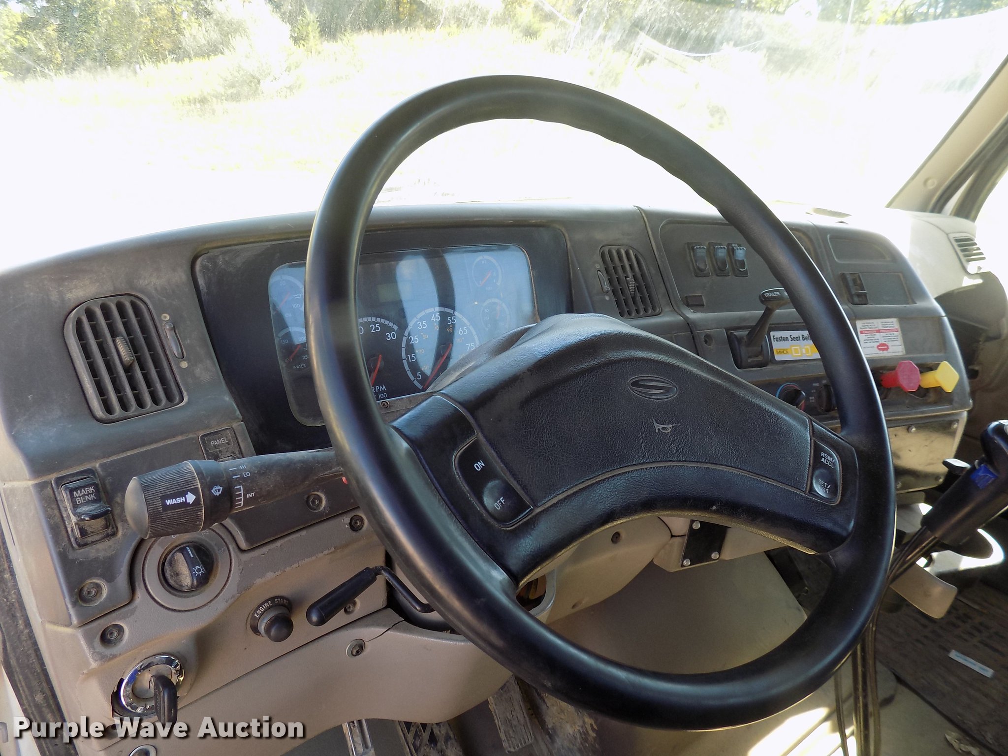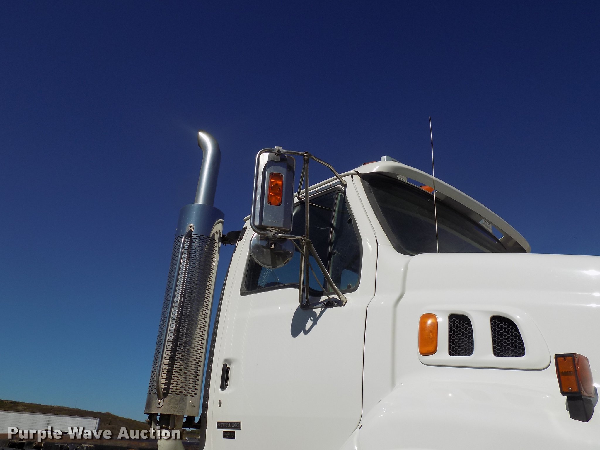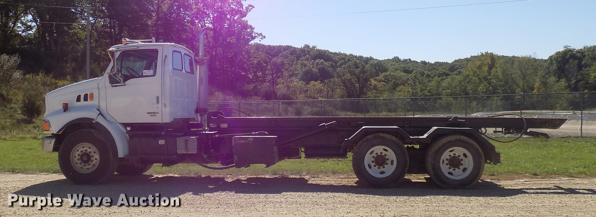 Purple Wave is selling a used Rollback or Tow Truck in Iowa. This item is a 2004 Sterling LT9513 roll off truck with the following: 140,884 miles on odometer, Mercedes-Benz OM460LAC1D781 six cylinder turbo diesel engine, 410 HP, Serial 2MBXH12.8D1A, Eaton Fuller 10 speed manual transmission, Tandem axle, Inter-axle differential lock, AC and heat, Non-operational AC, Tilt, Cruise, Power windows and locks, Heated mirrors, Suspension seat, Exterior visor, Backup alarm, Block heater, Front tow hooks, Single exhaust stack, PTO, Gilbreath roll off bed, Model U5-0R-1T4, In-cab and ground bed controls, 60,000 lbs rated capacity, Winch, Serial H20126, Dual fuel tanks, Full plastic fenders, Spring over walking beam suspension, Air brakes, 425/65R22.5 front tires, 11R22.5 rear tires, GVWR 64,000 lbs, RAWR 22,000 lbs, Power windows works intermittently