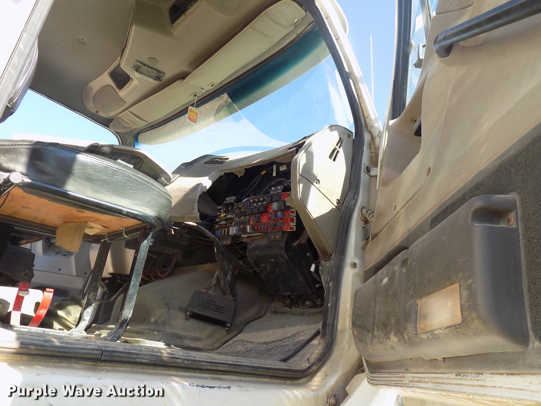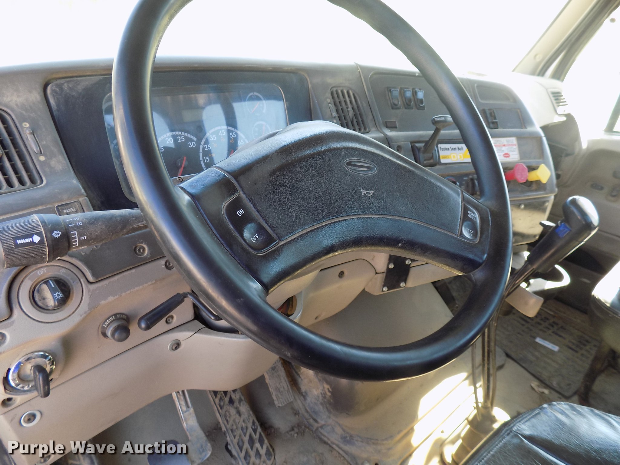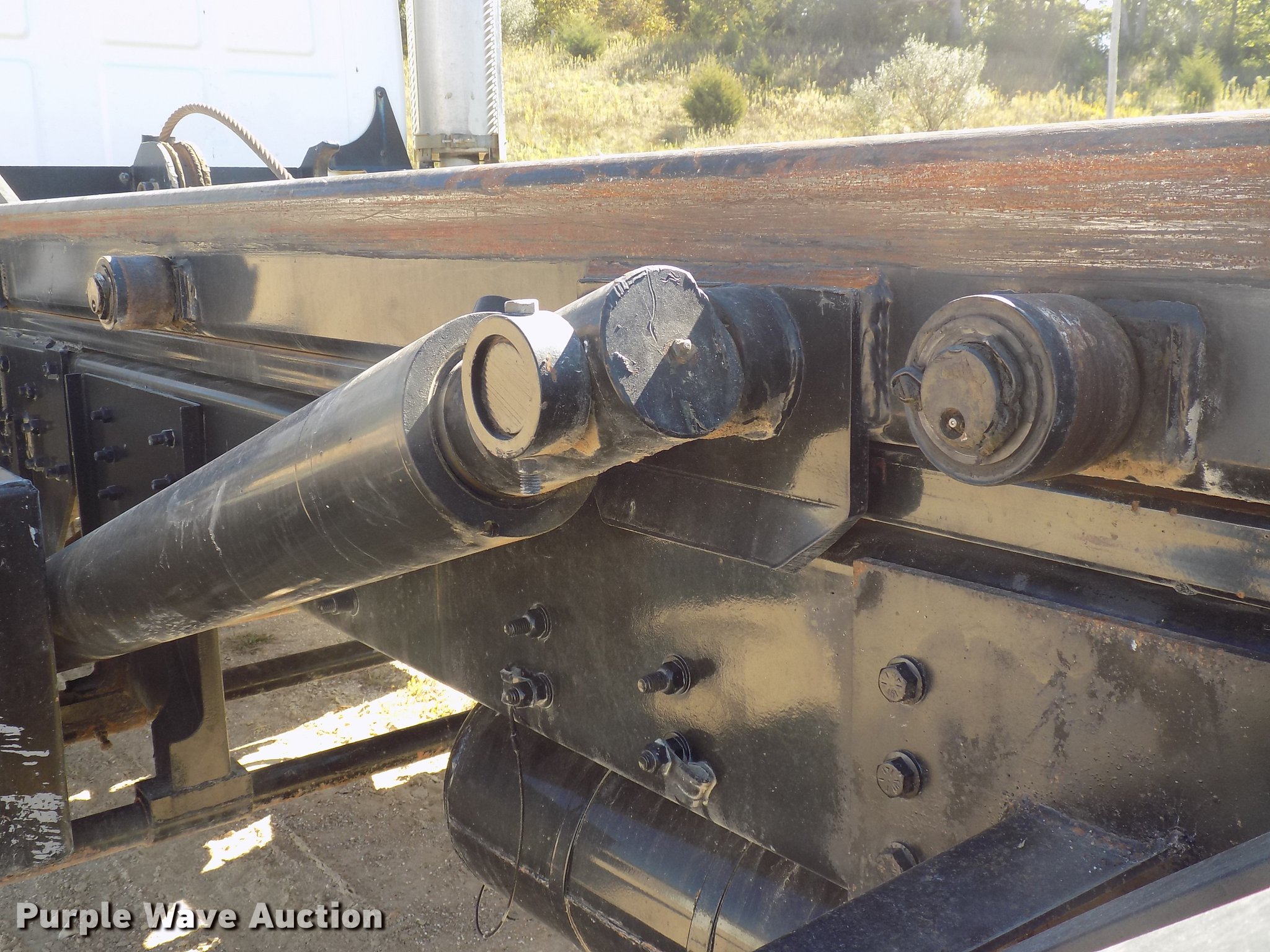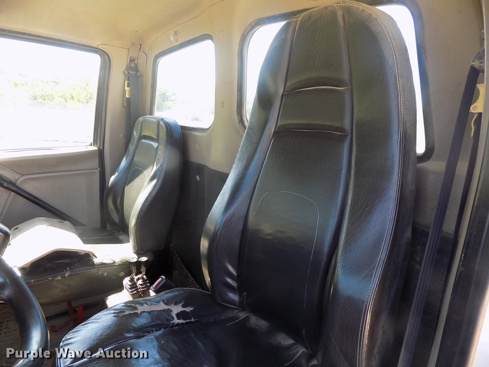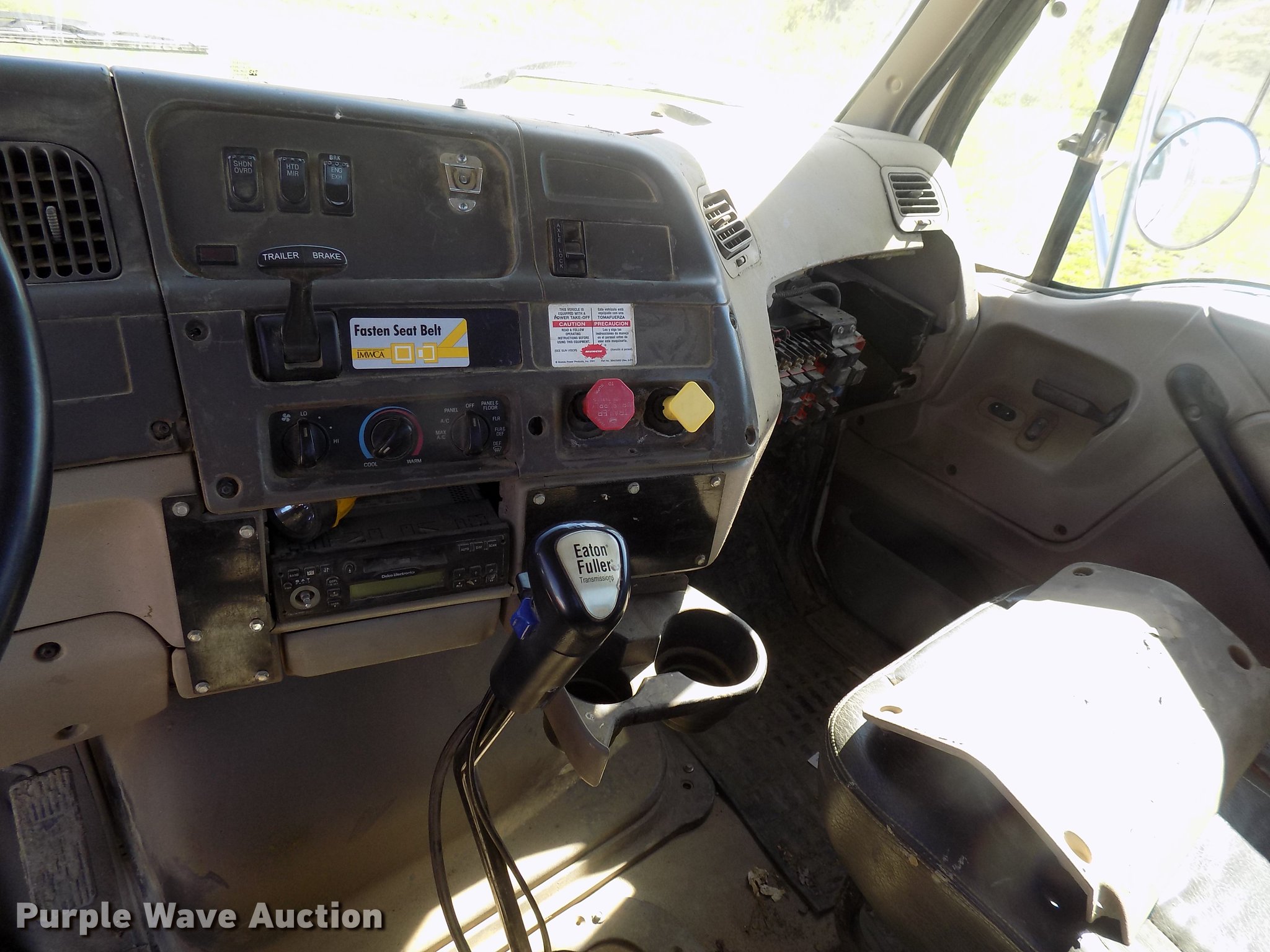 Purple Wave is selling a used Rollback or Tow Truck in Iowa. This item is a 2004 Sterling LT9513 roll off truck with the following: 140,884 miles on odometer, Mercedes-Benz OM460LAC1D781 six cylinder turbo diesel engine, 410 HP, Serial 2MBXH12.8D1A, Eaton Fuller 10 speed manual transmission, Tandem axle, Inter-axle differential lock, AC and heat, Non-operational AC, Tilt, Cruise, Power windows and locks, Heated mirrors, Suspension seat, Exterior visor, Backup alarm, Block heater, Front tow hooks, Single exhaust stack, PTO, Gilbreath roll off bed, Model U5-0R-1T4, In-cab and ground bed controls, 60,000 lbs rated capacity, Winch, Serial H20126, Dual fuel tanks, Full plastic fenders, Spring over walking beam suspension, Air brakes, 425/65R22.5 front tires, 11R22.5 rear tires, GVWR 64,000 lbs, RAWR 22,000 lbs, Power windows works intermittently
