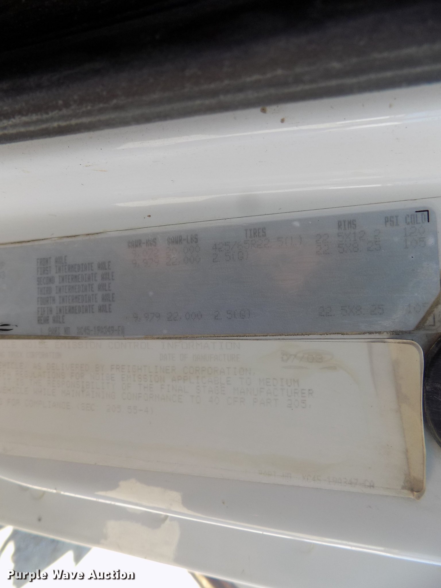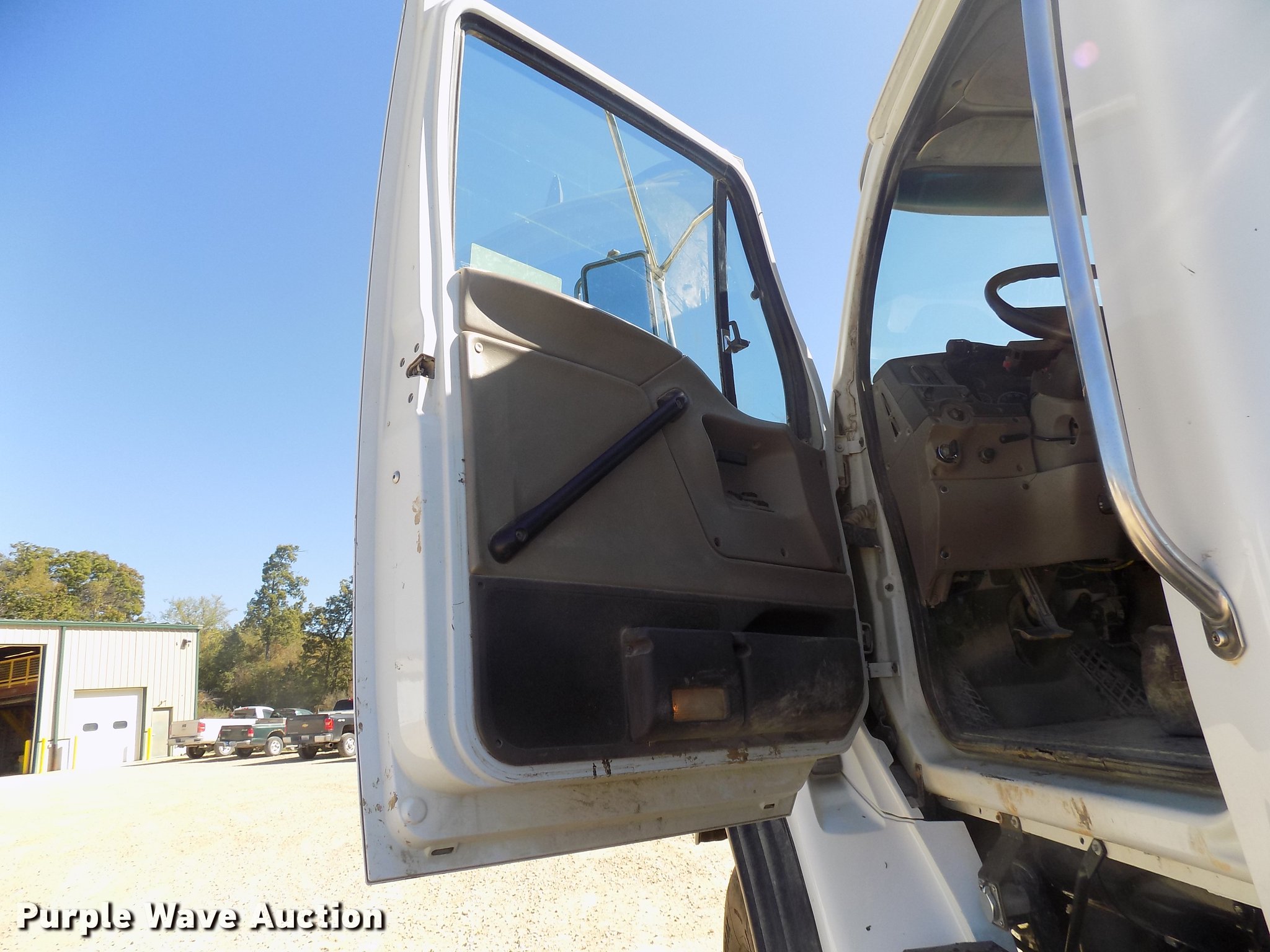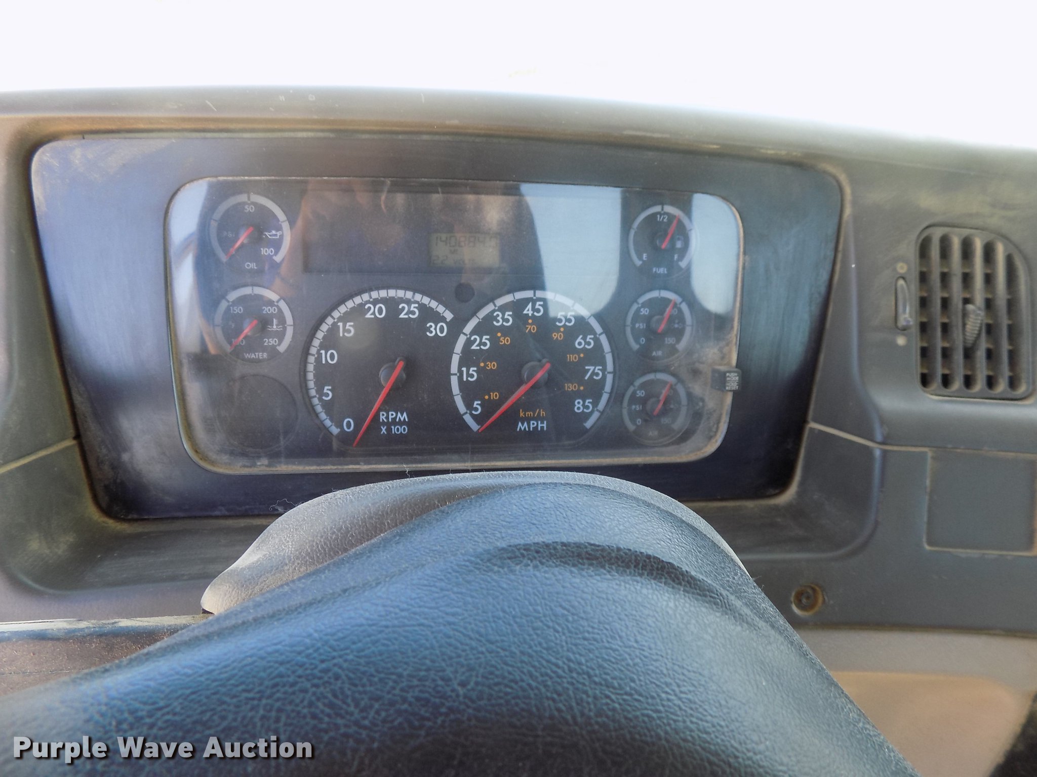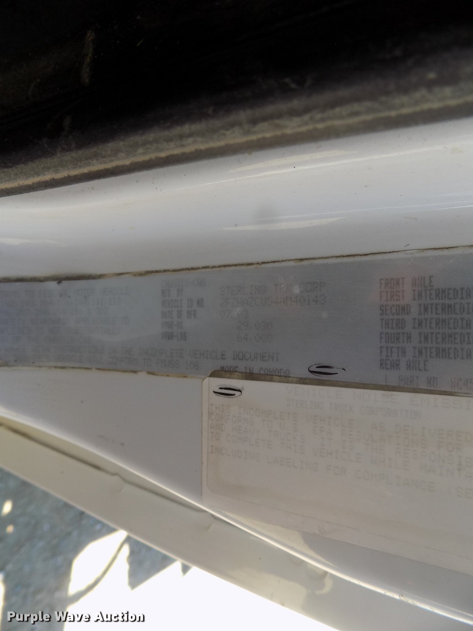 Purple Wave is selling a used Rollback or Tow Truck in Iowa. This item is a 2004 Sterling LT9513 roll off truck with the following: 140,884 miles on odometer, Mercedes-Benz OM460LAC1D781 six cylinder turbo diesel engine, 410 HP, Serial 2MBXH12.8D1A, Eaton Fuller 10 speed manual transmission, Tandem axle, Inter-axle differential lock, AC and heat, Non-operational AC, Tilt, Cruise, Power windows and locks, Heated mirrors, Suspension seat, Exterior visor, Backup alarm, Block heater, Front tow hooks, Single exhaust stack, PTO, Gilbreath roll off bed, Model U5-0R-1T4, In-cab and ground bed controls, 60,000 lbs rated capacity, Winch, Serial H20126, Dual fuel tanks, Full plastic fenders, Spring over walking beam suspension, Air brakes, 425/65R22.5 front tires, 11R22.5 rear tires, GVWR 64,000 lbs, RAWR 22,000 lbs, Power windows works intermittently