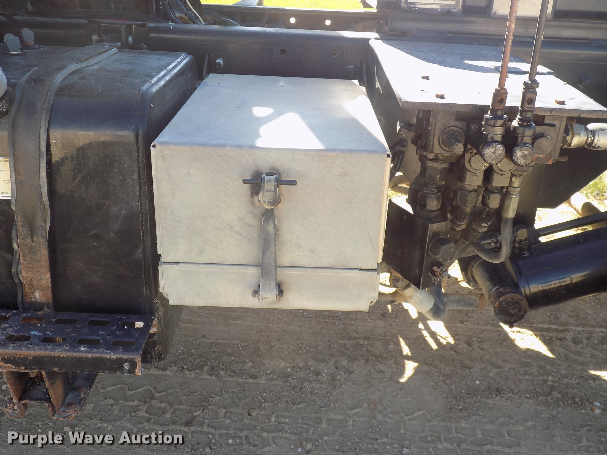 2004 Sterling LT9513 roll off truck. 140,884 miles on odometer, Mercedes-Benz OM460LAC1D781 six cylinder turbo diesel engine 410 HP, Serial 2MBXH12.8D1A, Eaton Fuller 10 speed manual transmission, Tandem axle, Inter-axle differential lock, AC and heat Non-operational AC, Tilt, Cruise, Power windows and locks, Heated mirrors, Suspension seat, Exterior visor, Backup alarm, Block heater, Front tow hooks, Single exhaust stack, PTO, Gilbreath roll off bed Model U5-0R-1T4, In-cab and ground bed controls, 60,000 lbs rated capacity, Winch, Serial H20126, Dual fuel tanks, Full plastic fenders, Spring over walking beam suspension, Air brakes, 425/65R22.5 front tires, 11R22.5 rear tires, GVWR 64,000 lbs, RAWR 22,000 lbs, Power windows works intermittently. Iowa title. 2FZHAZCV54AM40143. Des Moines County Regional Solid Waste Commission. 13758 Washington Rd. West Burlington, IA 52655