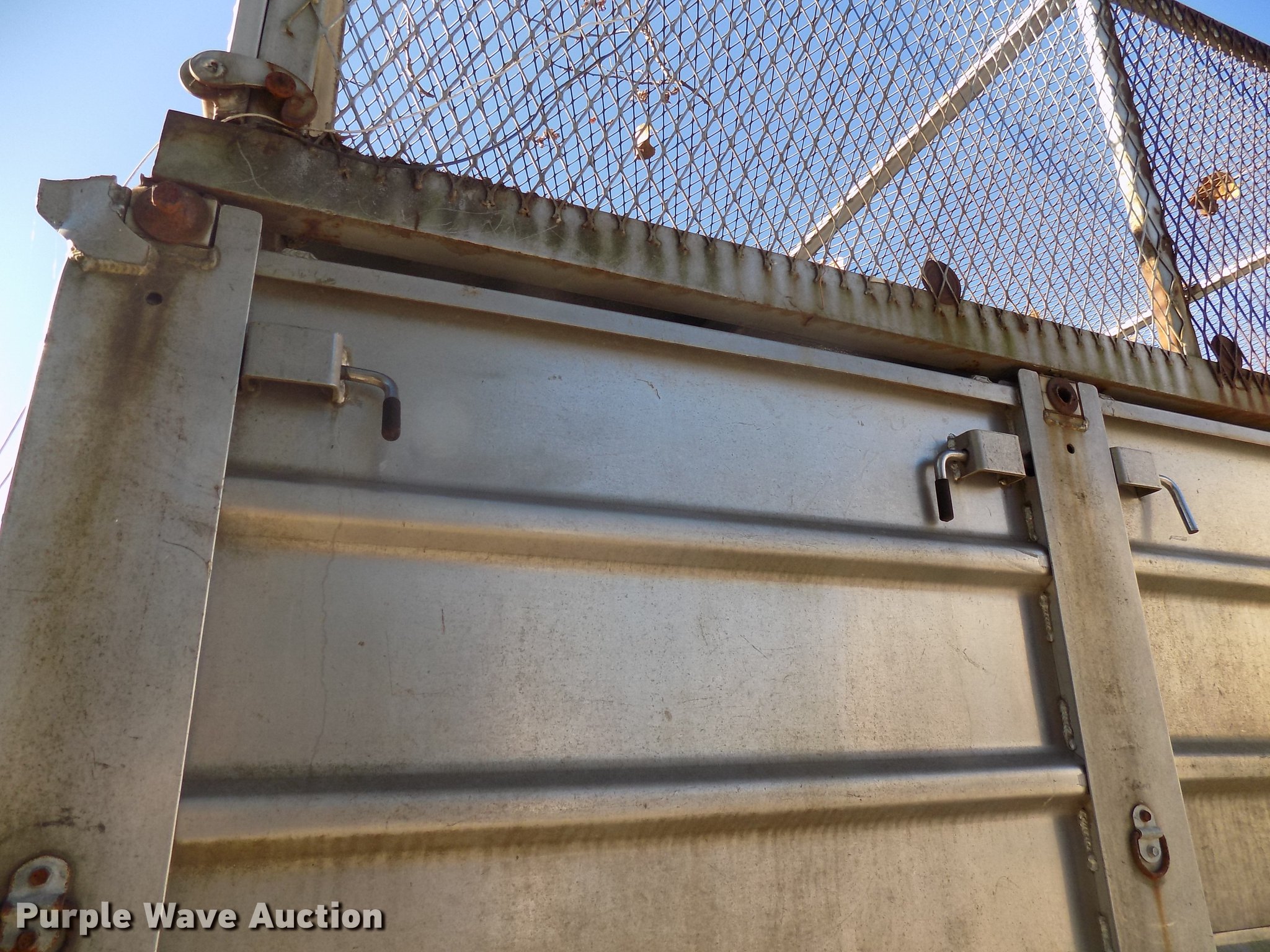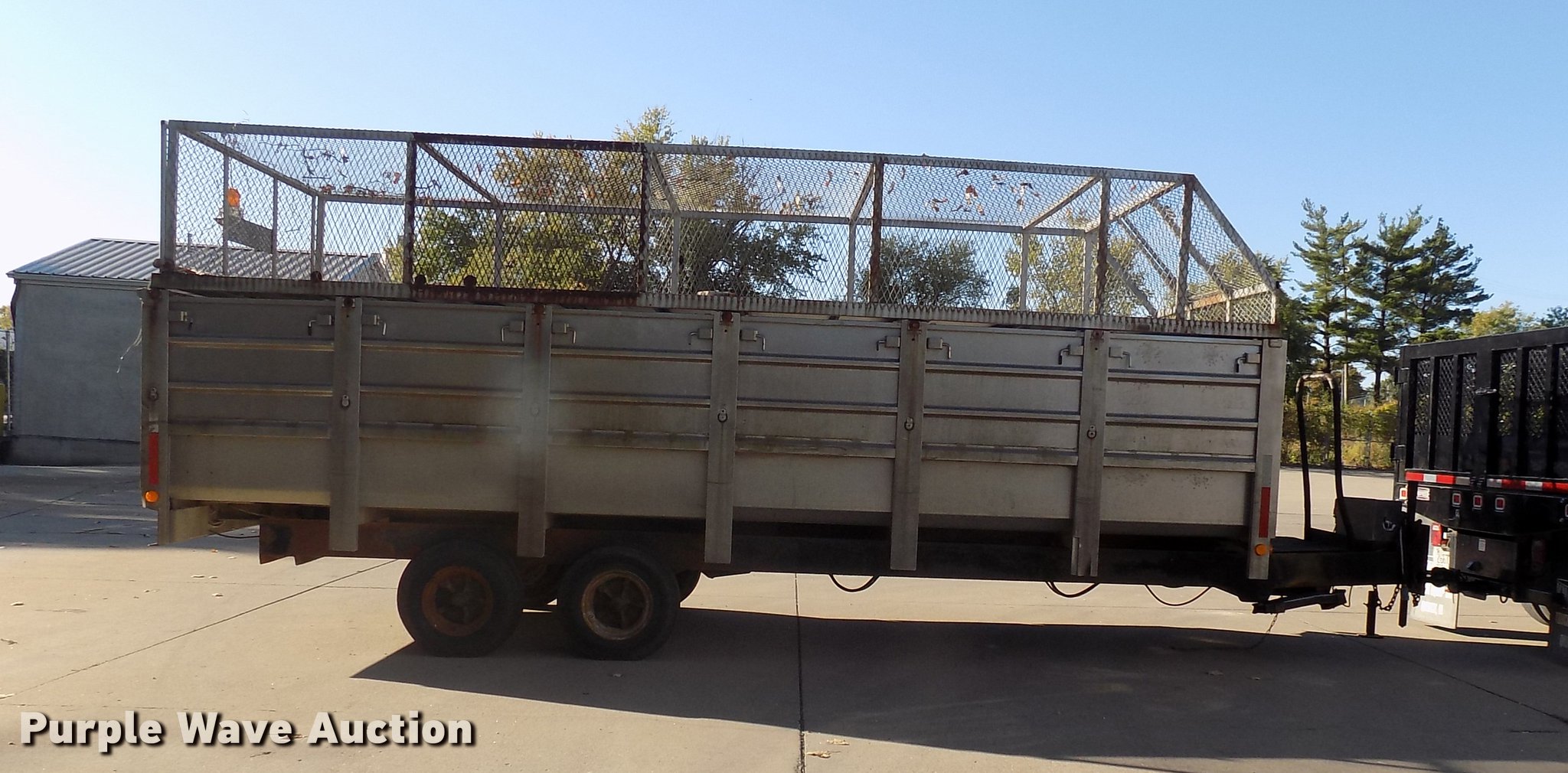 Purple Wave is selling a used Dump Trailer in Iowa. This item is a 1990 Kann recycling dump trailer with the following: 20'3"L x 8'W overall, (4) compartments, 77" x 47"H, (2) 39" x 47"H, 80" x 47"H, 33"H top section, Manual end gate, Three section locking separators, Front platform, Beacon light, Electric over hydraulic dump, Recycling box model D20303, Aluminum construction, Pintle hitch, Single leg landing gear, Spring suspension, Electric brakes, Tandem axle, 8-14.5LT tires