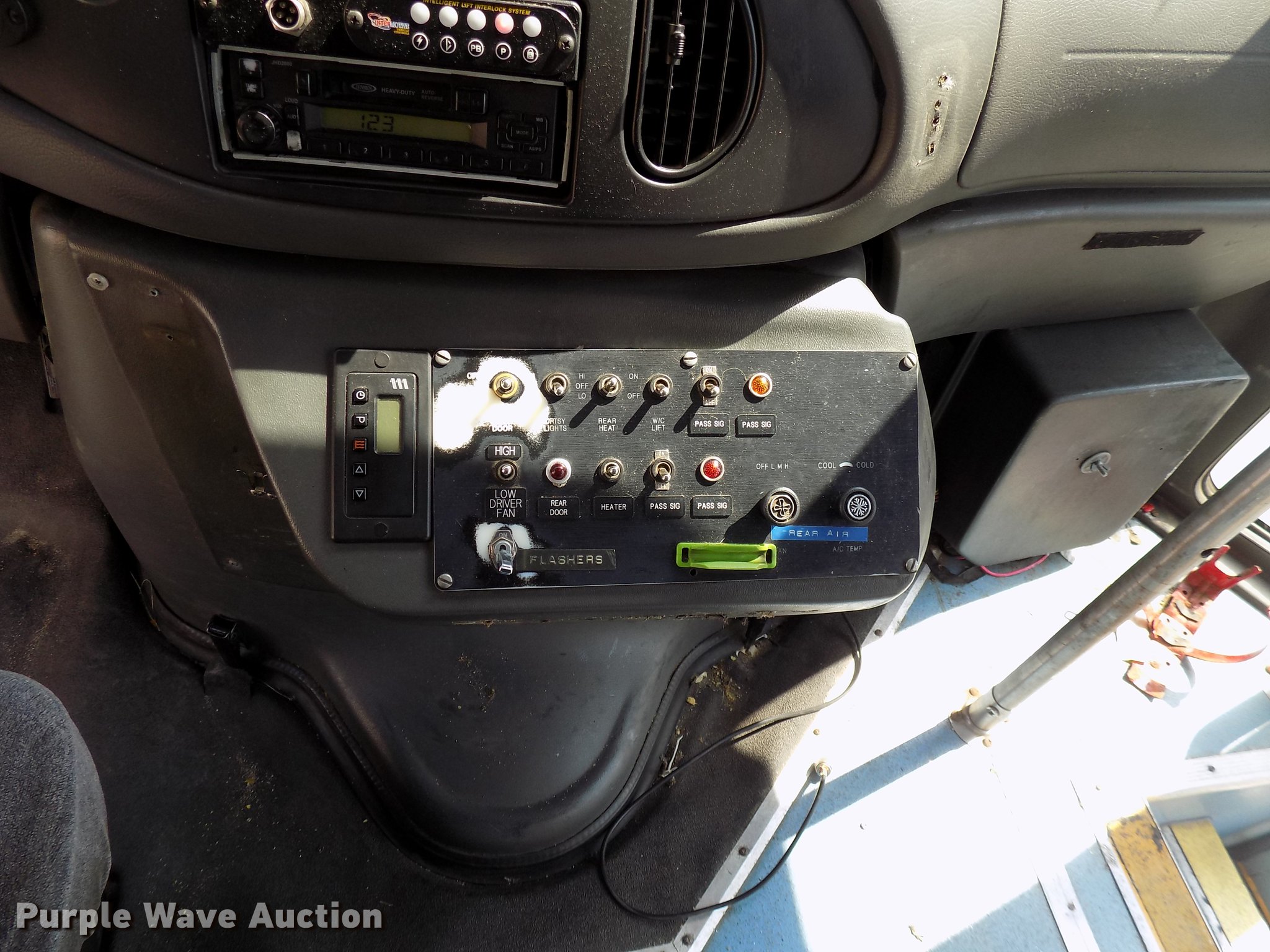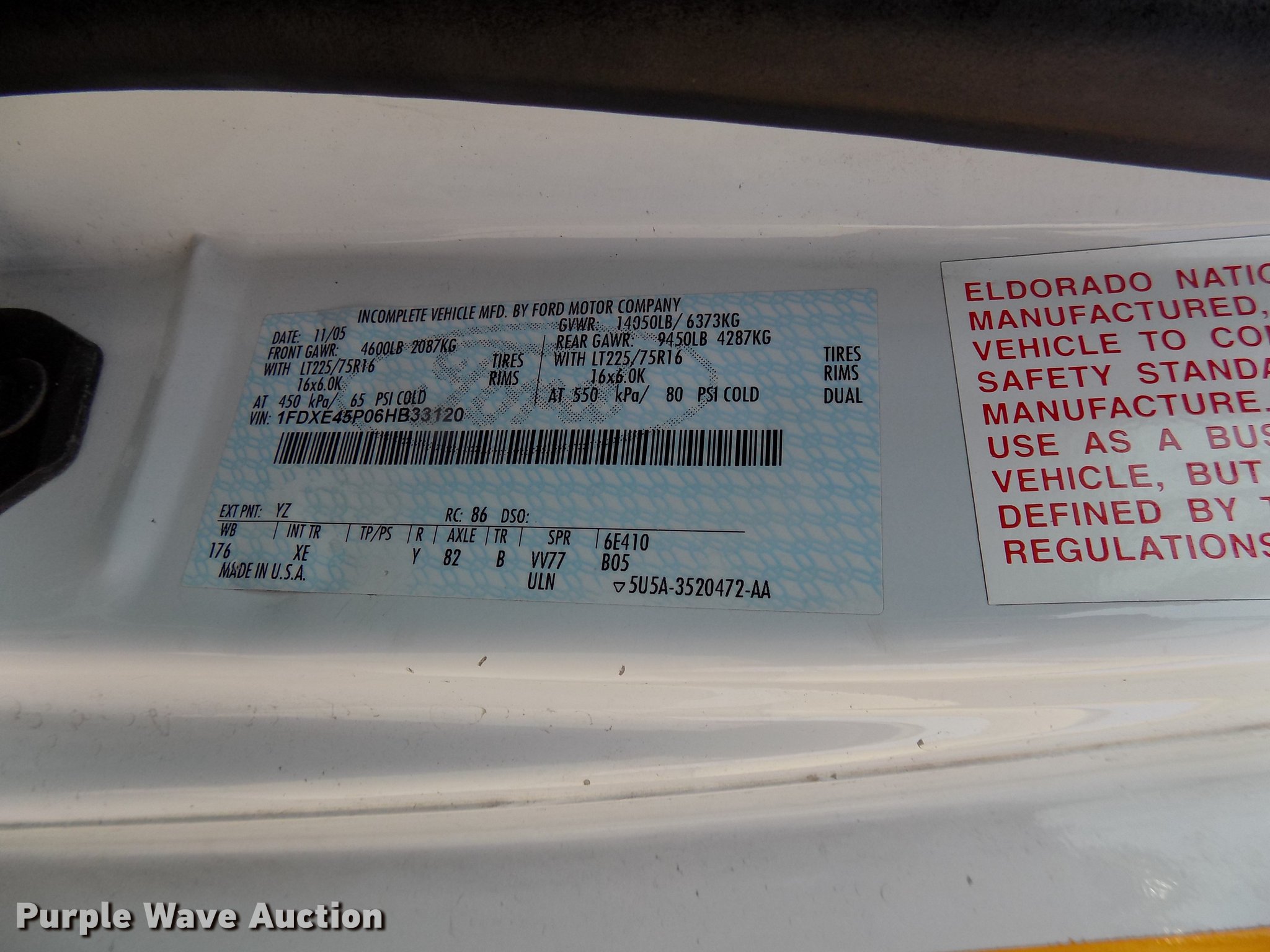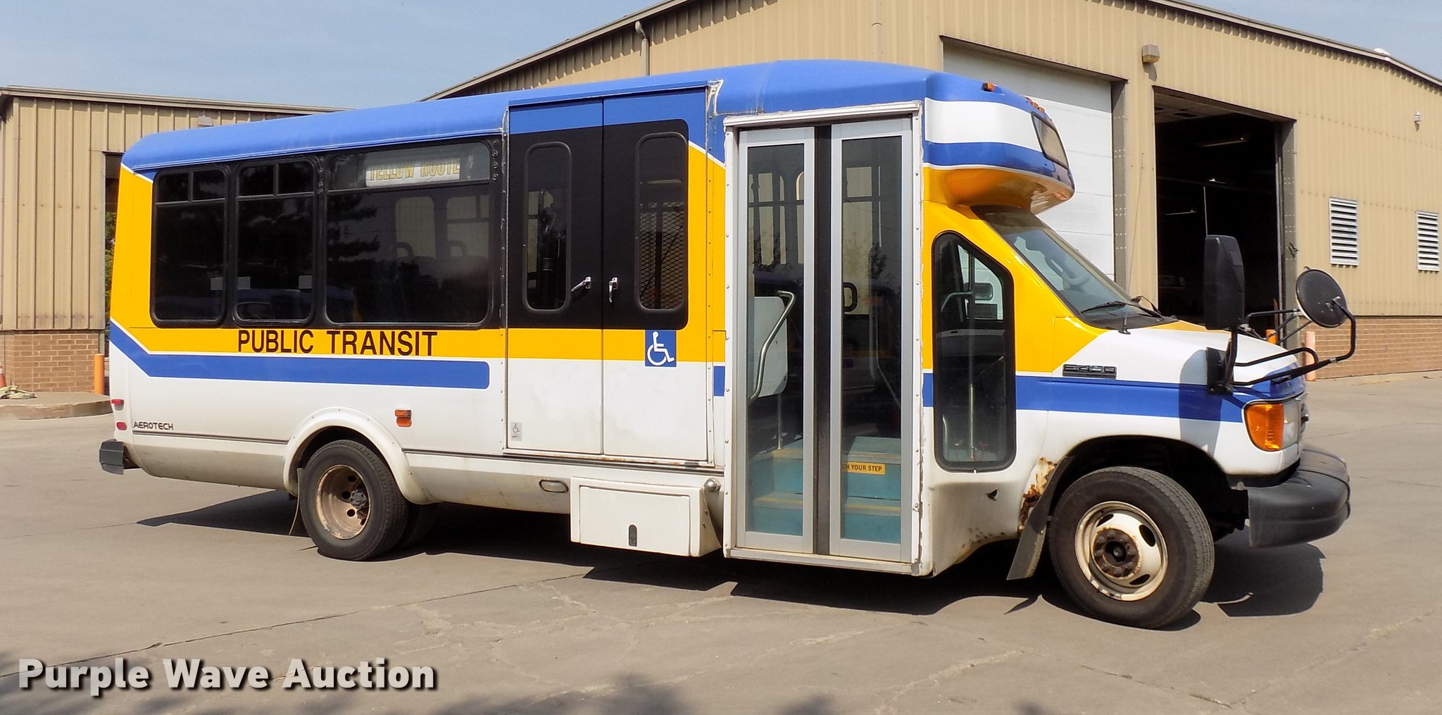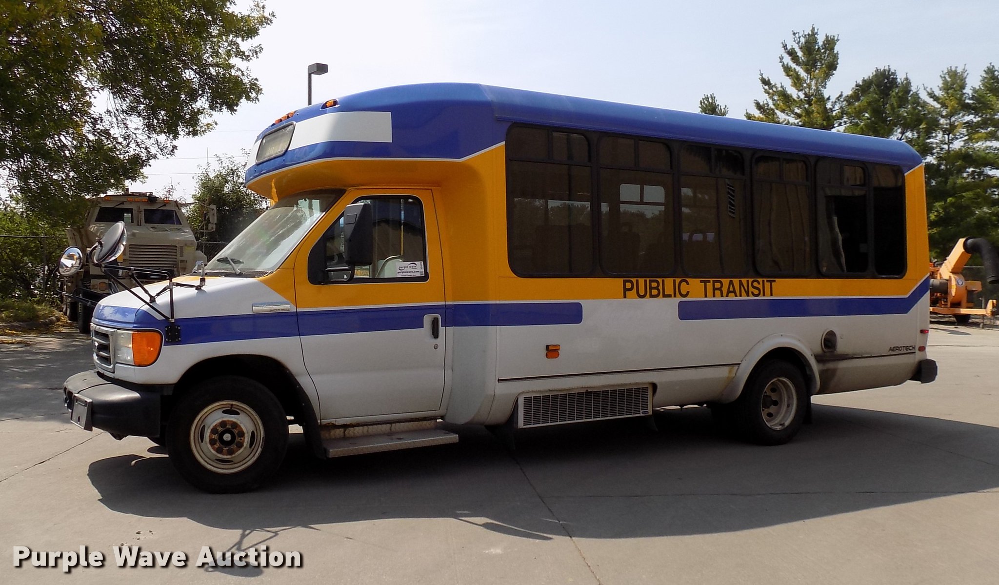 Purple Wave is selling a used Bus in Iowa. This item is a 2006 Ford E450 Super Duty shuttle bus with the following: 233,278 miles on odometer, 6.0L V8 OHV 32V turbo diesel engine, AC and heat, Cruise, Suspension seat, Electric passenger sliding door, 16 passenger capacity, Braun NL919F1B wheel chair lift, Serial 04-1535, Rear emergency exit, Carrier passenger AC, Hydraulic brakes, 225/75R16 tires, GVWR 14,050 lbs